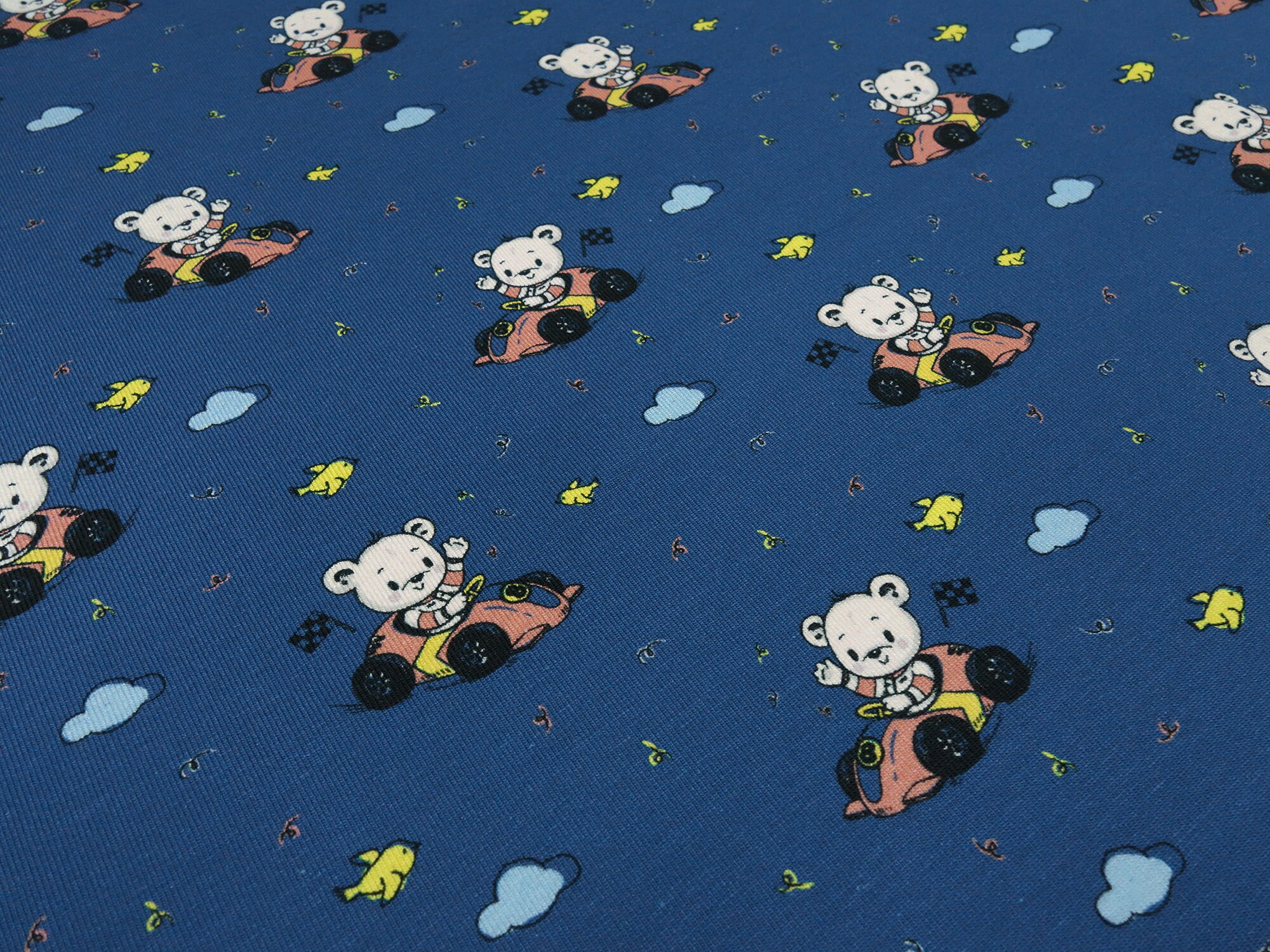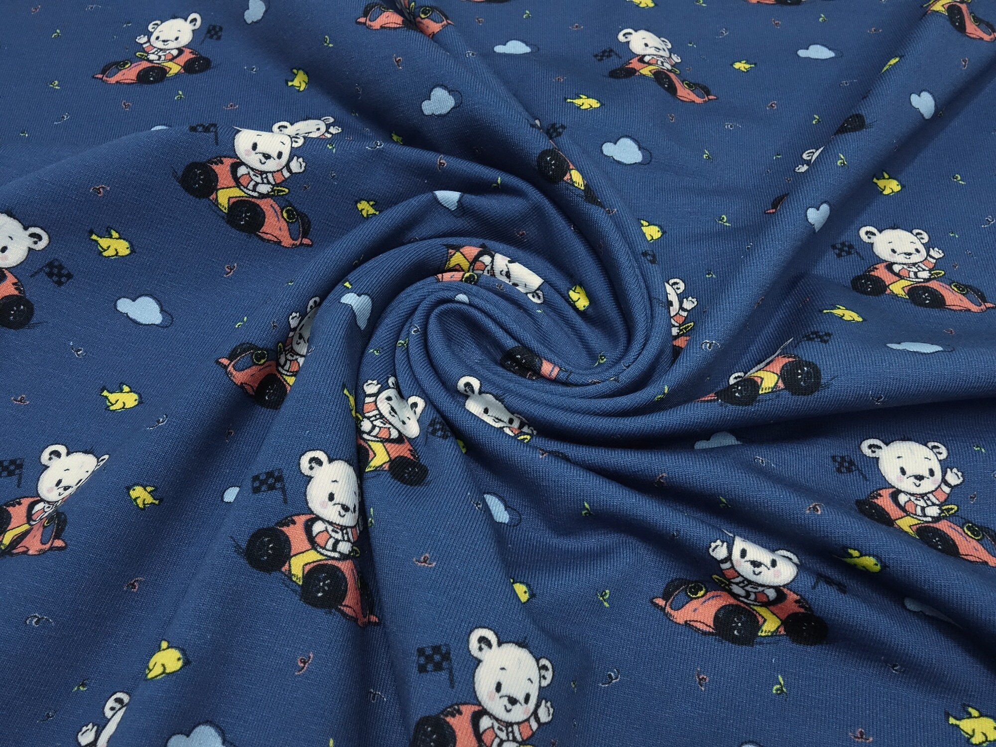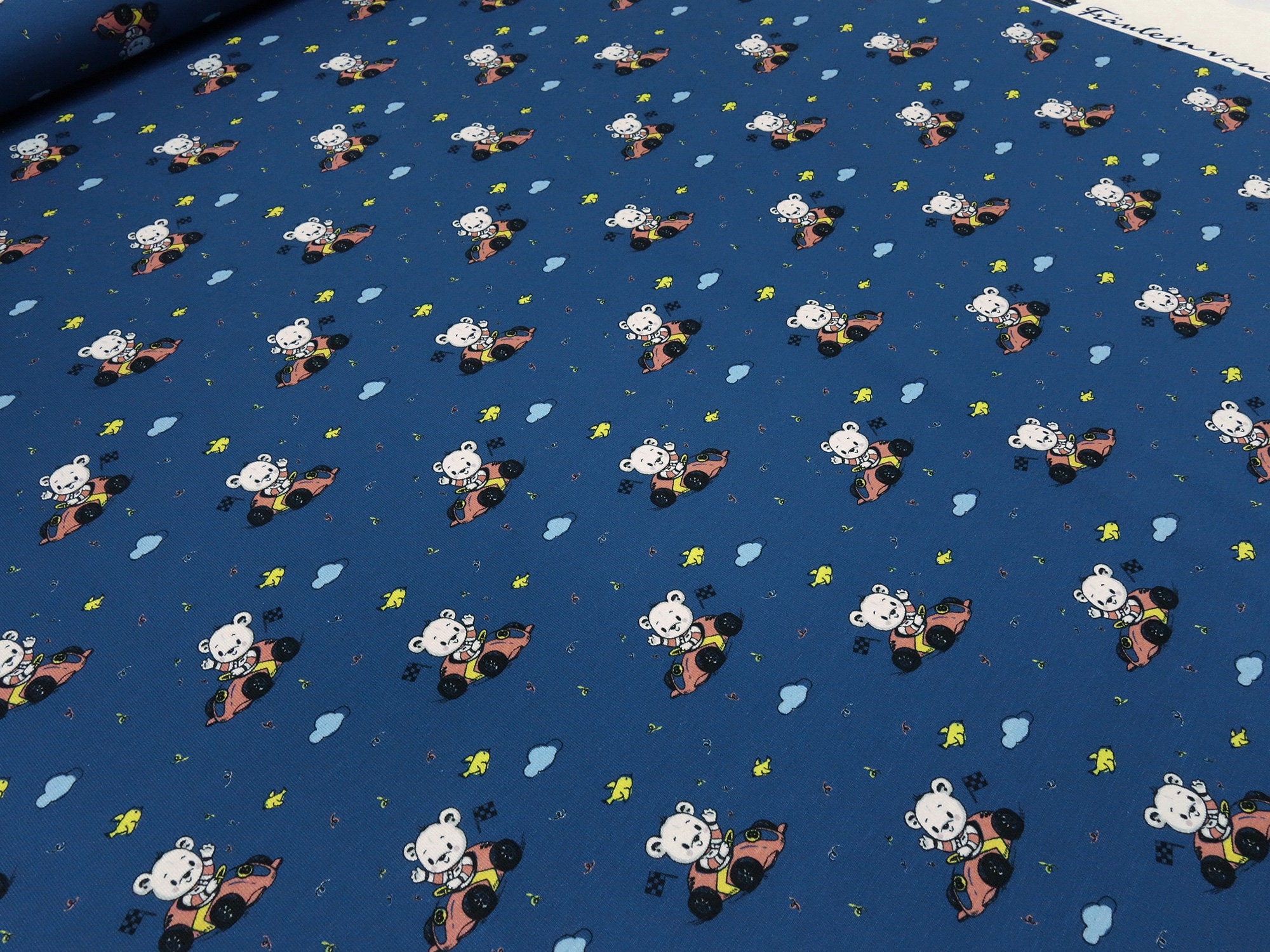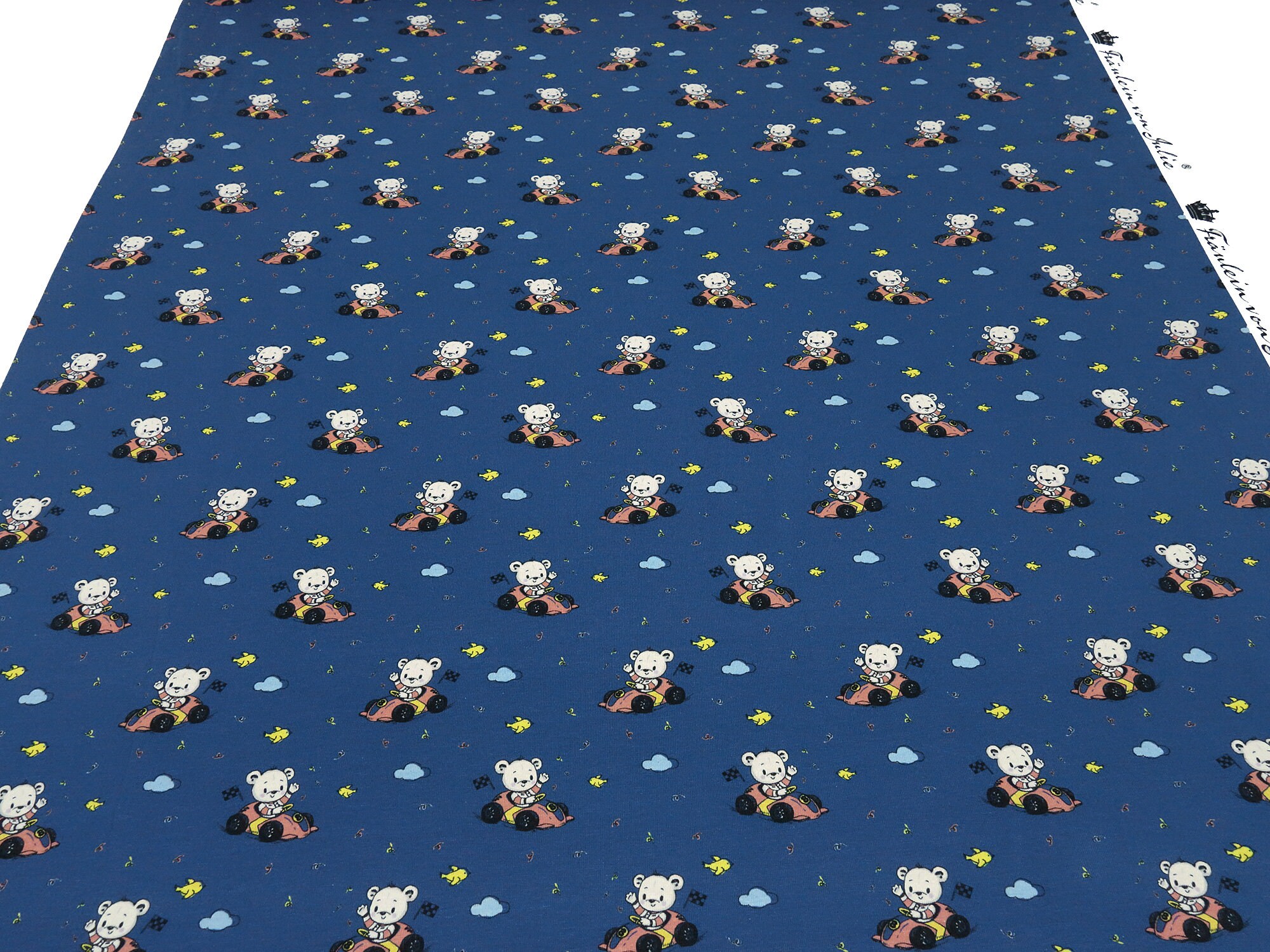 Stoff Baumwoll Jersey mit süßen Teddy Bär Auto Design blau rot gelb bunt Kinderstoff Kleiderstoff Fräulein von Julie