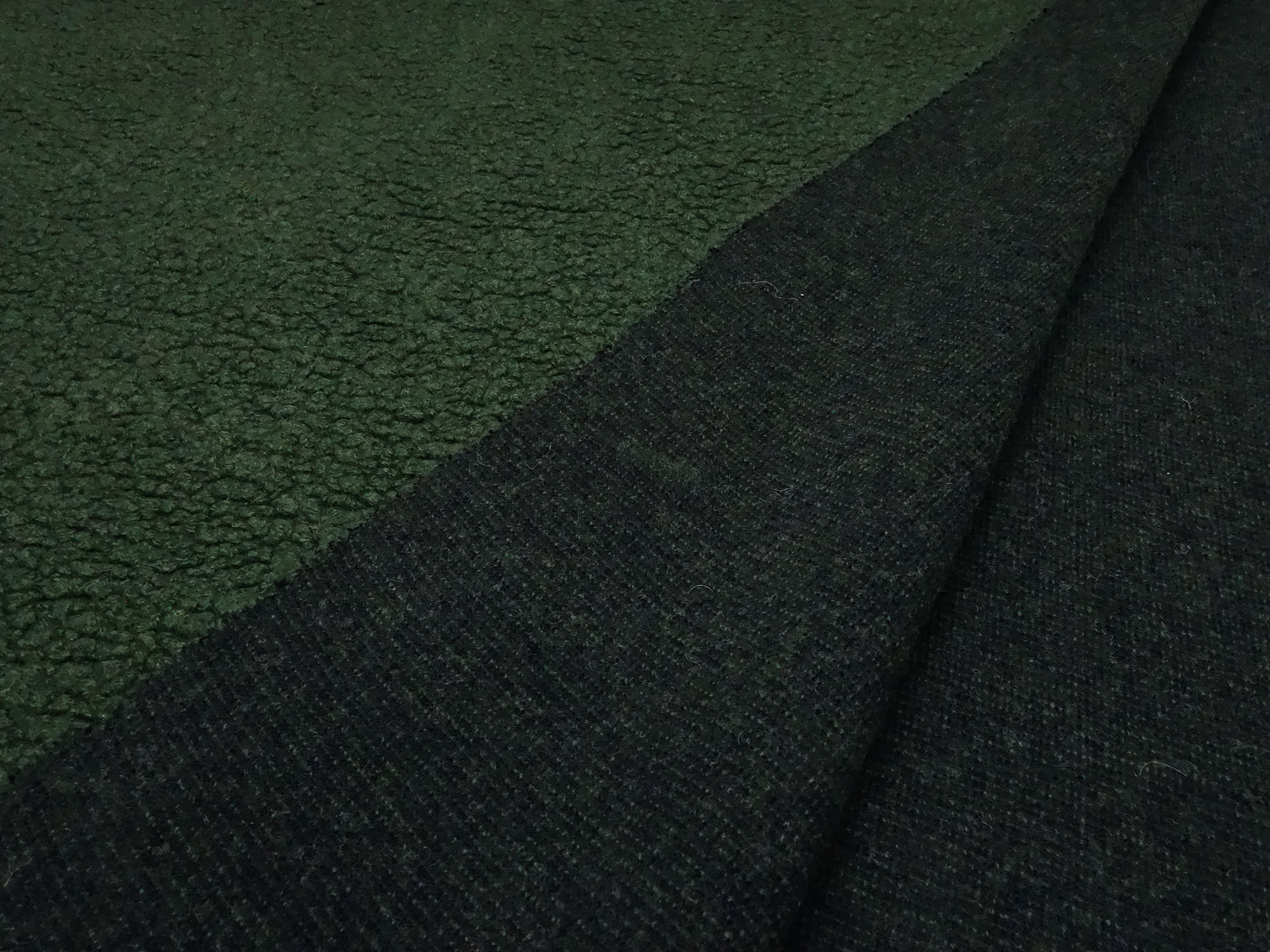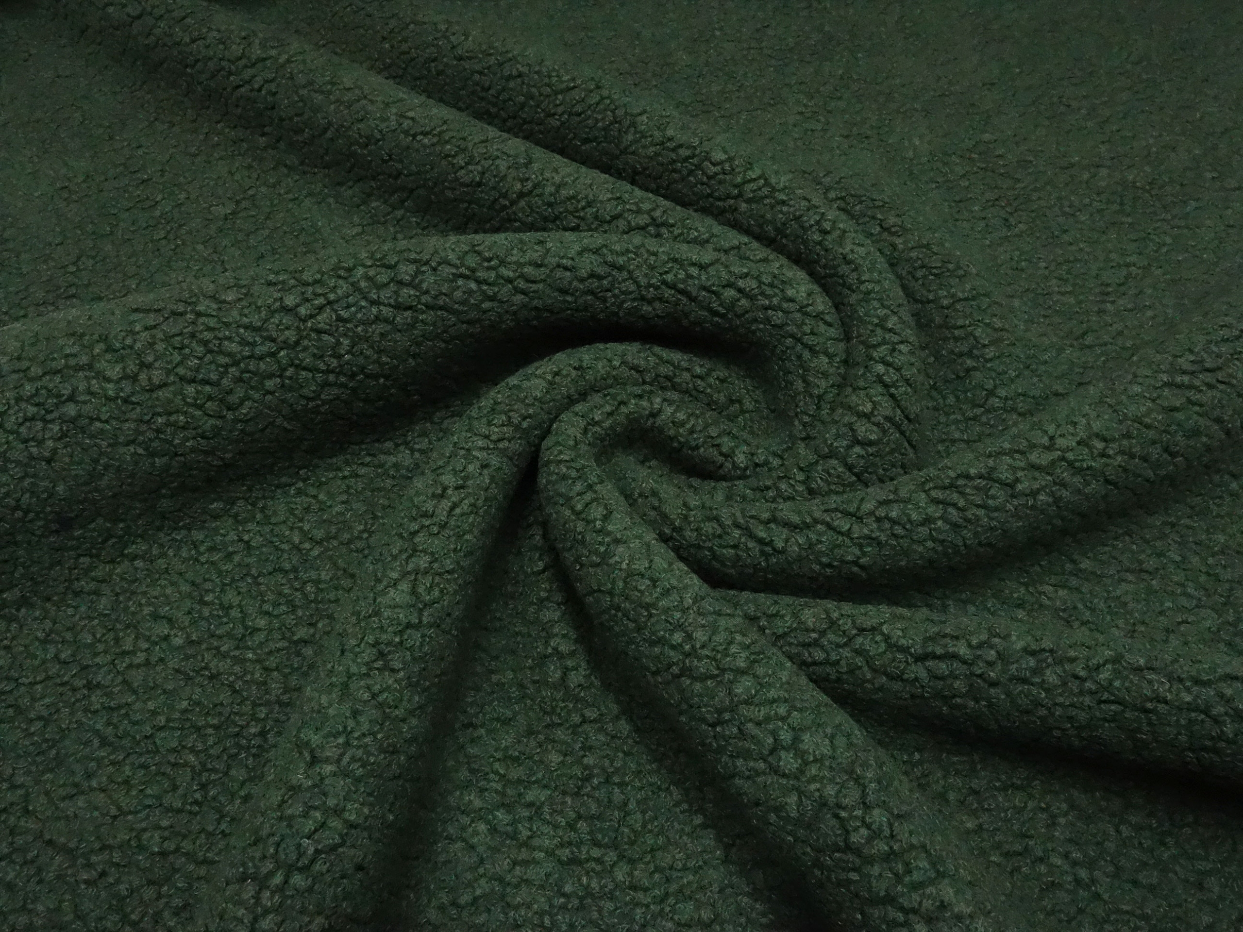 Stoff Ital. Musterwalk Kochwolle gekochte Wolle mit Teddy Optik Relief grün Manteltstoff Kleiderstoff