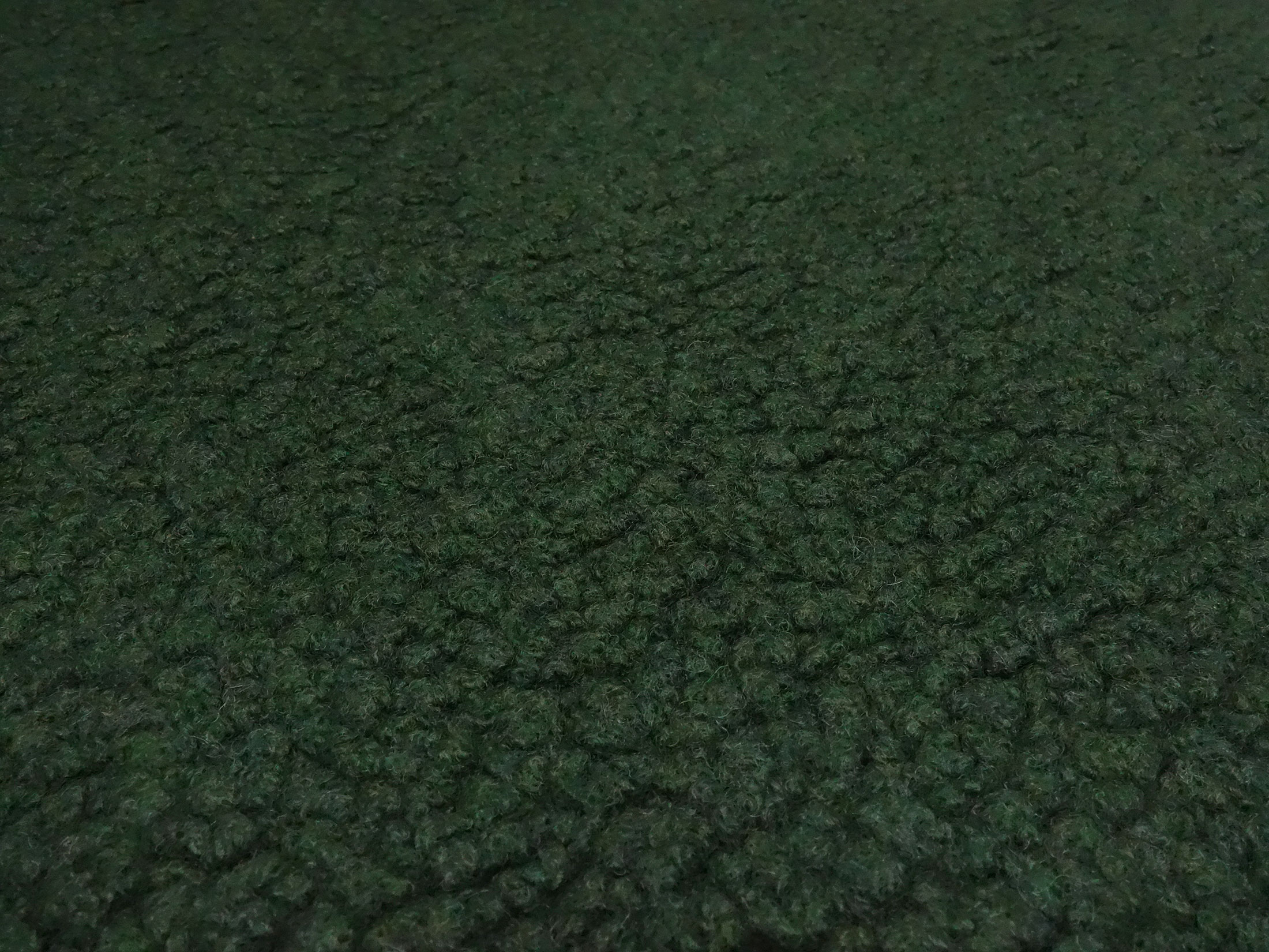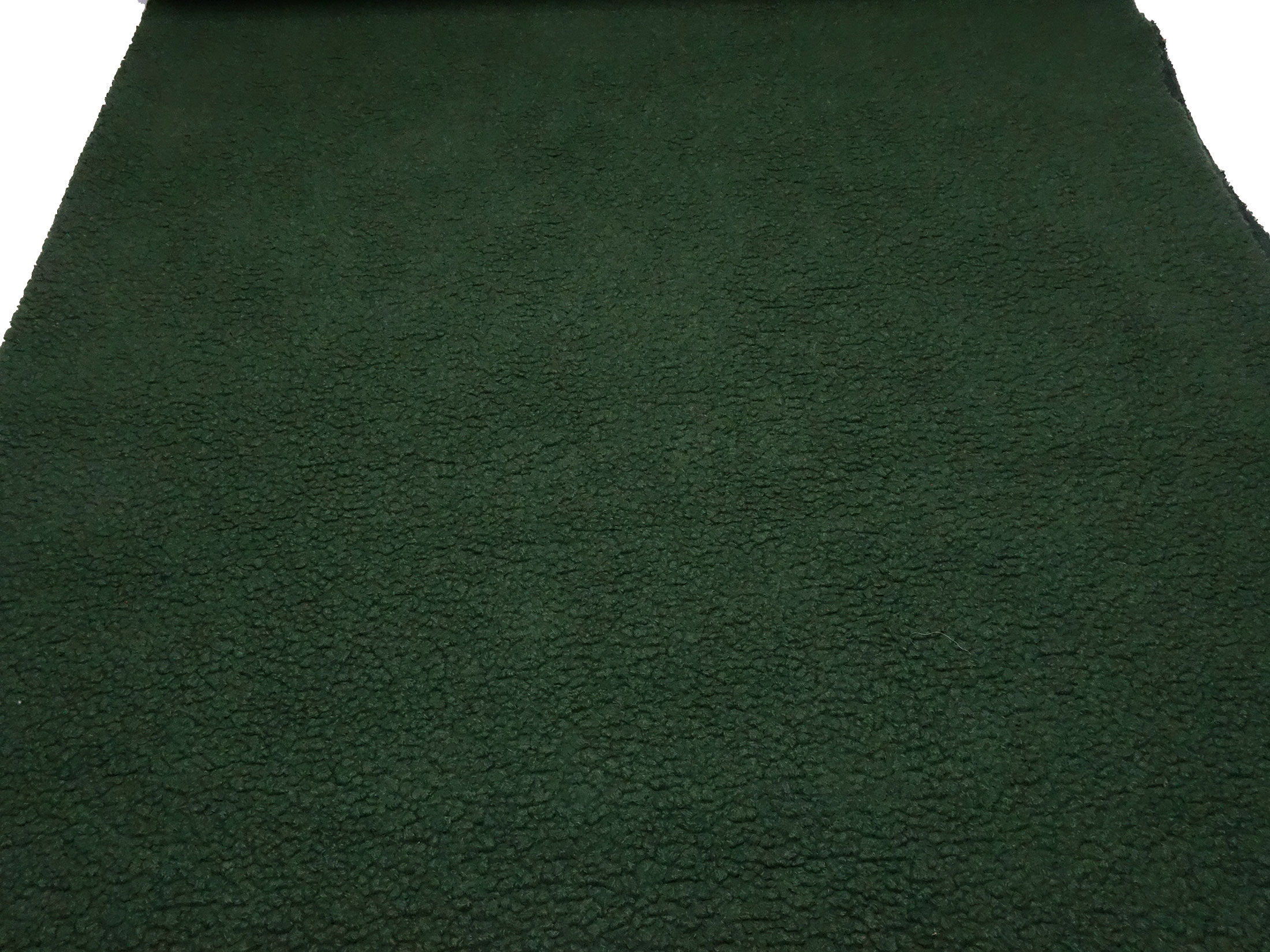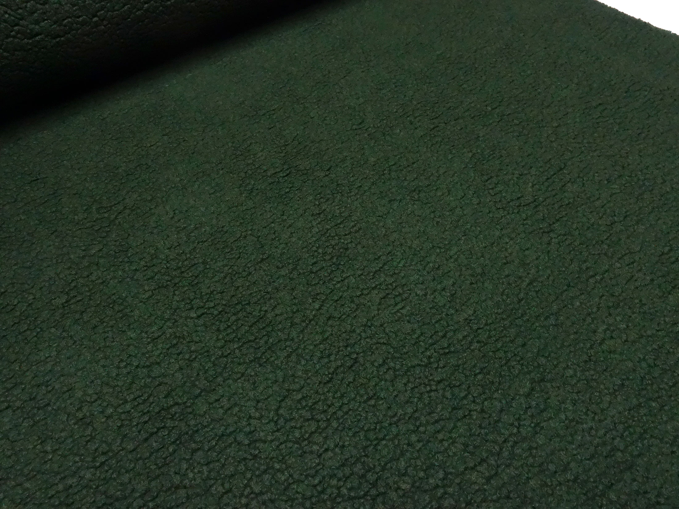 Teddy-Optik Relief-Motiv. Die Grundfarbe des Stoffes ist grün. Die Ware