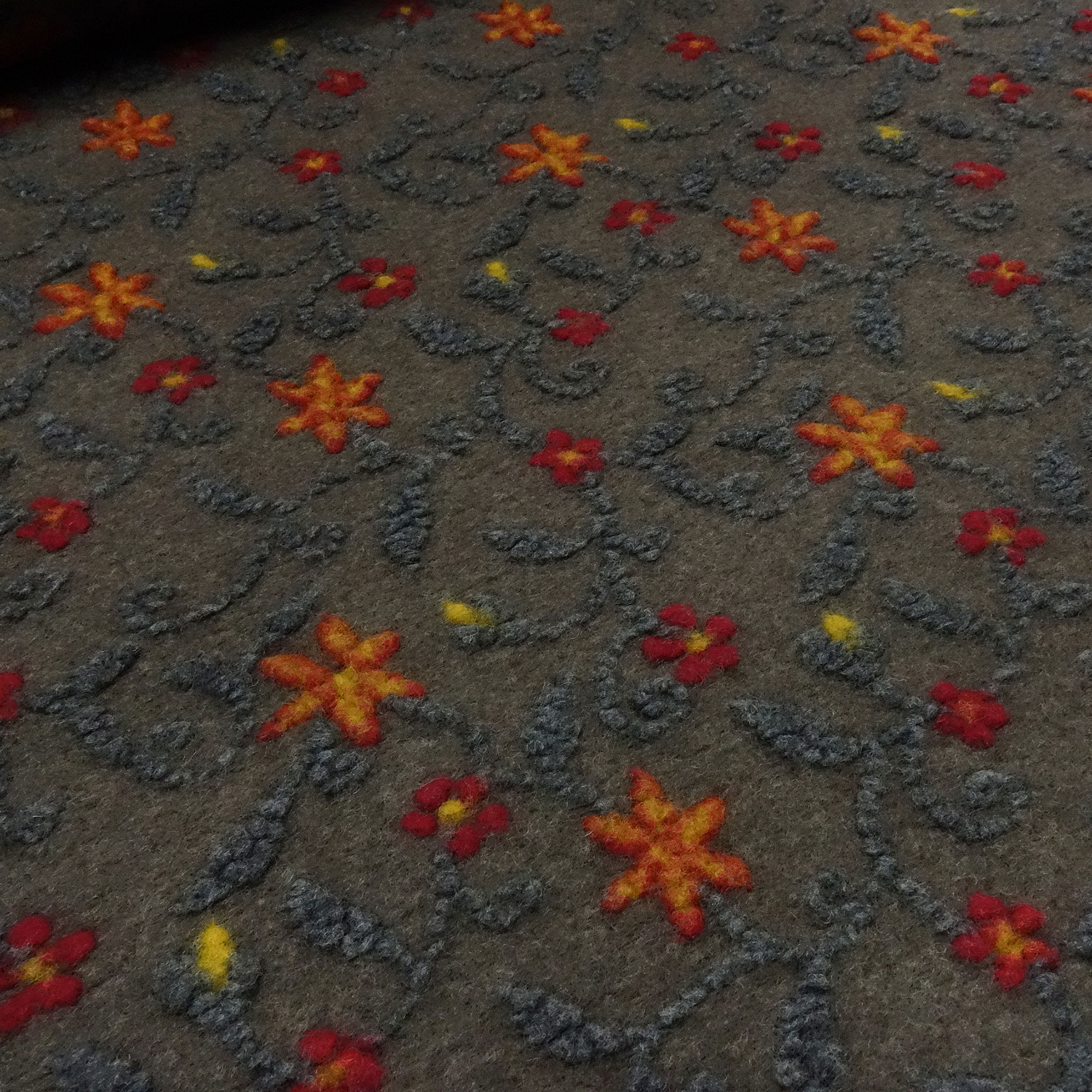 Das Relief-Muster ein Blumen-Ranken-Motiv ist in den Farben rot, grau