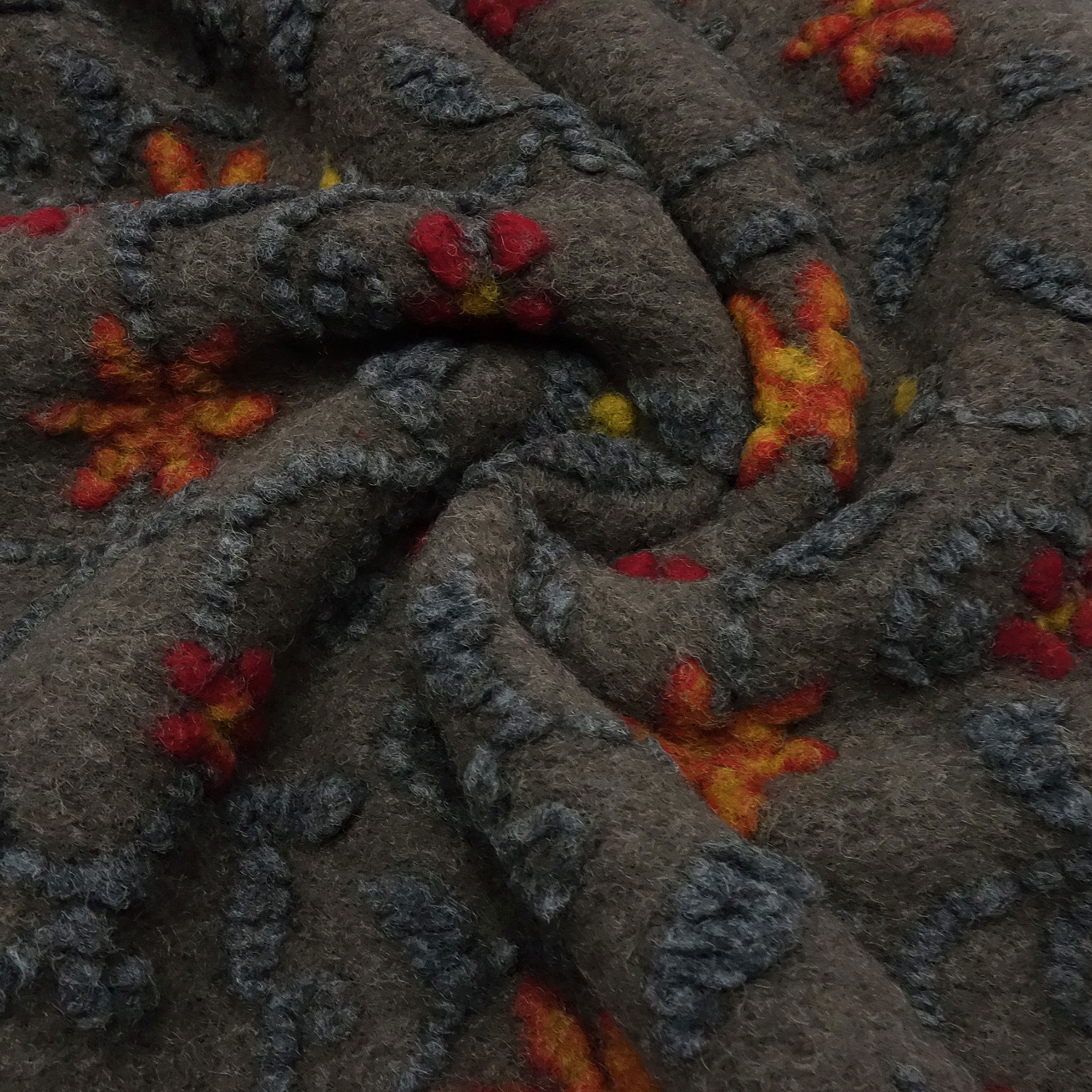 Relief-Motiv. Die Grundfarbe des Stoffes ist ein braun melanger Farbton.