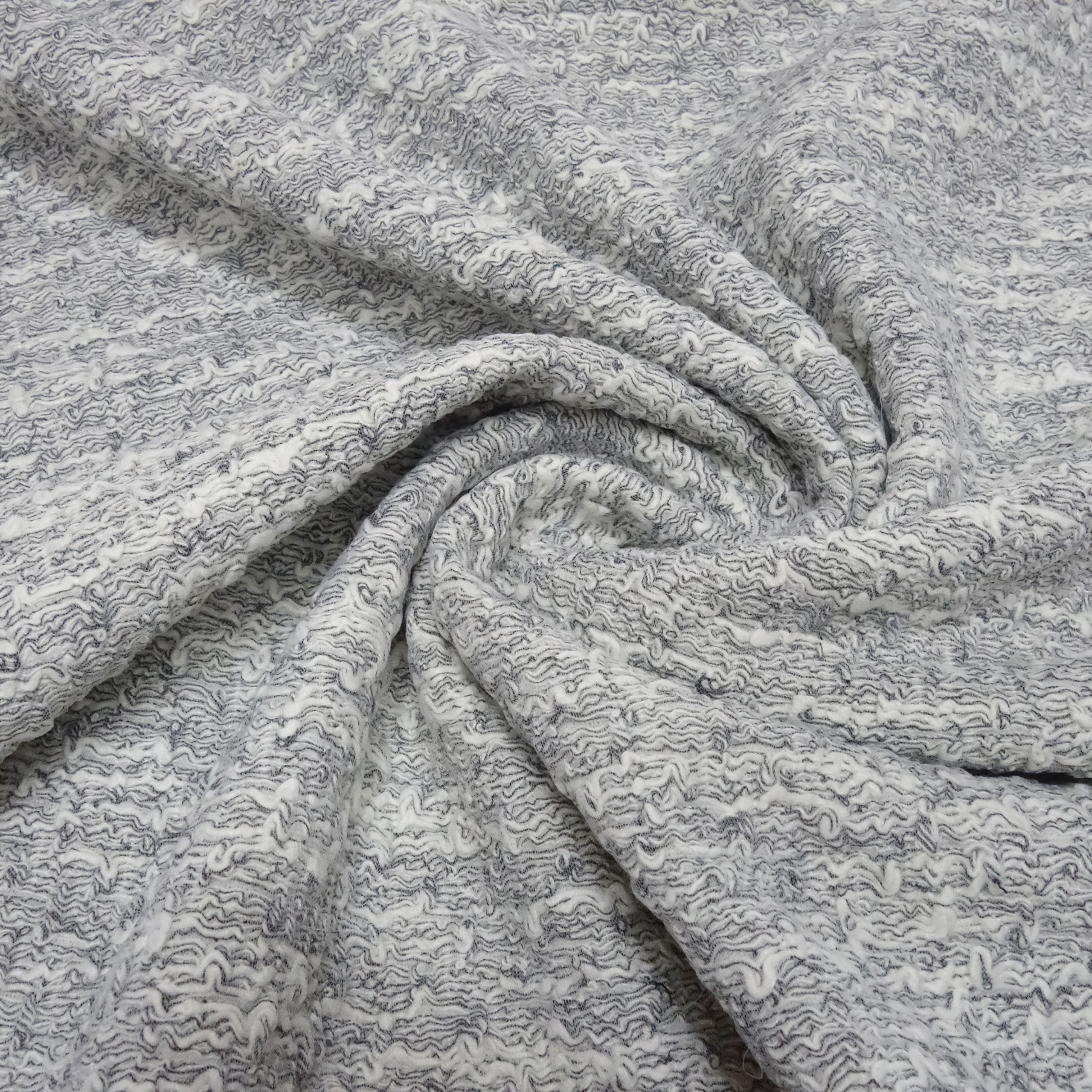 Stoff Strickstoff weiß grau gemustert mit Stretchanteil Jackenstoff Mantelstoff Kleiderstoff