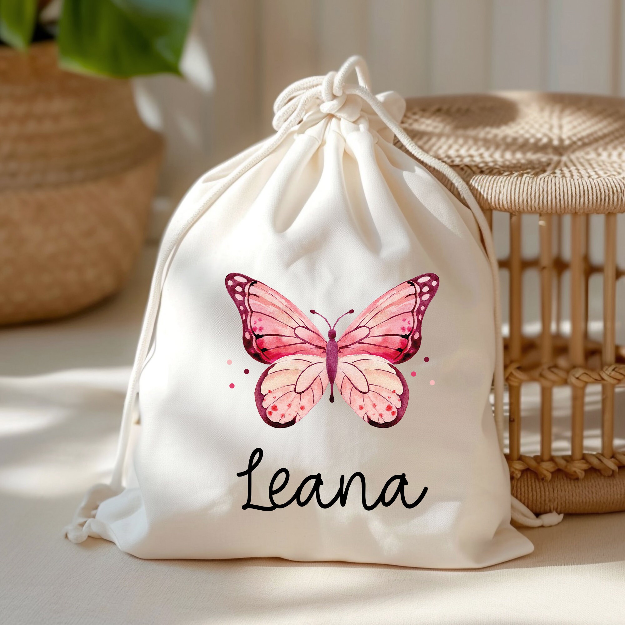 Stofftasche Schmetterling Rosa Personalisiert und Namen. Für Kindergarten und Schule - Wäschebeutel Wechselwäsche KITA | Mädchen & Junge 201