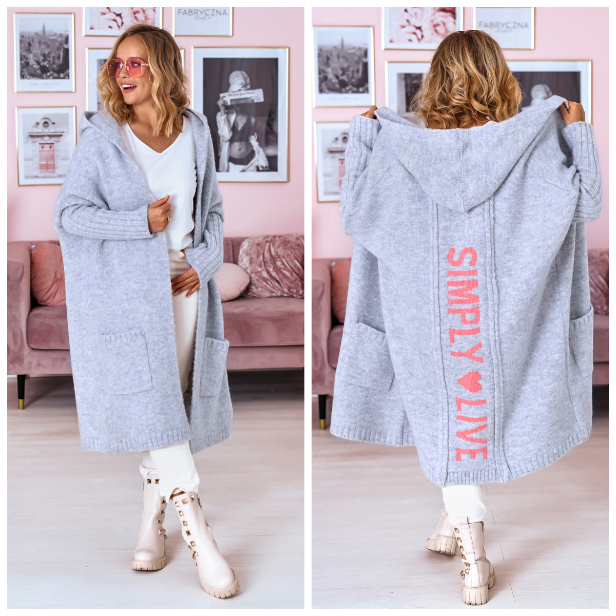 Dieser dicke Oversized-Strickmantel in grau mit pink ist in Einheitsgröße , passt bei bei M bis 2XL und ist real noch viel schöner !