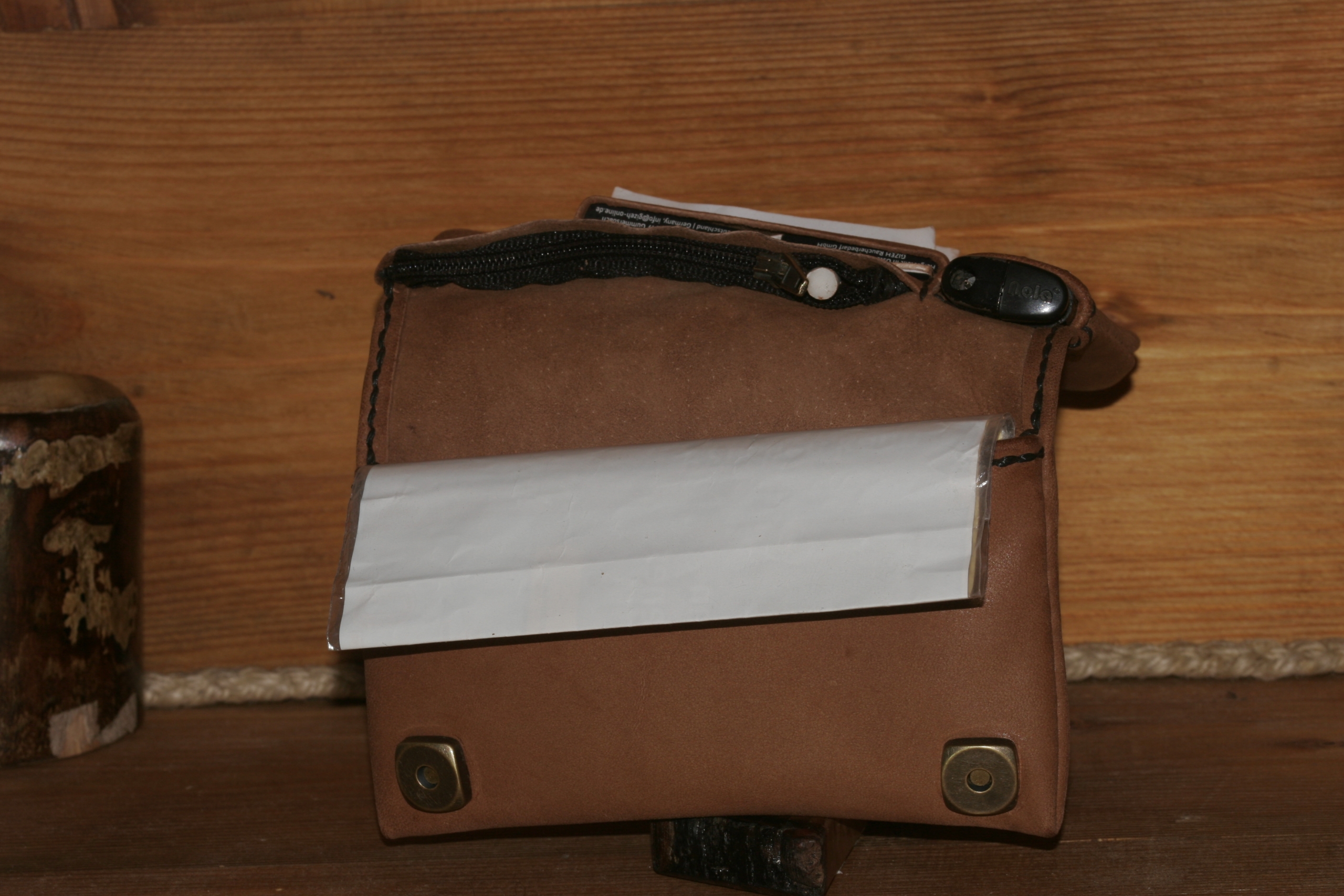 Die Tasche bietet Platz für Filter, Paper und Tabak, sowie einen Feuerzeug.