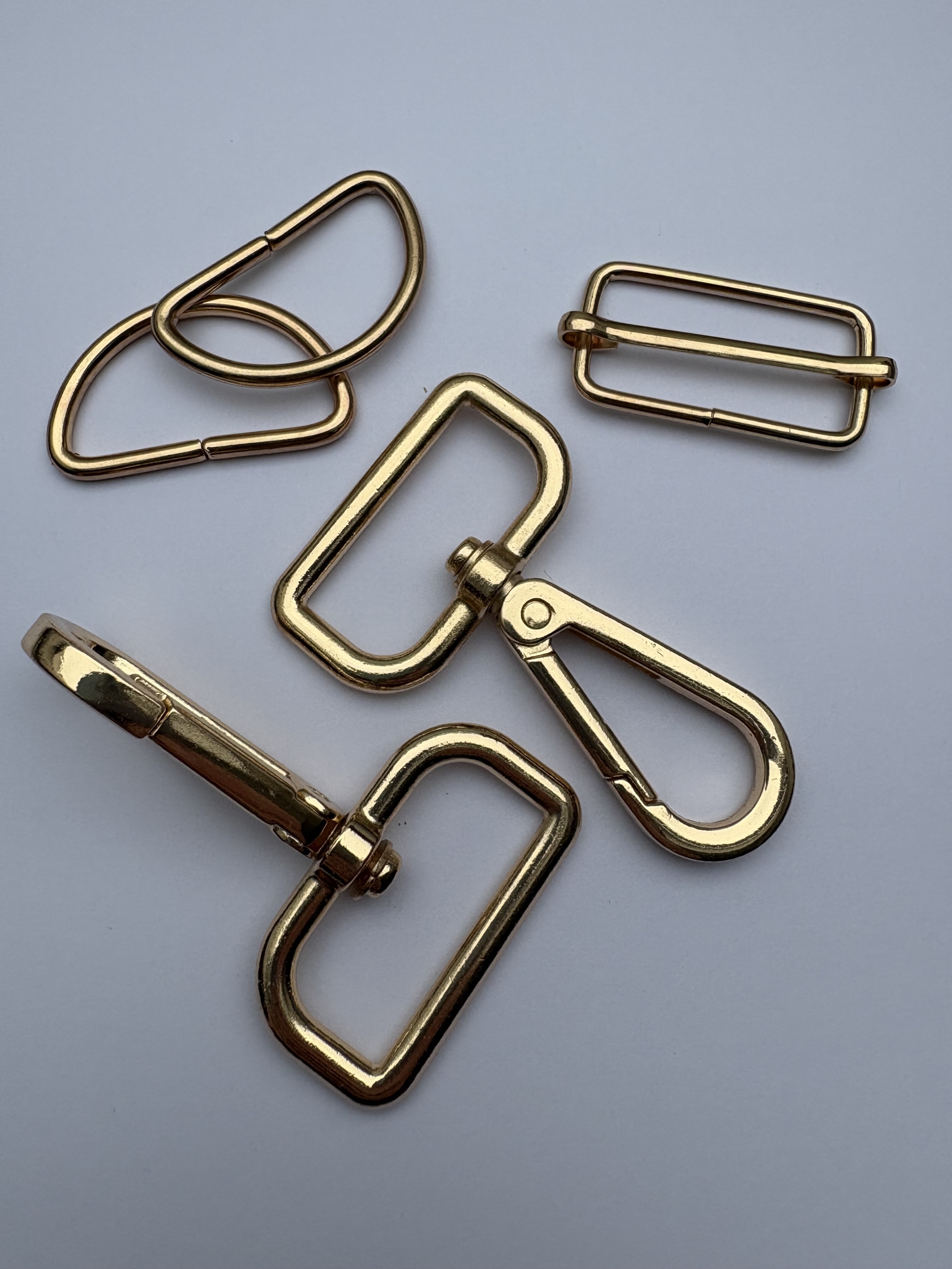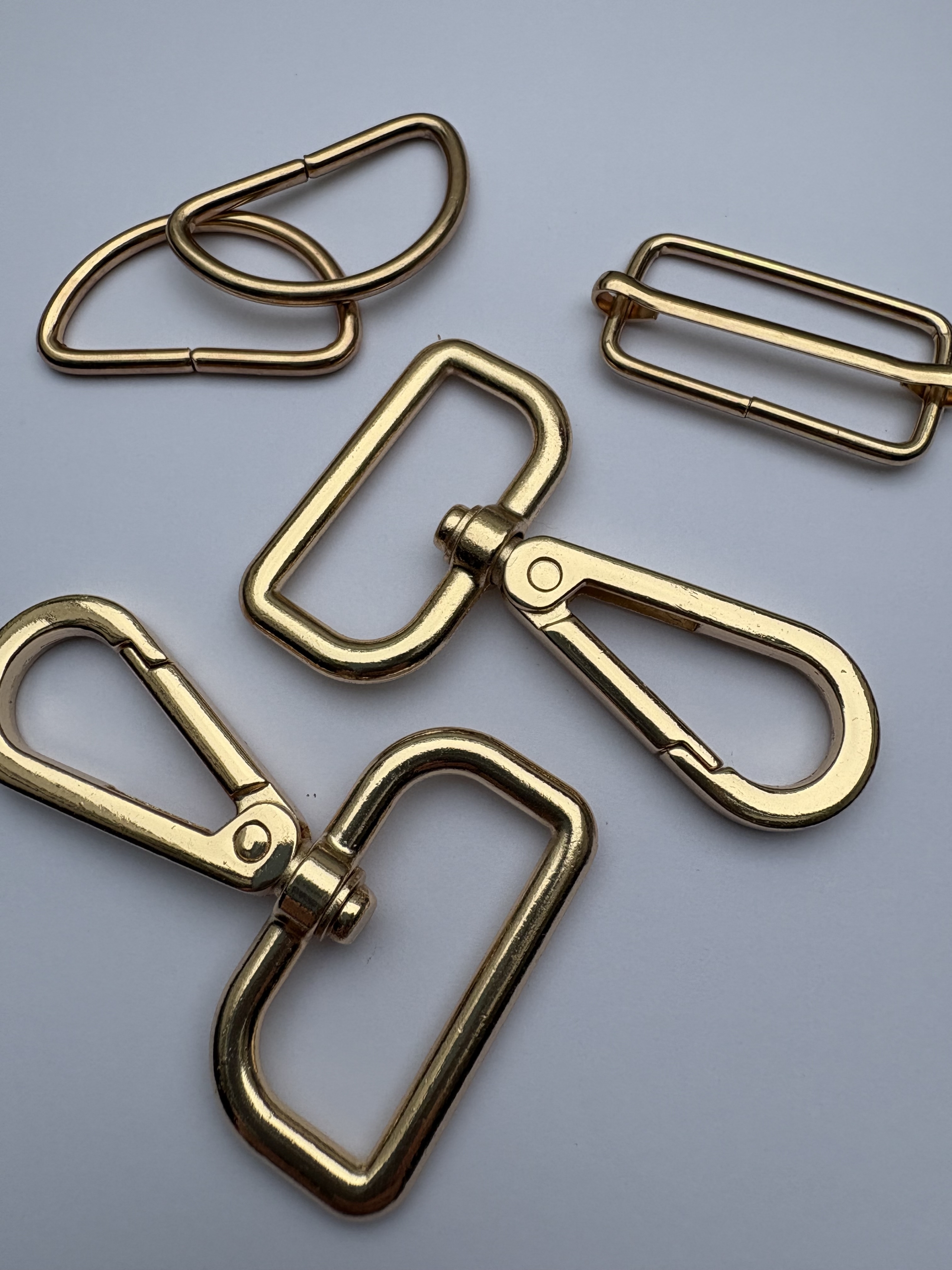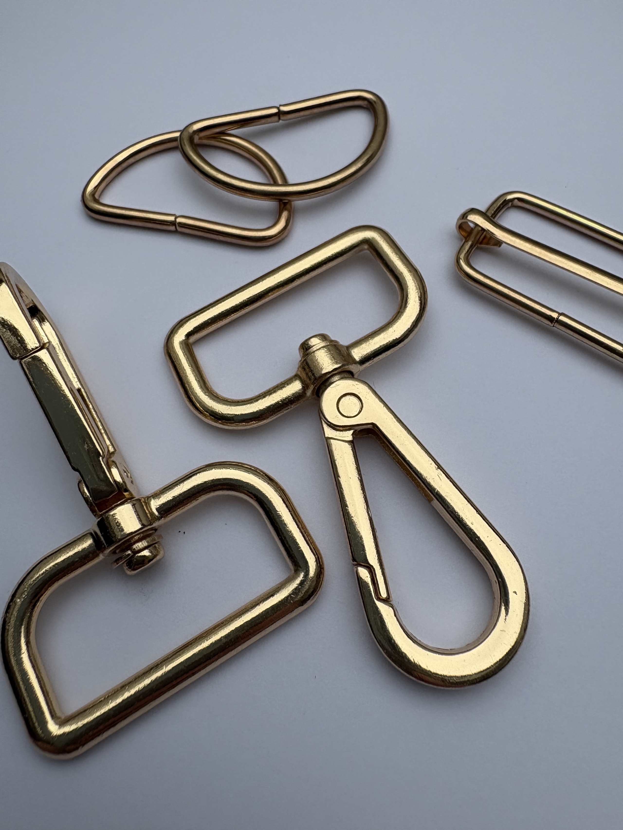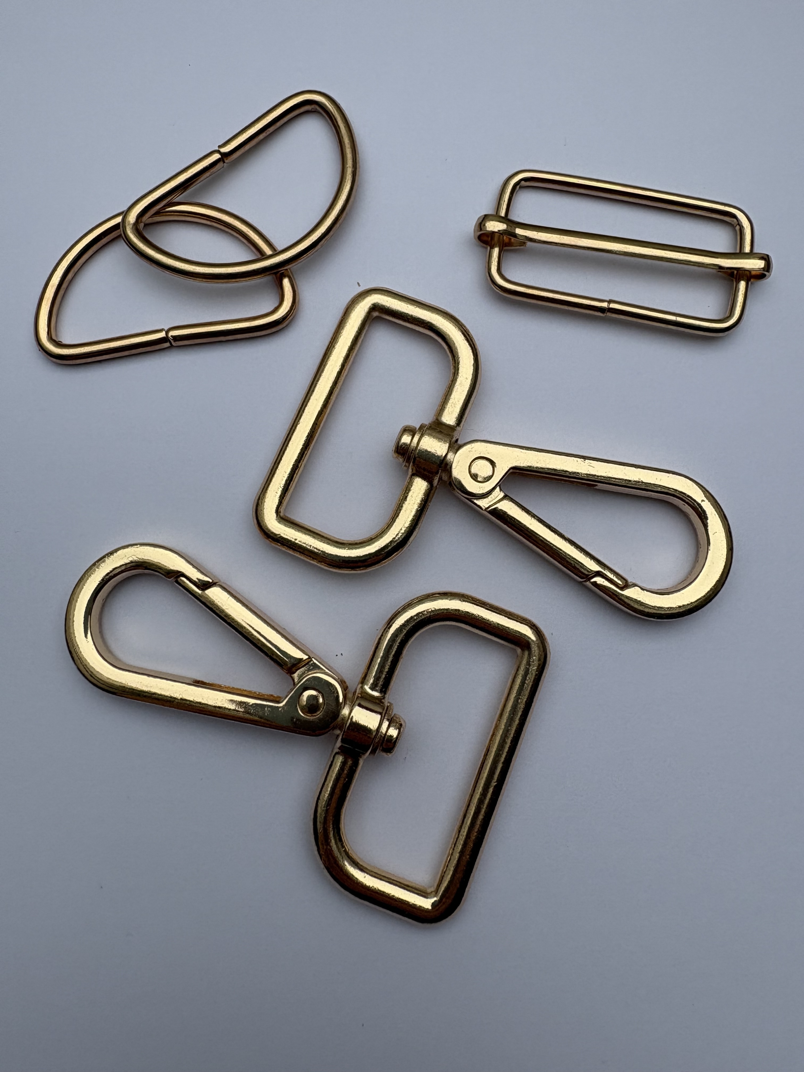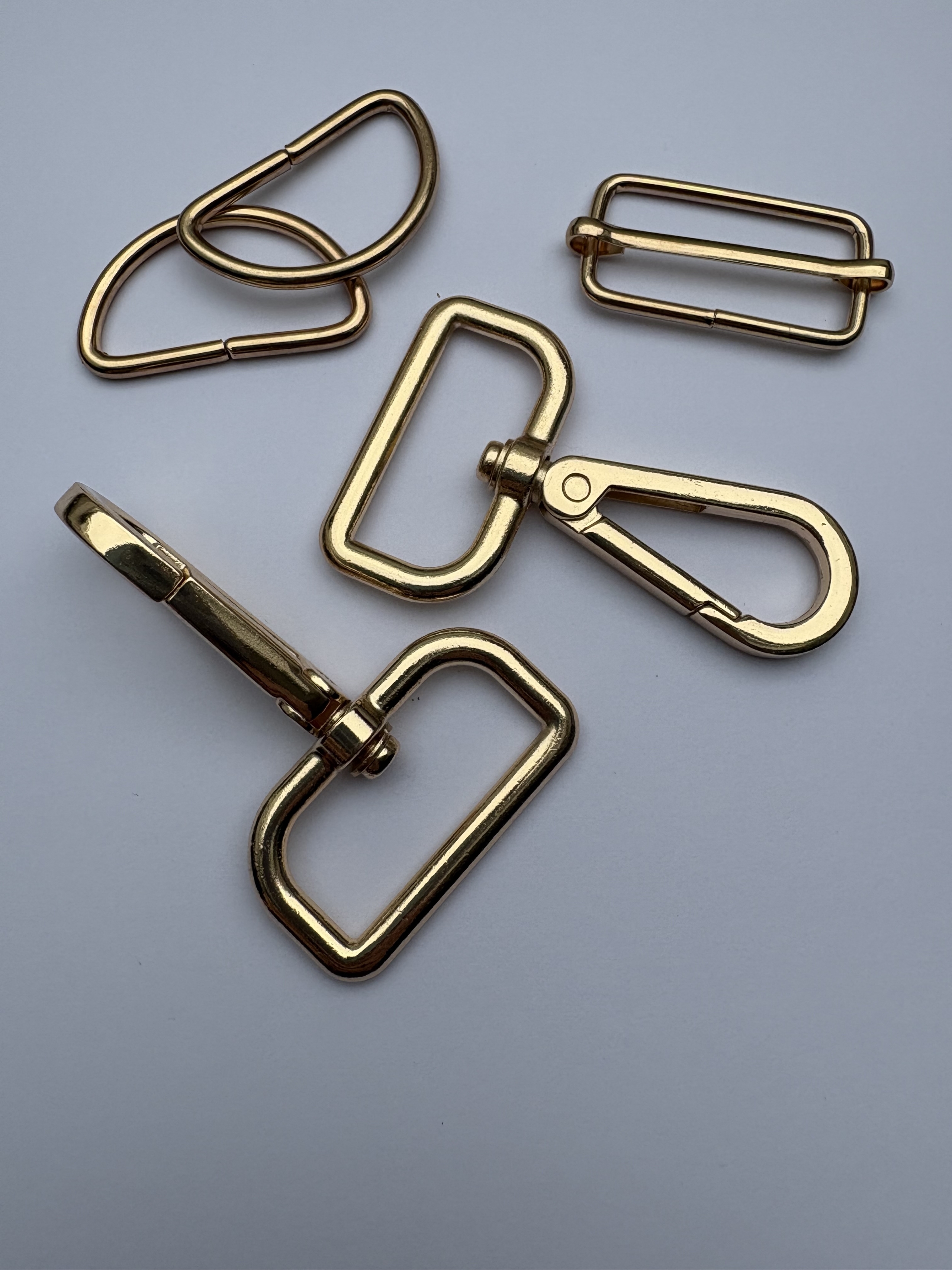 - Taschenset für 30 mm breite Bänder -Farbe: gold / rosAgold - 2x Karabinerhaken + 2x D-Ringe + 1x Schieber