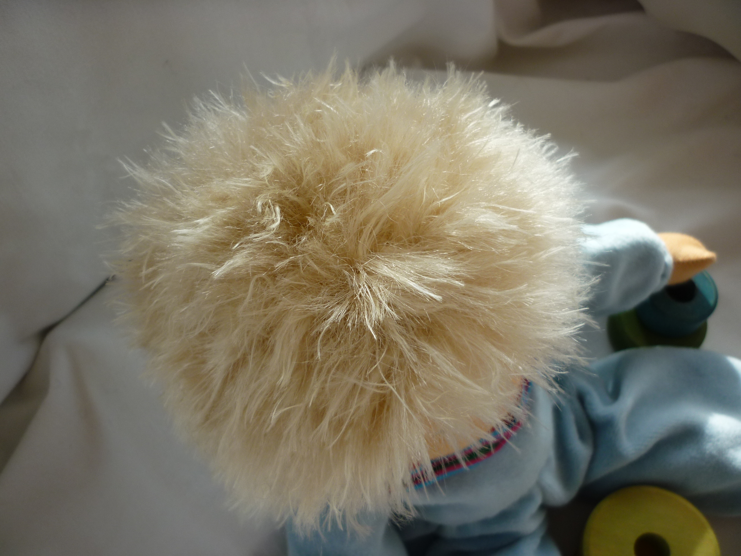 Wenn nötig, kann diese Puppe, da sie sehr fest gestopft ist, in der Maschine im Wollwaschgang gewaschen werden. Ich empfehle aber immer Handwäsche, auch wegen der Haare.