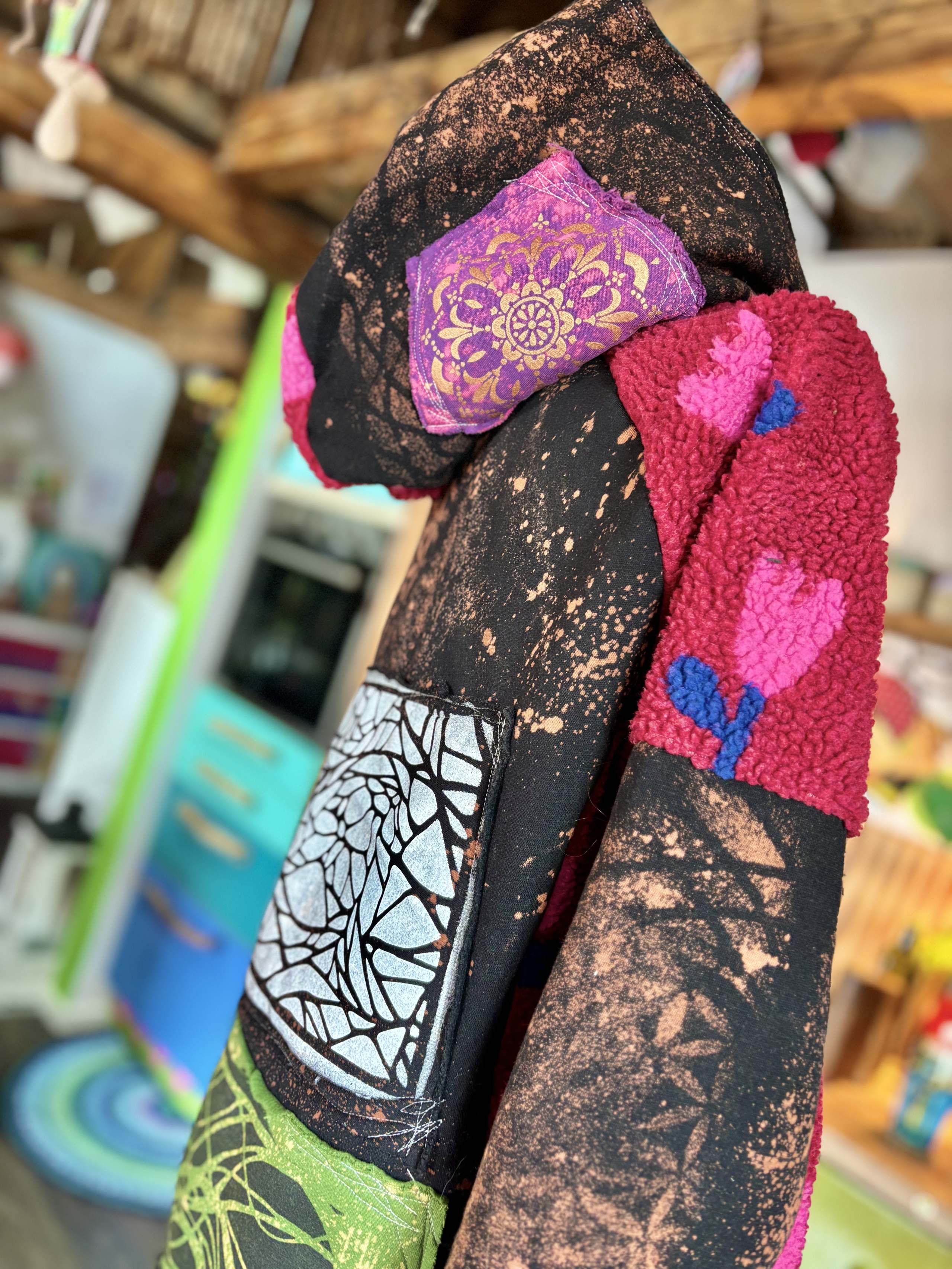 Mit viel Liebe genähte Jacke aus Teddy- und Sweatstoff.