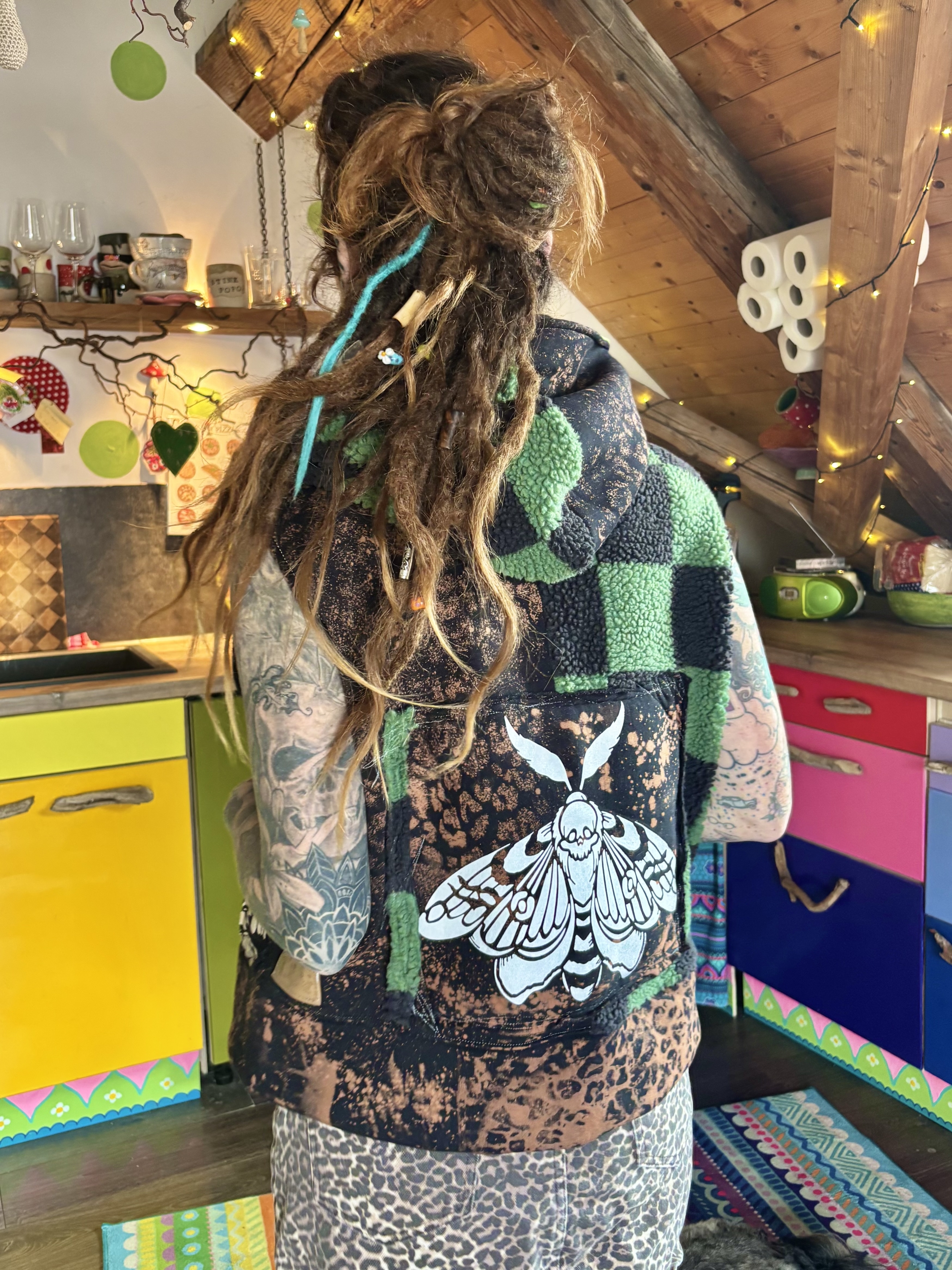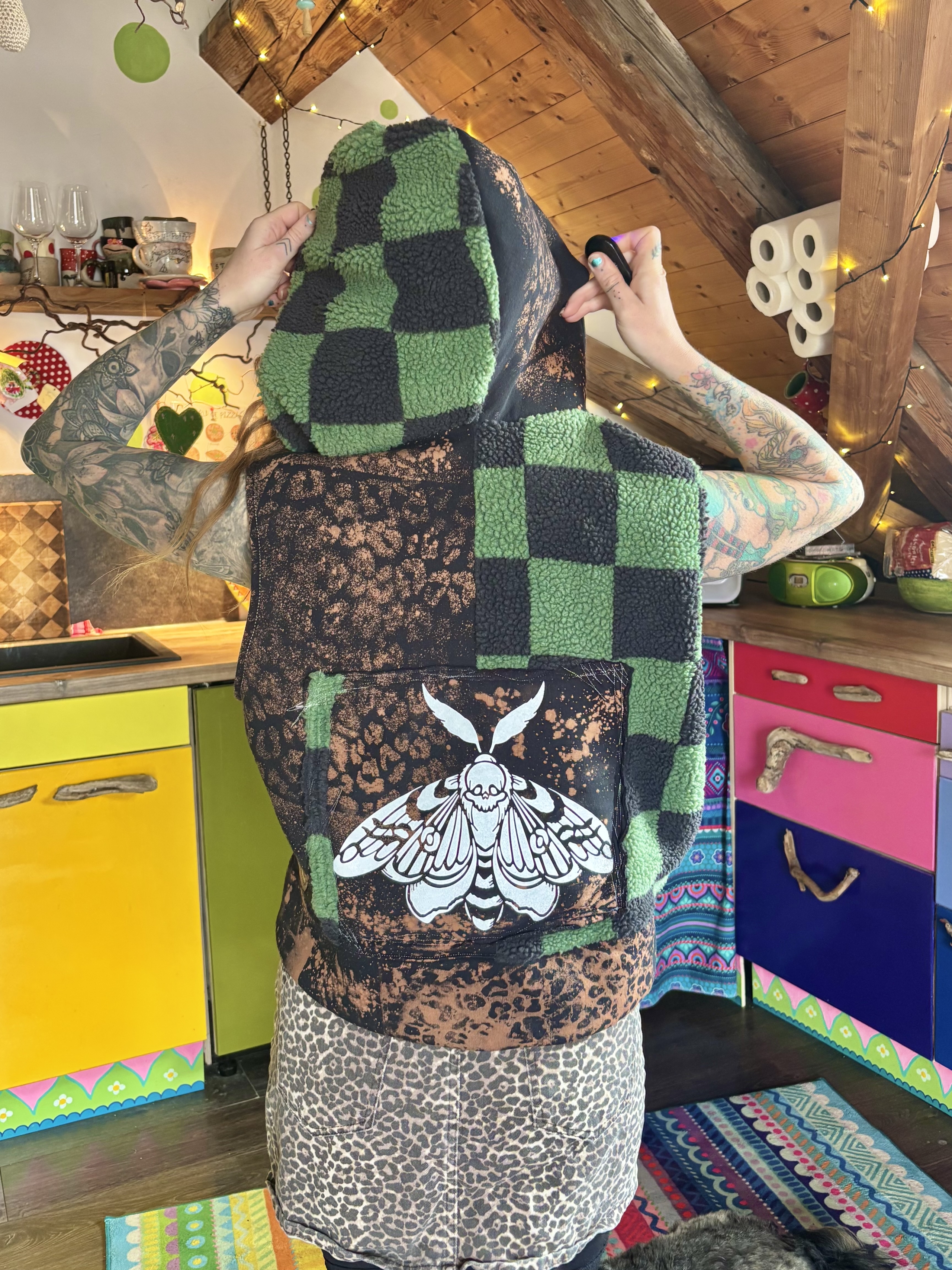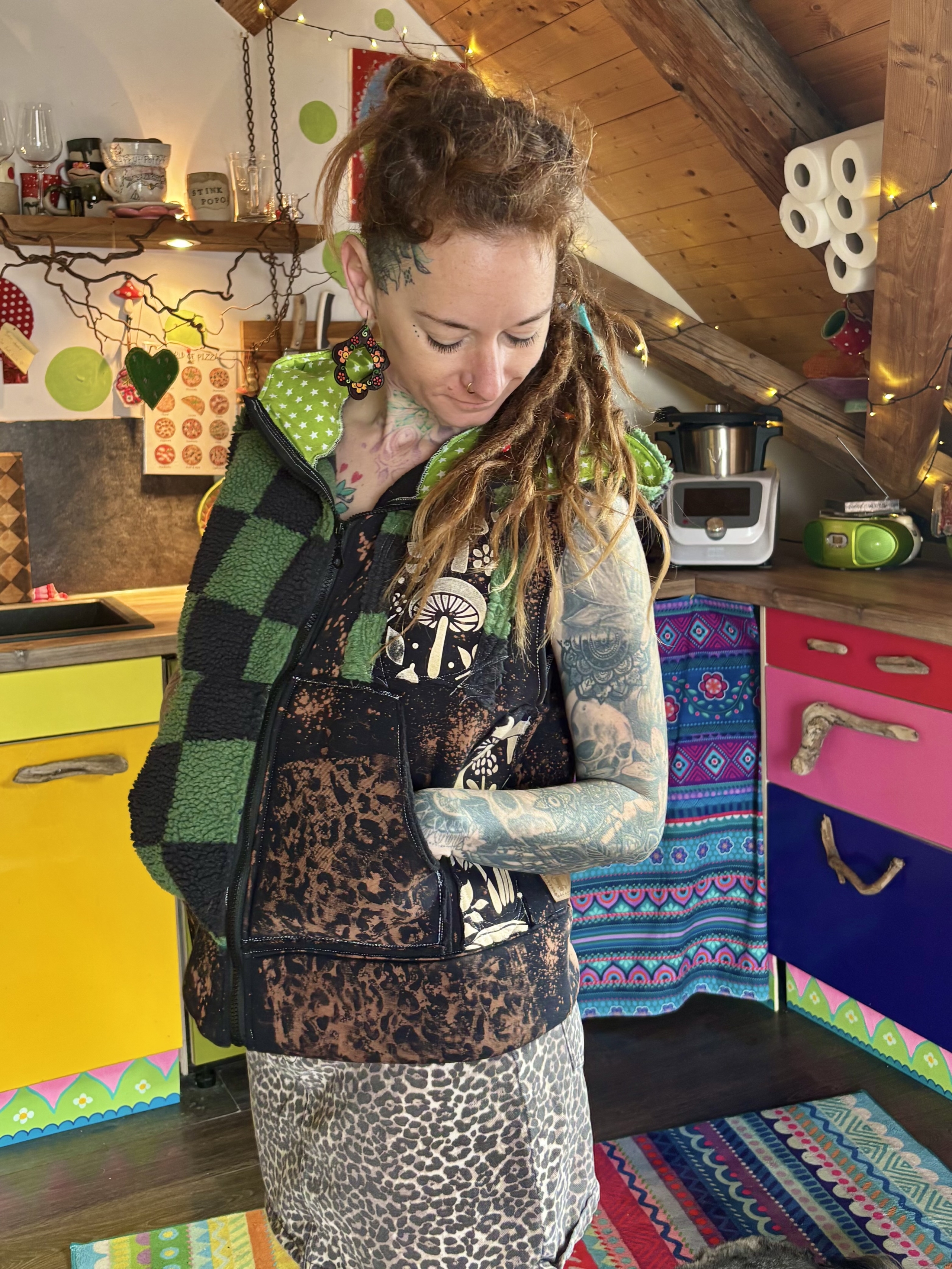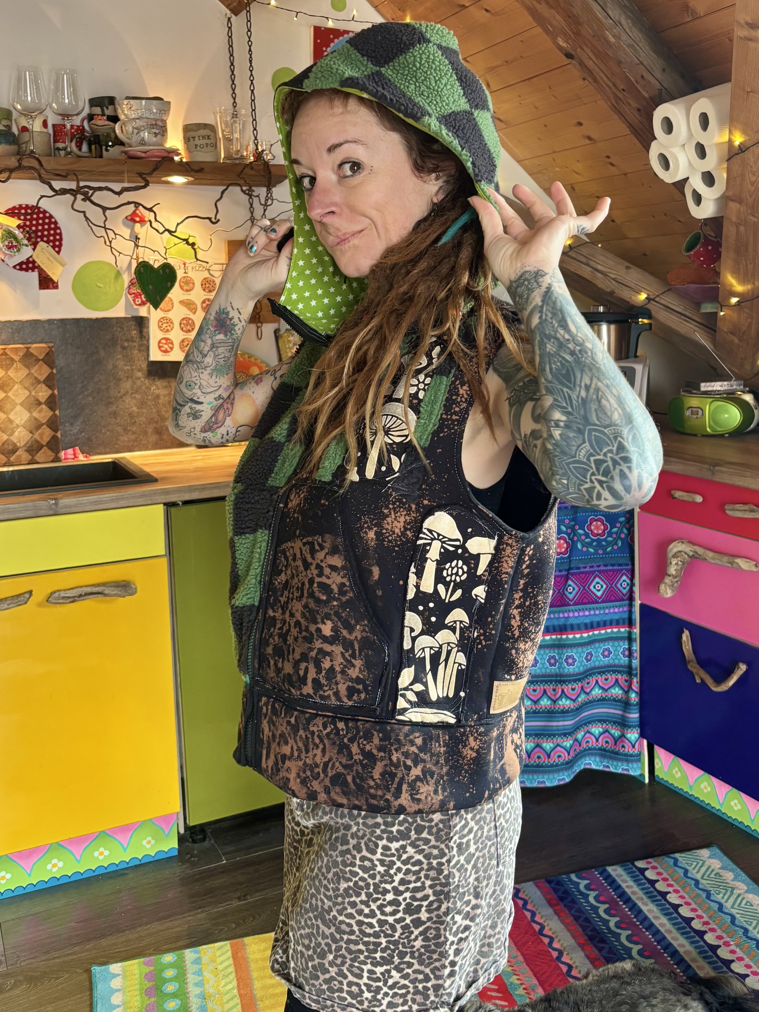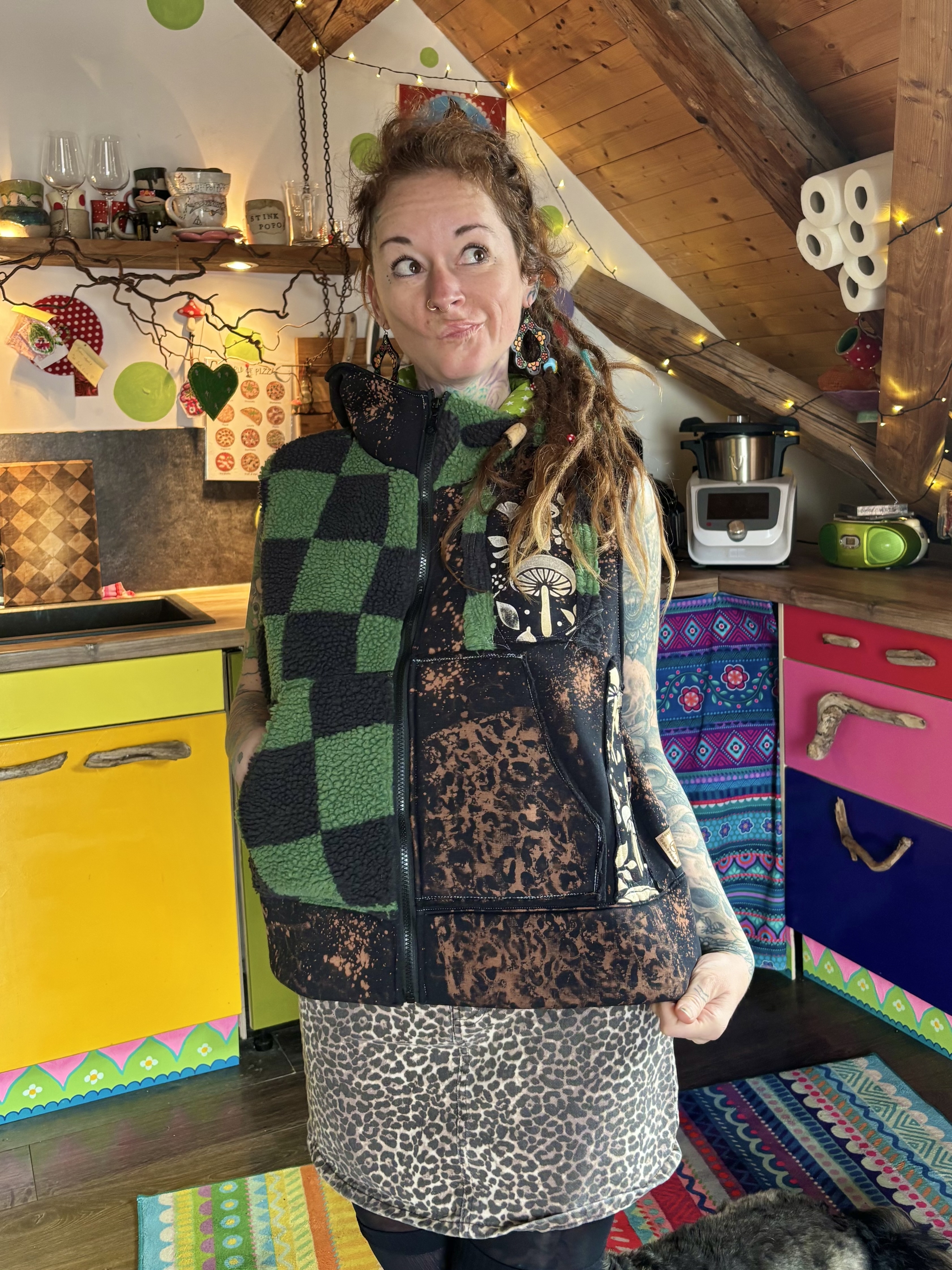 Mit viel Liebe genähte Weste aus Teddy- und Sweatstoff.
