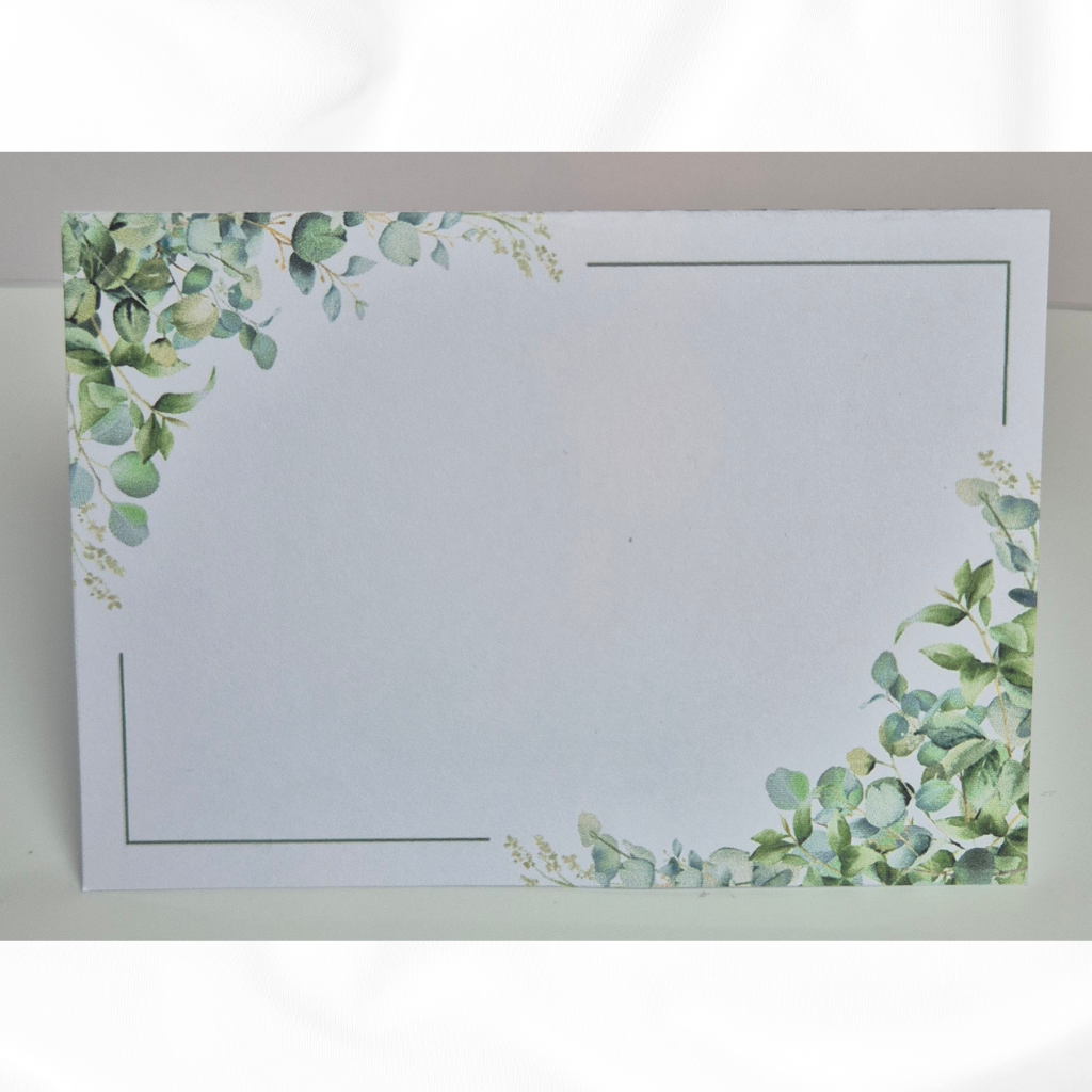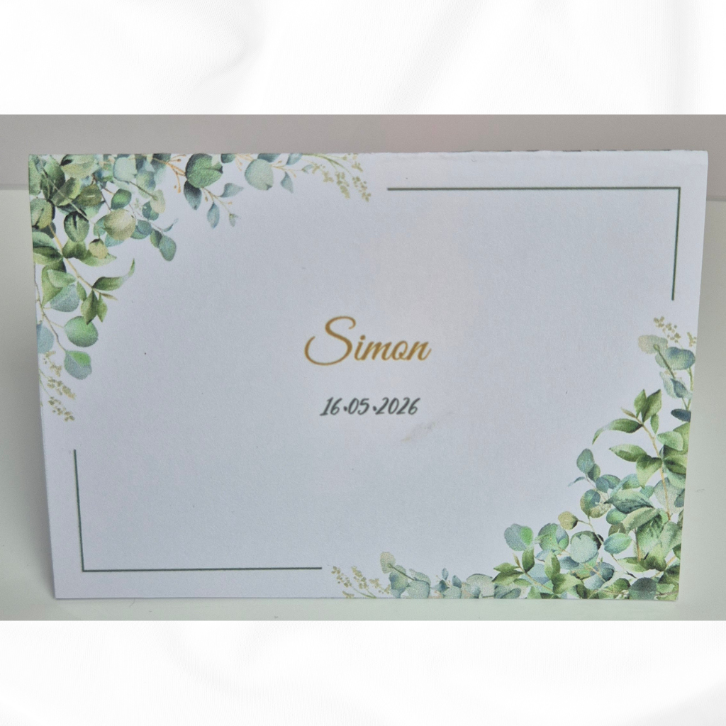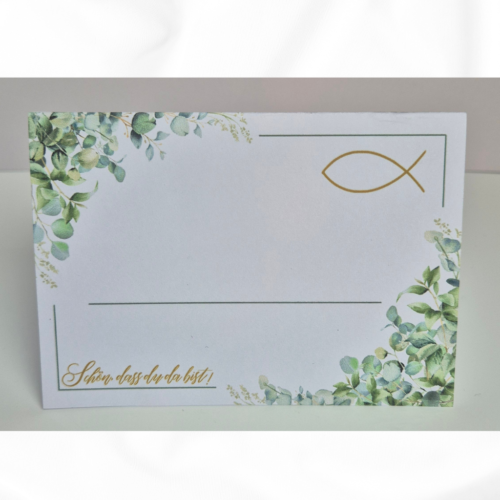 Die Vorderseite der Karte bleibt bewusst frei, sodass du den Namen deiner Gäste ganz individuell selbst darauf schreiben kannst – perfekt für eine persönliche Handschrift.