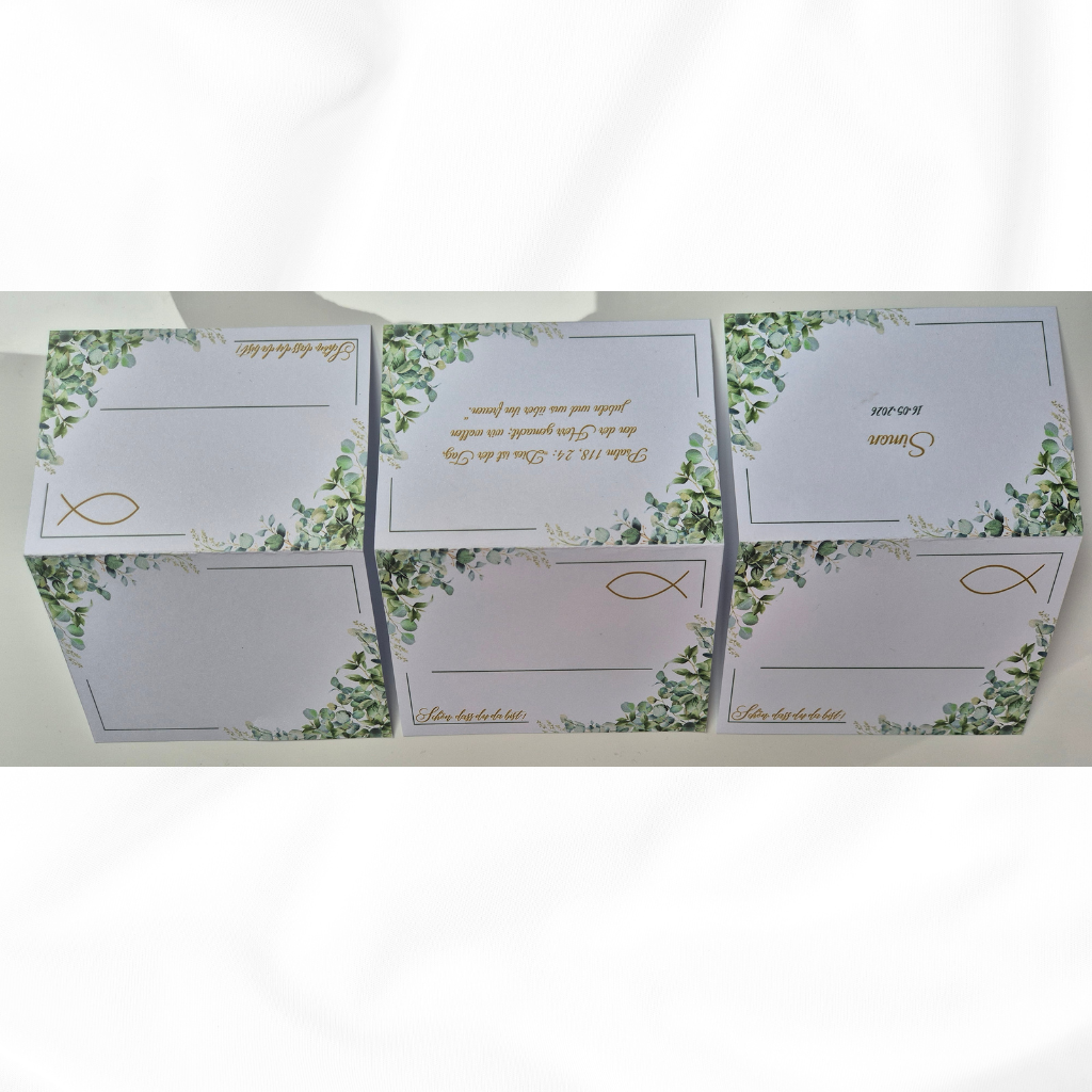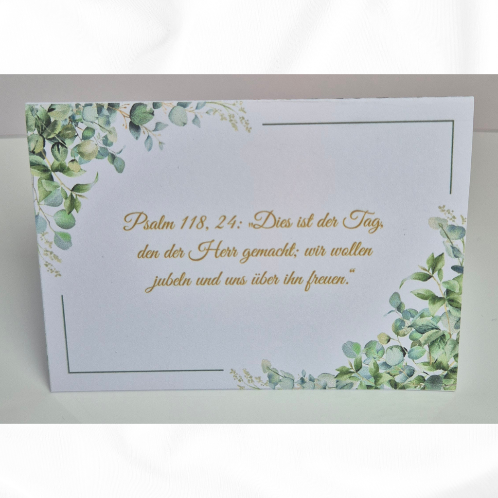 Nach deiner Bestellung teilst du mir einfach deine Wünsche für die Rückseite mit (Text, Namen, Datum oder Wunschspruch), und ich erstelle deine Karten ganz individuell.