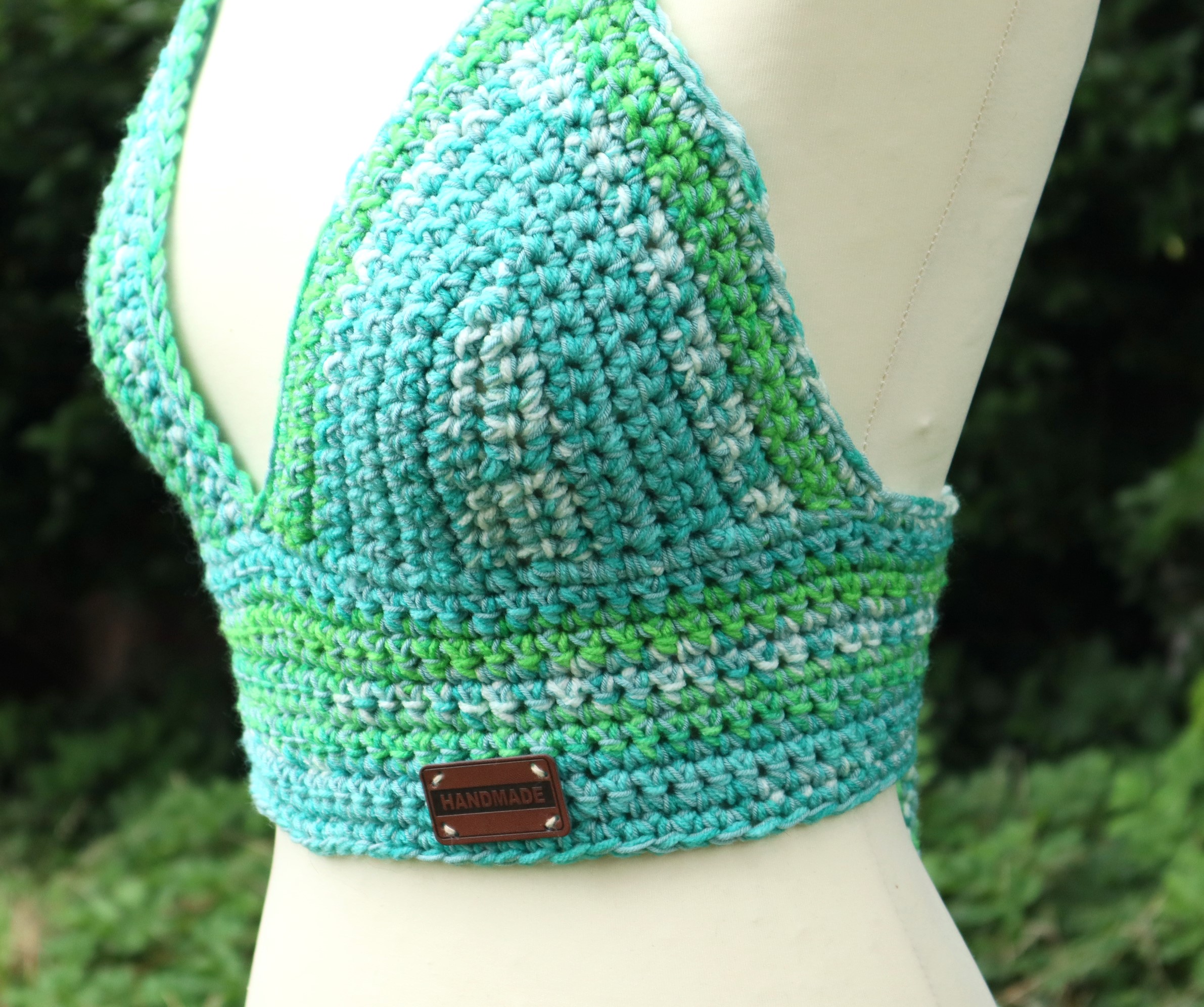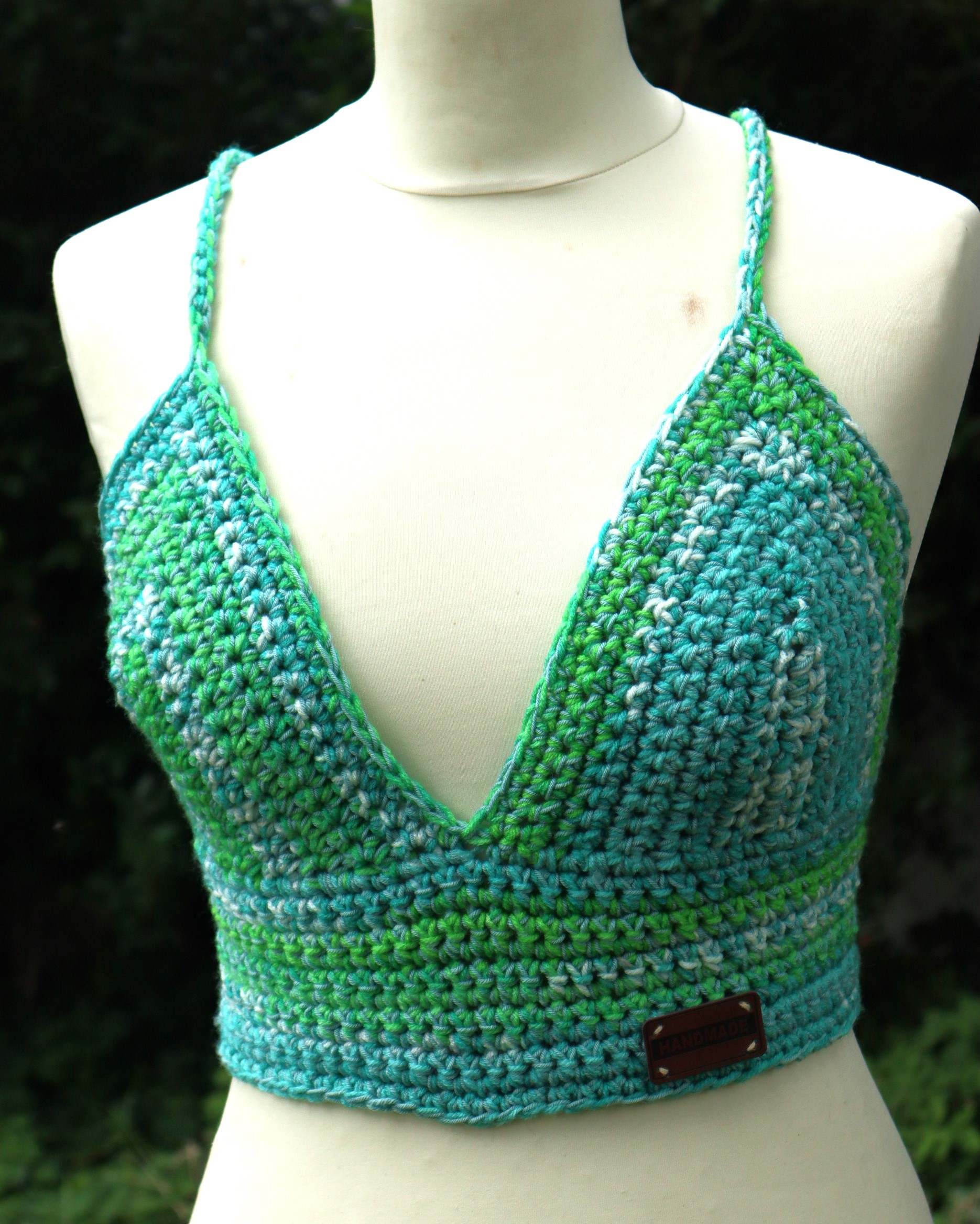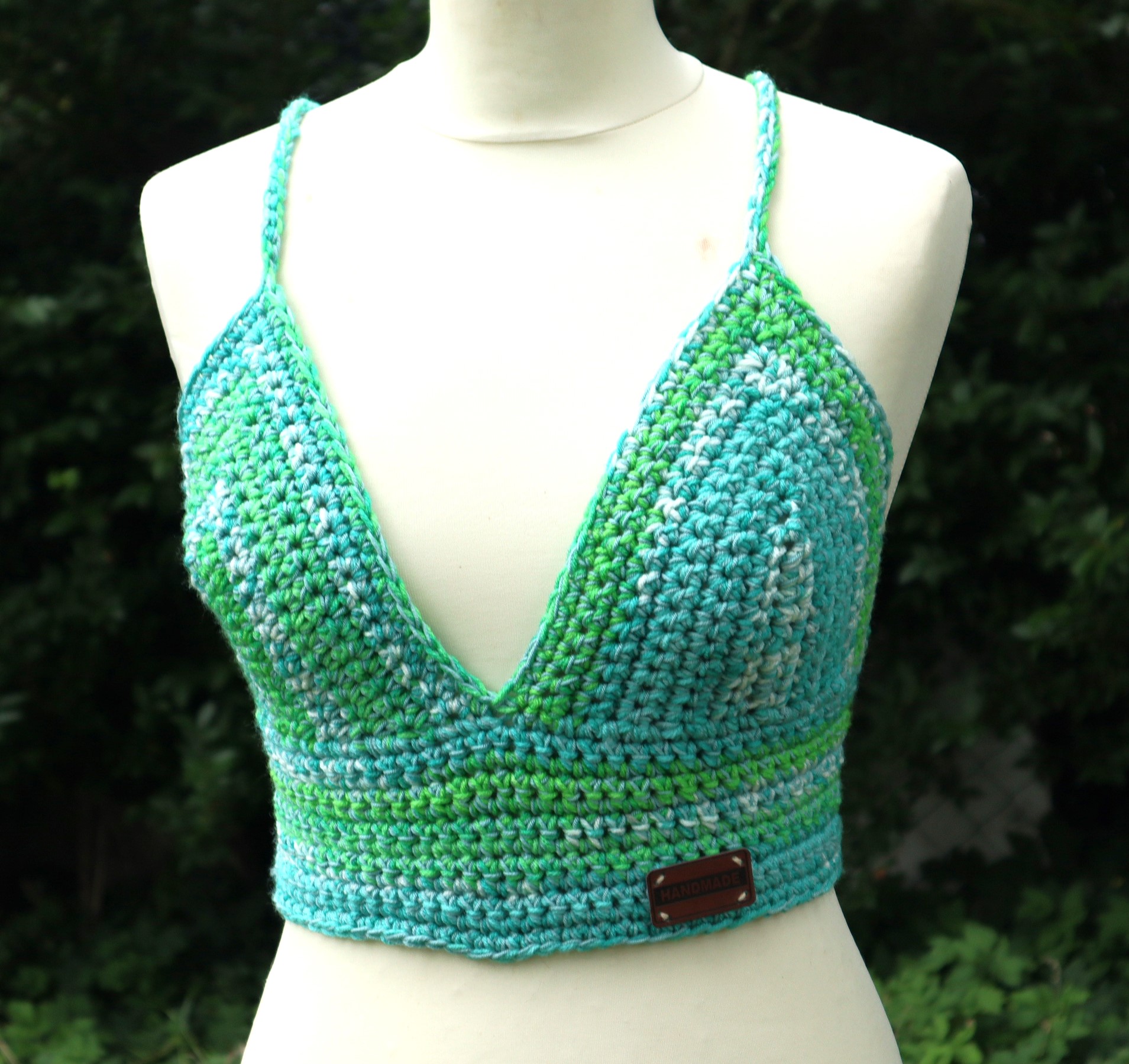 Liebevoll von Hand gehäkeltes Sommertop aus weichem leichtem Polyacrylgarn im Farbverlauf.