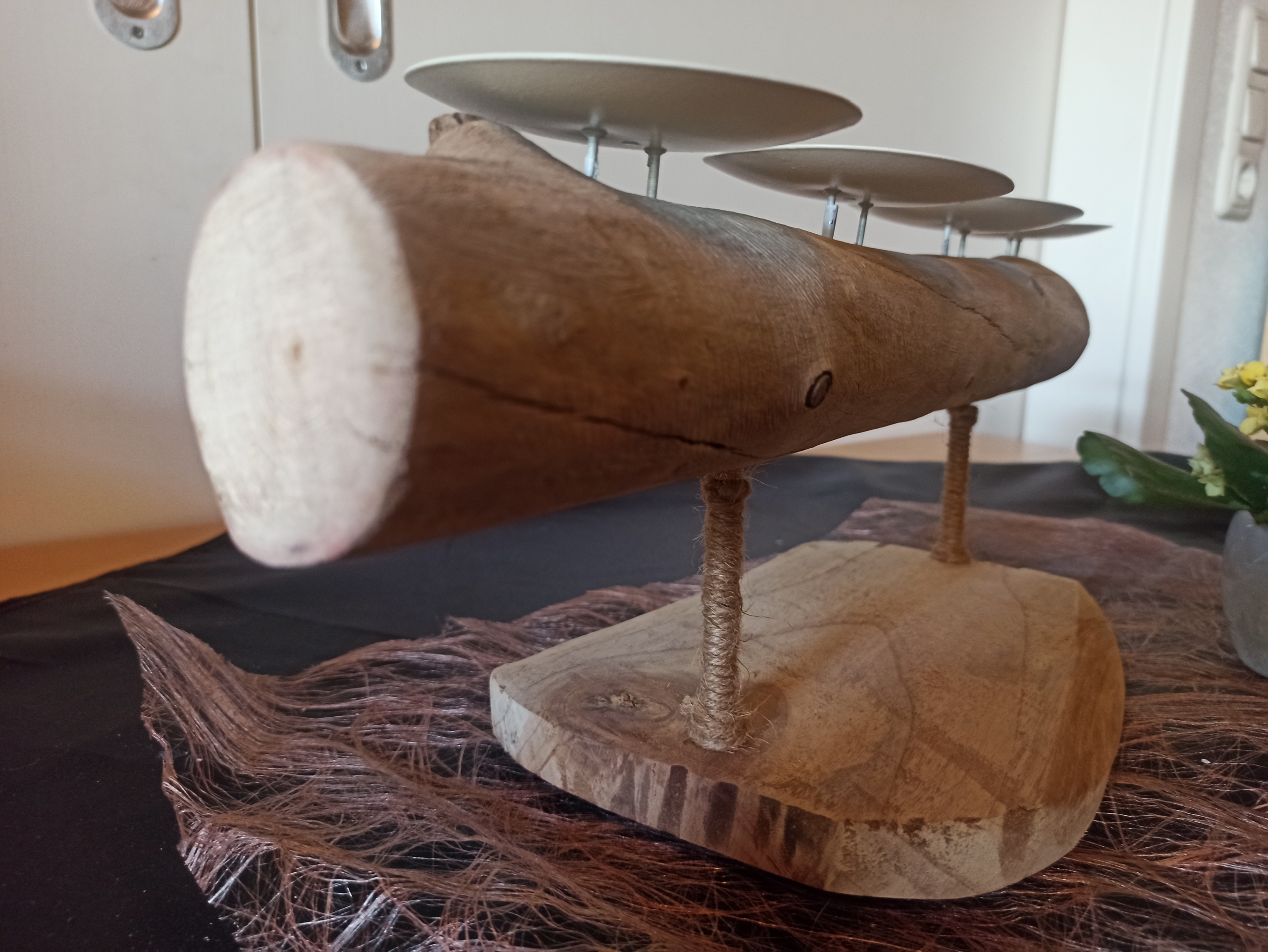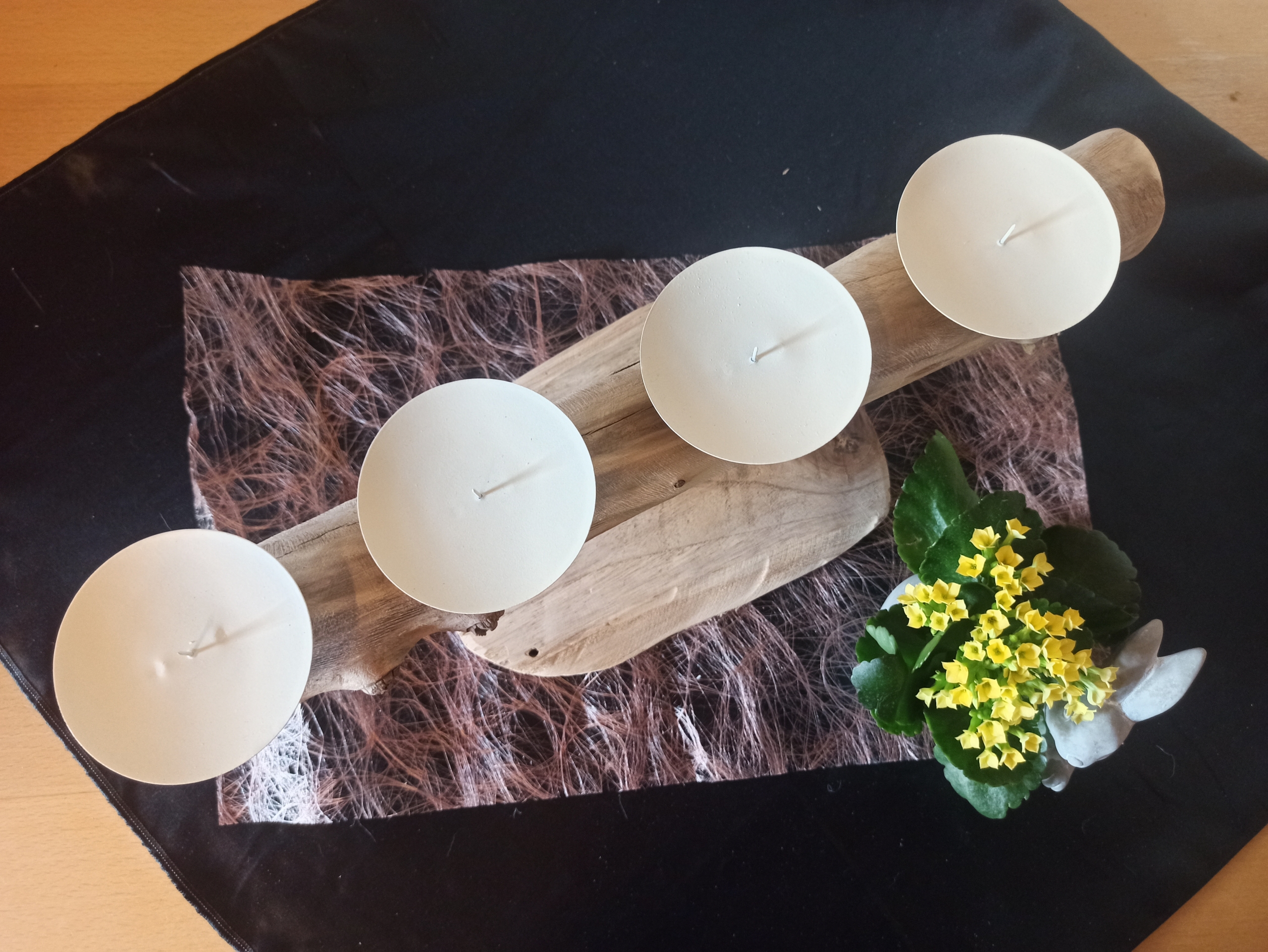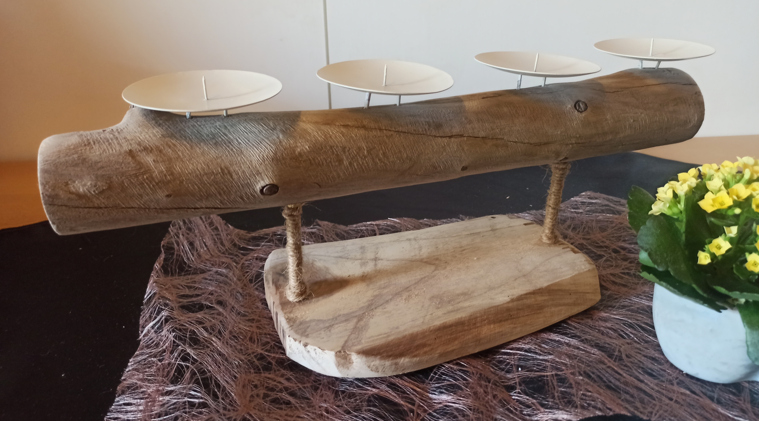 Treibholz, Metallkerzenhalter, Teakholzplatte
