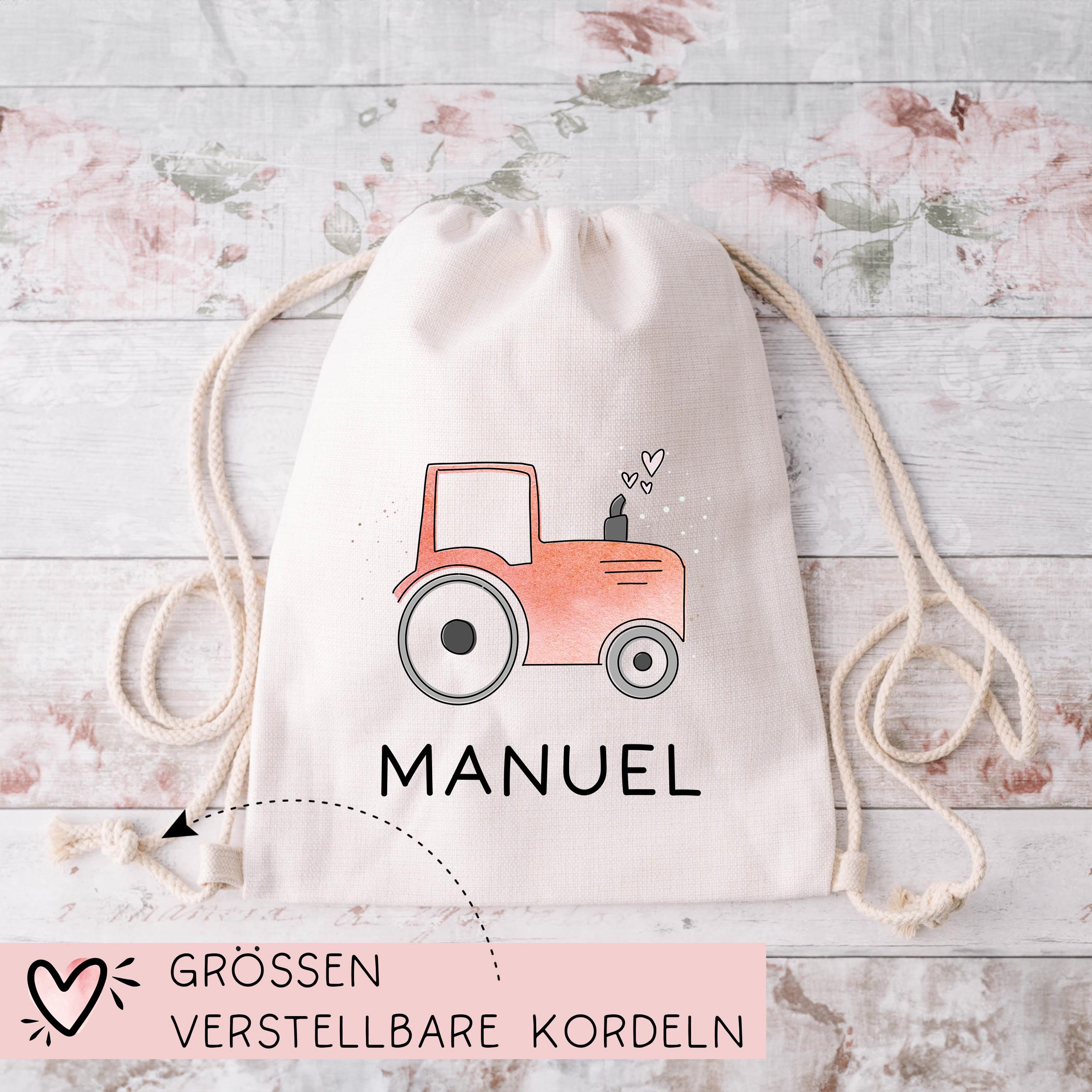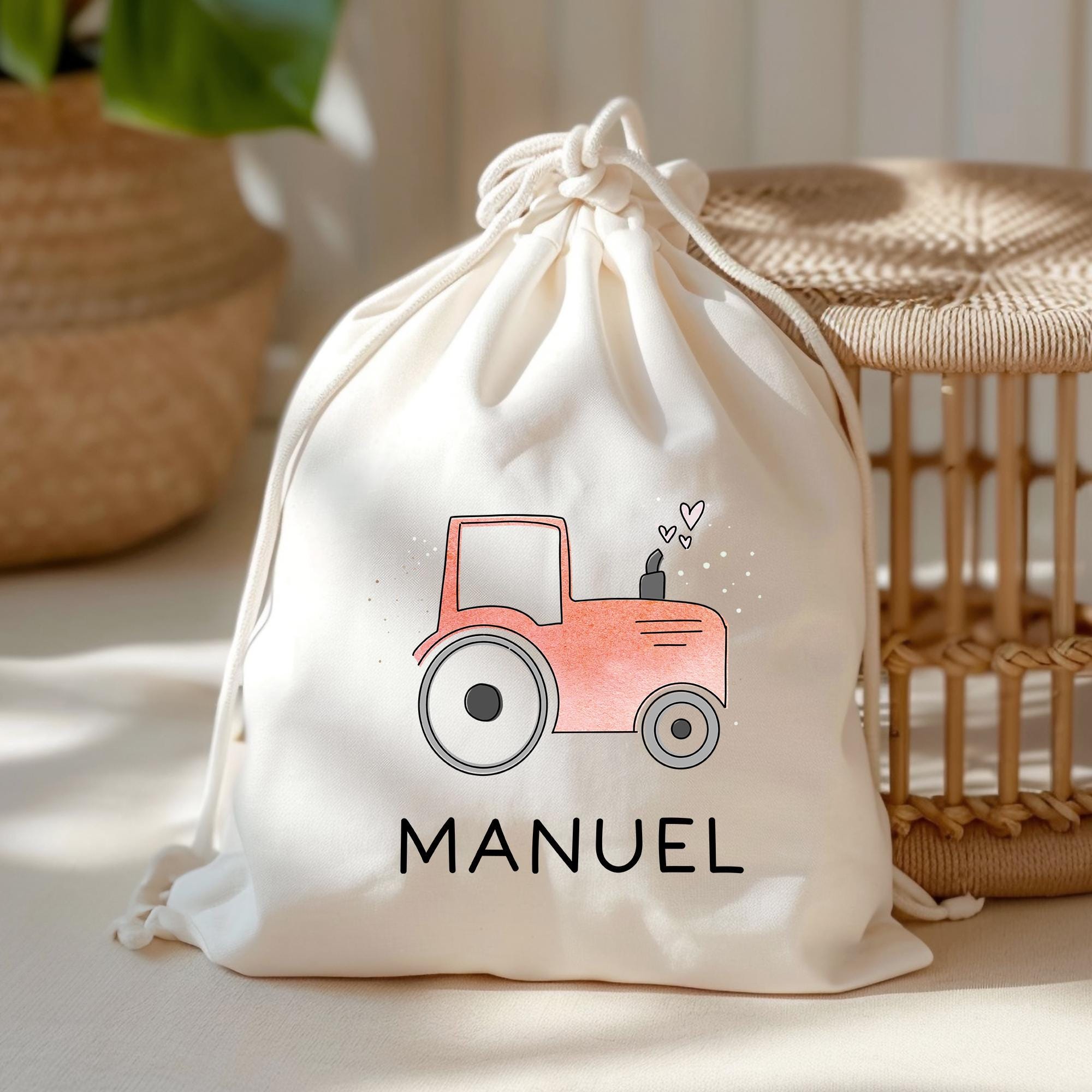 Ein Muss für alle Traktor-Fans! Der personalisierte Turnbeutel für Kinder ist vielseitig einsetzbar und aus strapazierfähiger Baumwolle gefertigt – ein zuverlässiger Begleiter für die Kleinen. Bedruckt mit einem niedlichen Roten Traktor und dem Namen des Kindes, sorgt er für Freude und Individualität.