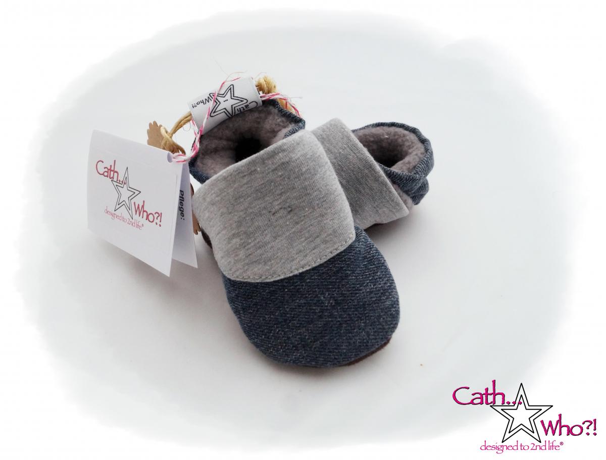 Wir sind super bequeme, vegane Hausschuhe aus abgelegten Jeanshosen. Unser Stoff ist robust doch flexibel, sodass wir angenehm am Fuß anliegen.