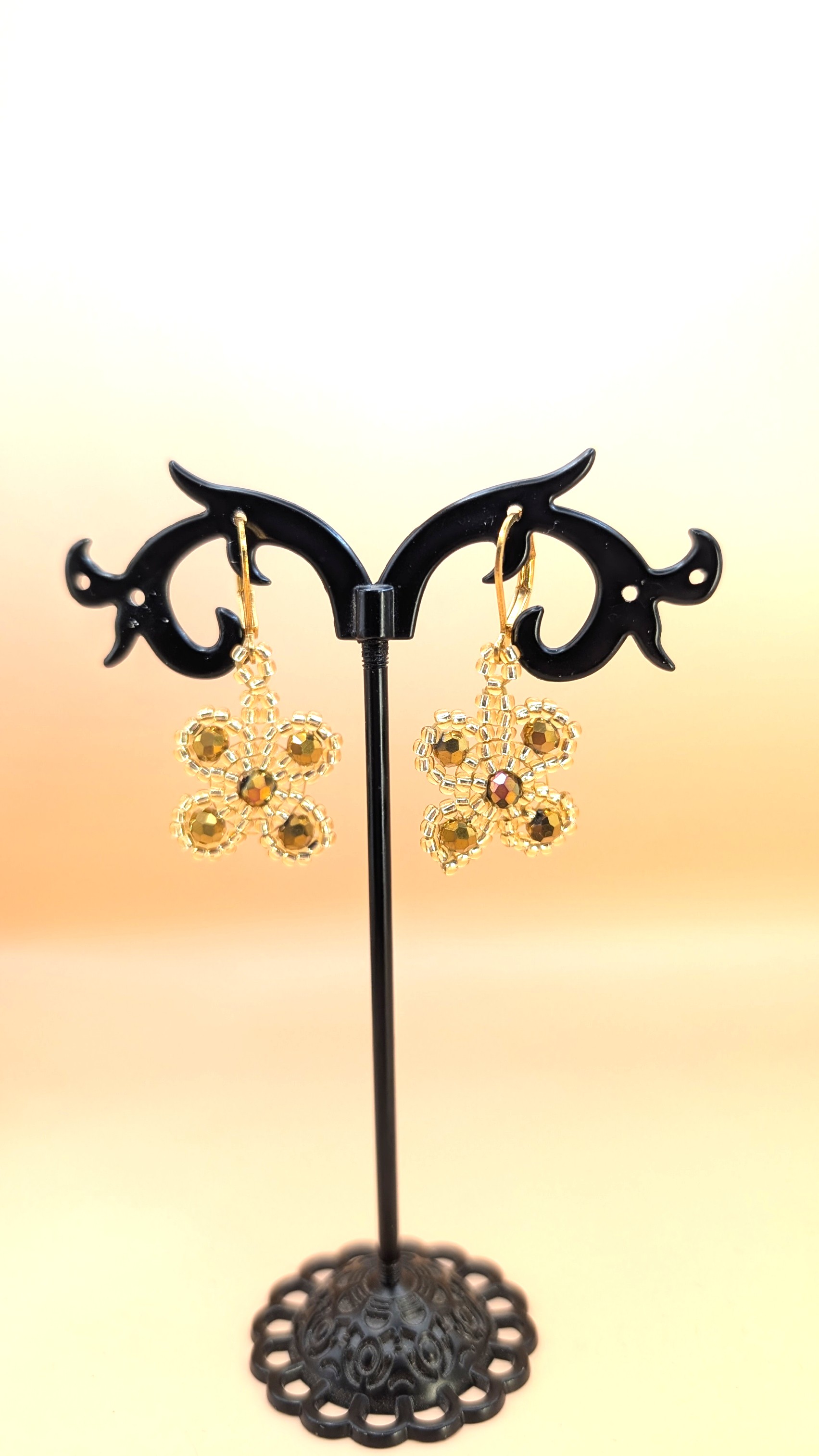 ✨ Handgemachte Boho-Ohrringe aus goldenen Glasperlen – floral & zart ✨