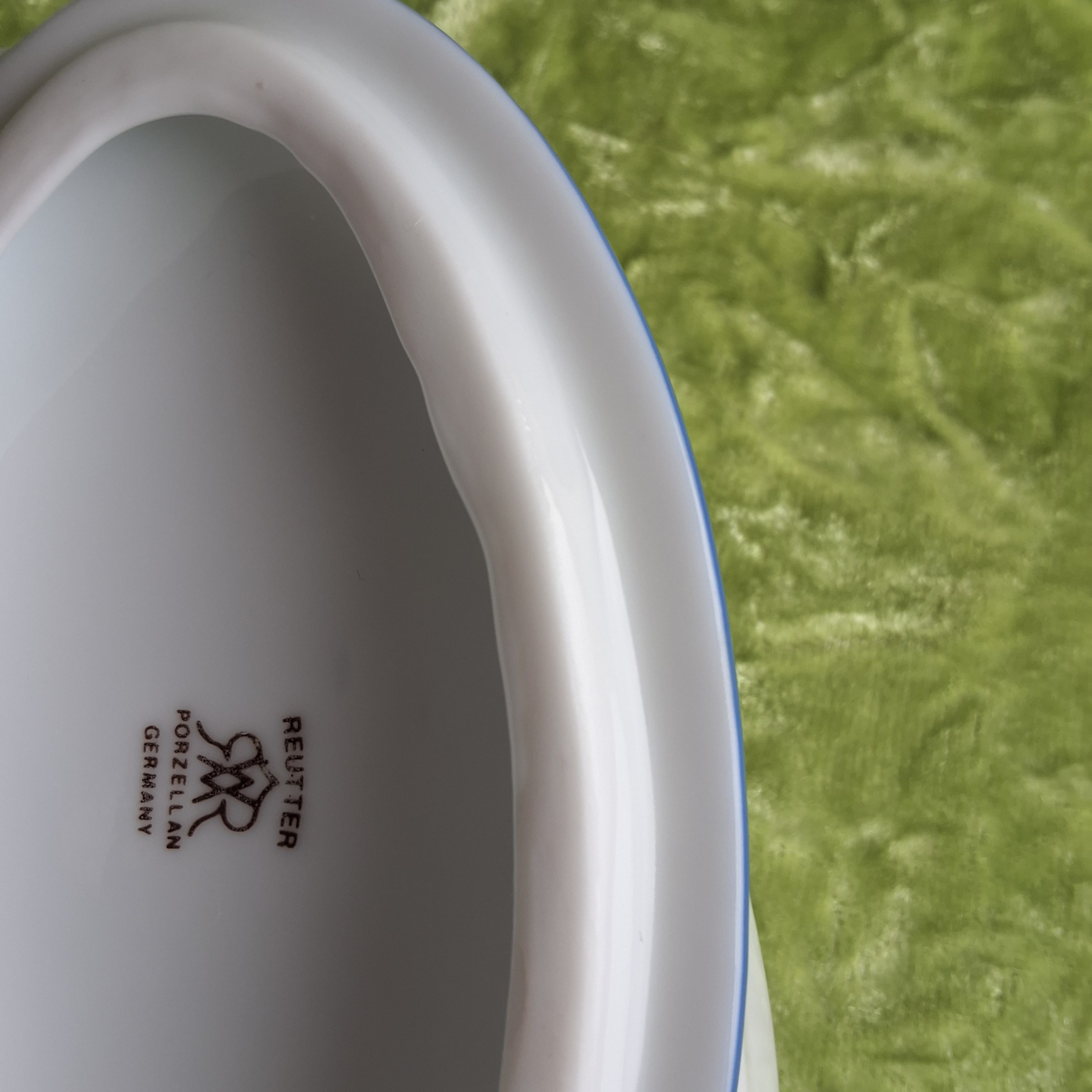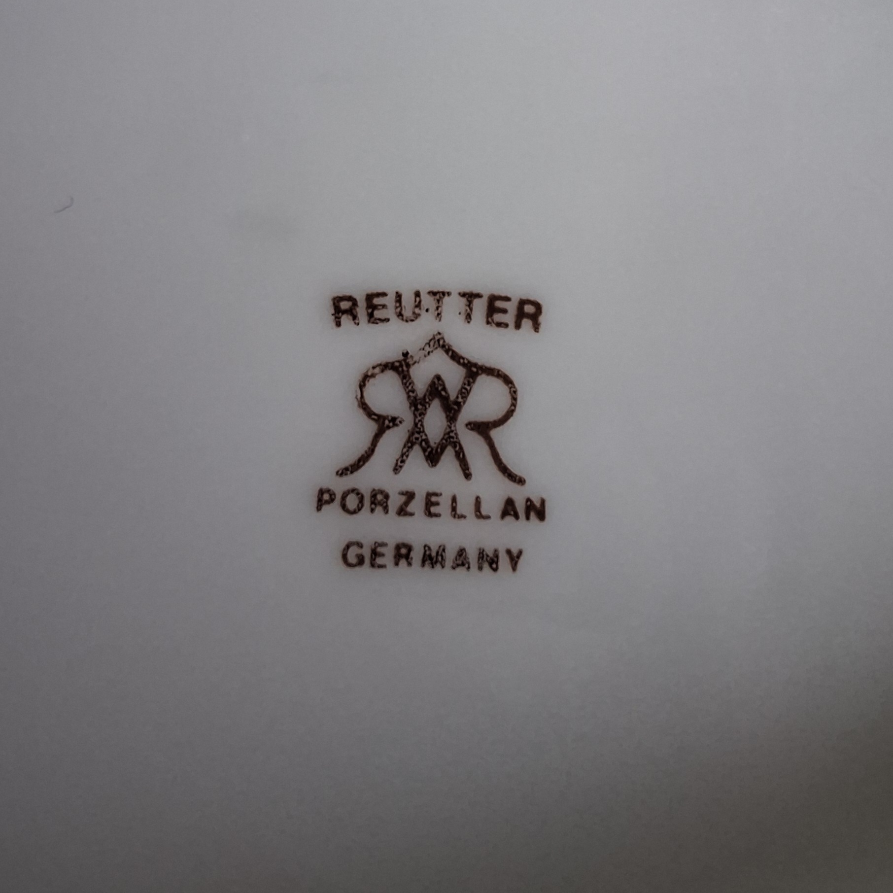 Der Porzellanstempel auf der Innenseite des Porzellandeckels, wurde im Jahr 1954 von Marta Reutter entworfen. Er besteht aus den Buchstaben "M" und "W" und einem gespiegelten "R", stellvertretend für Martl und Willy Reutter, den Gründern der Manufaktur.