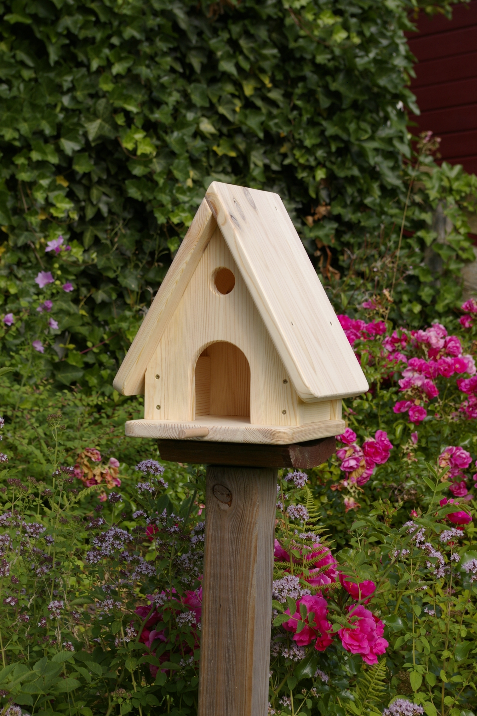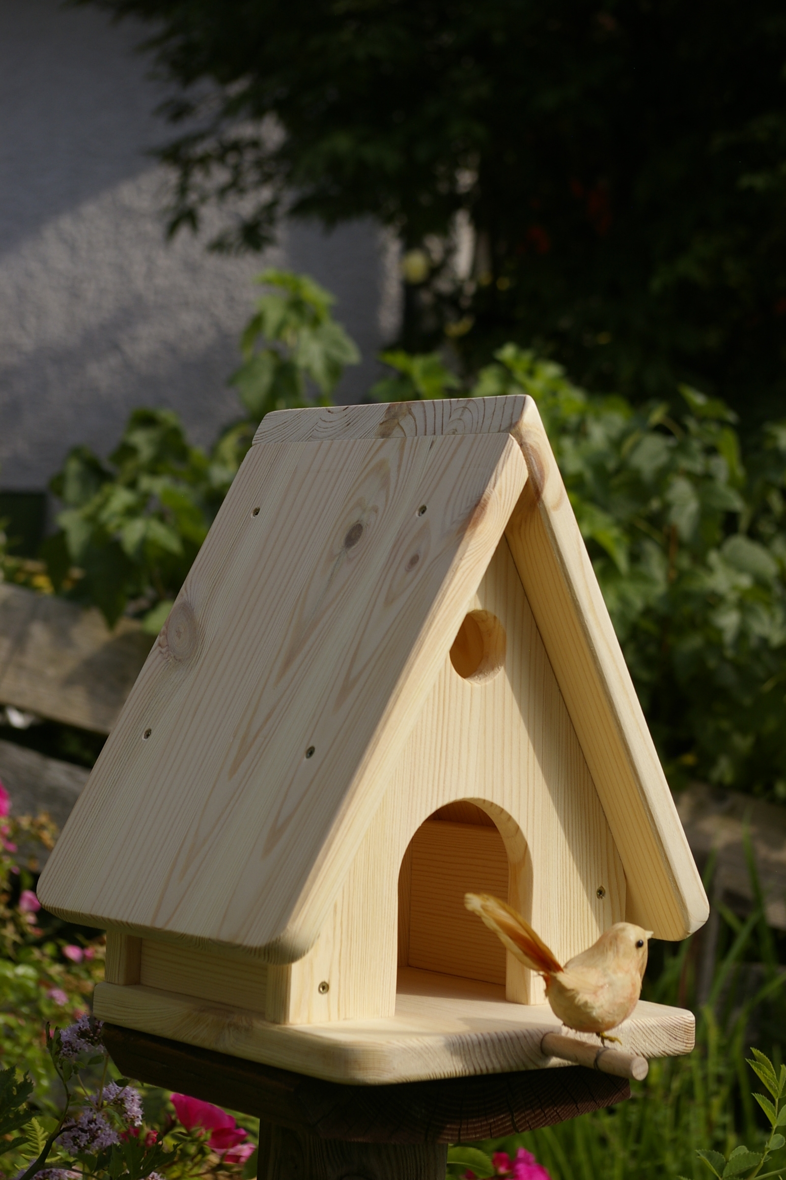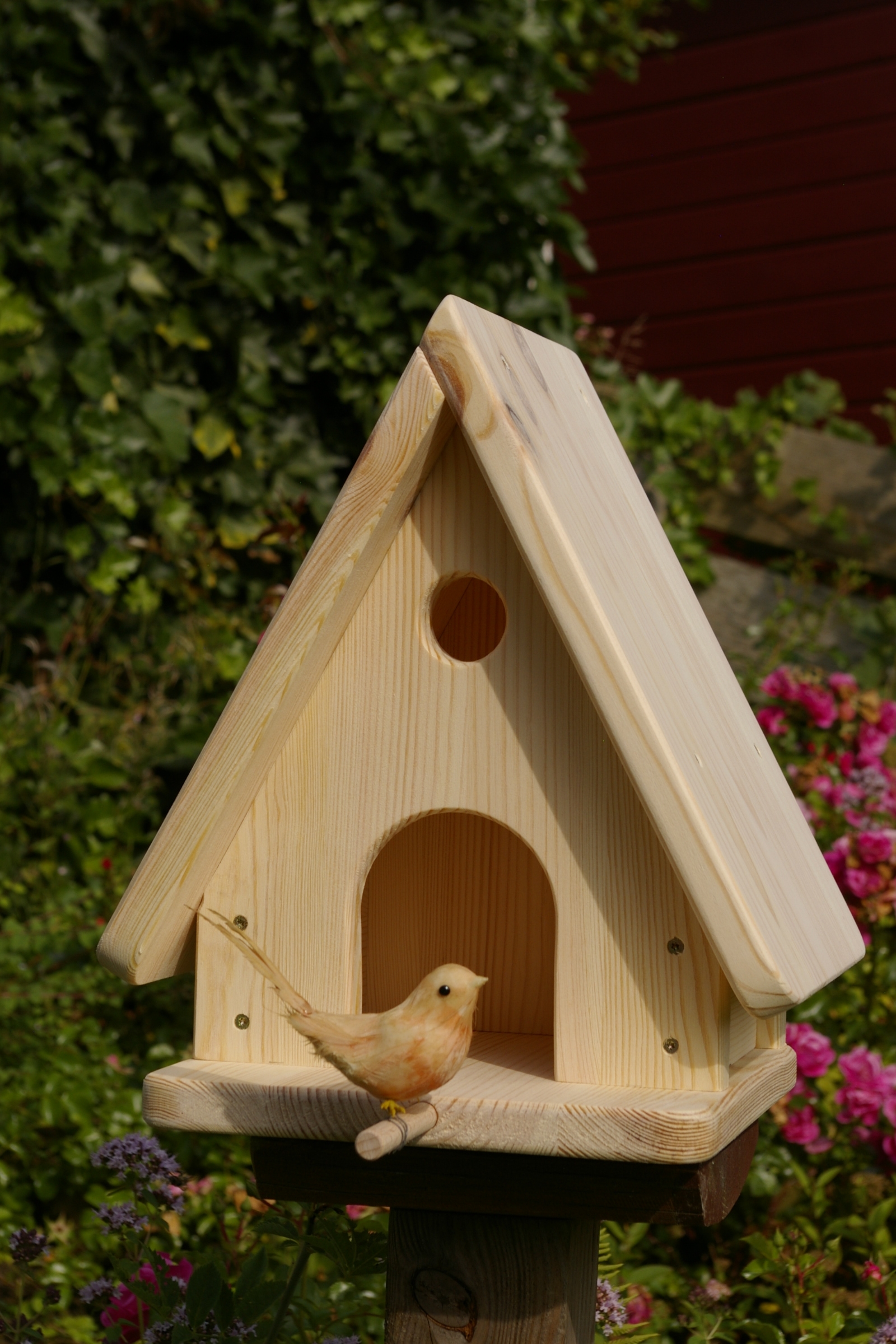 Vogelhaus wird komplett montiert und unbemalt versendet.