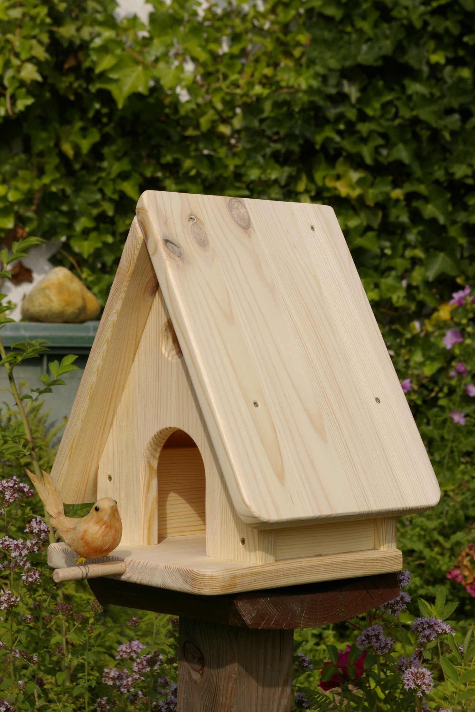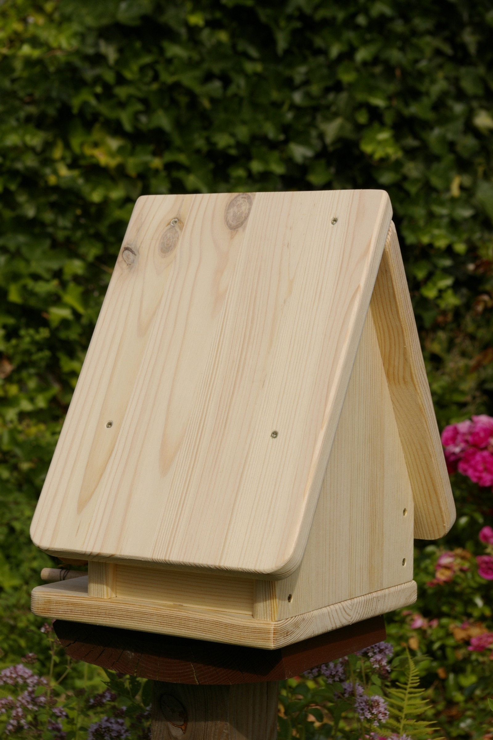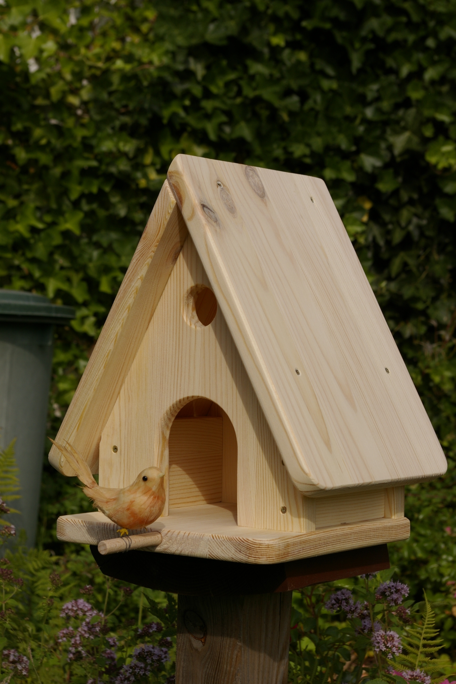 Vogelhaus wird komplett montiert und unbemalt versendet.