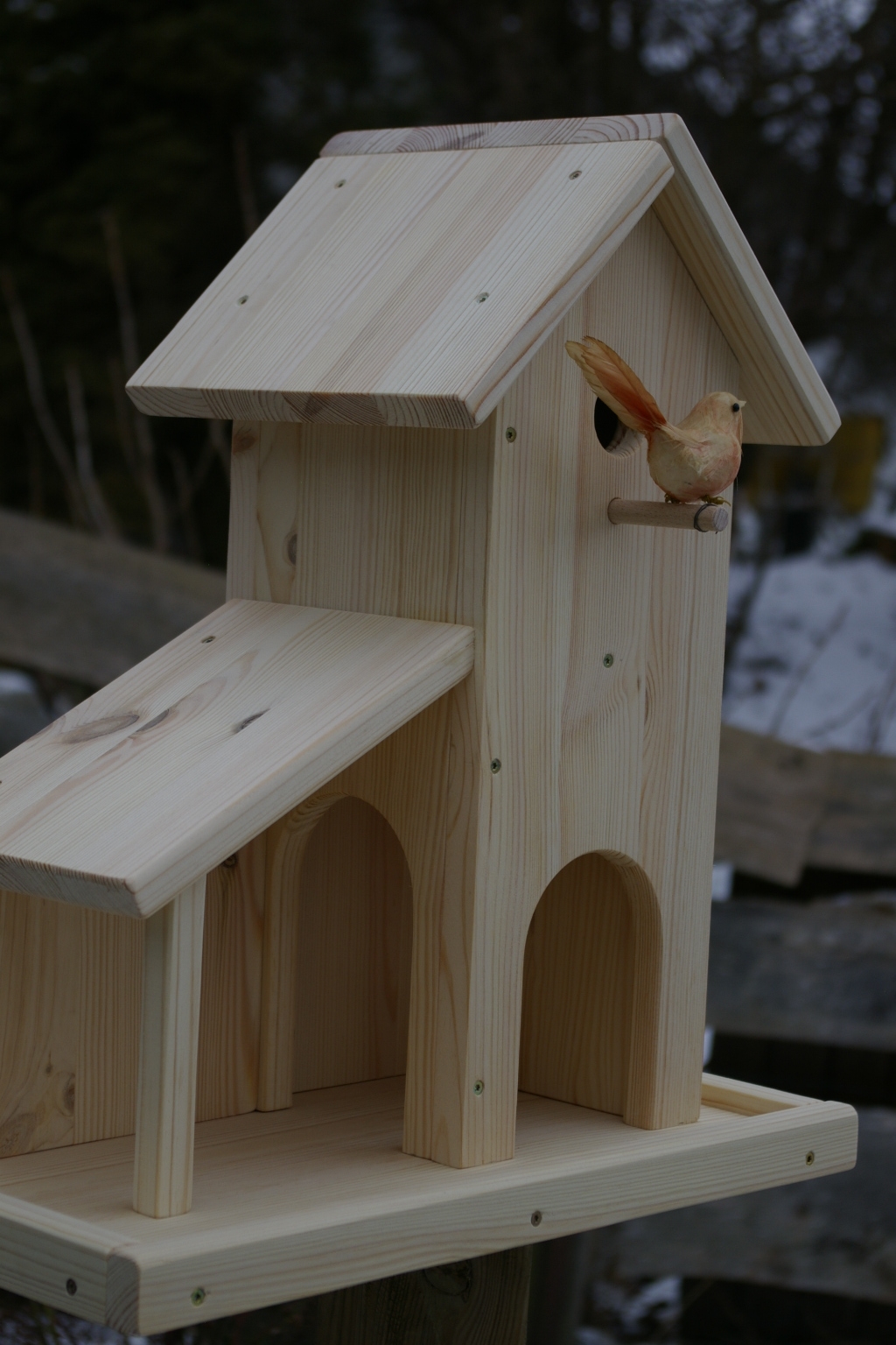 - Vogelhaus wird komplett montiert und unbemalt versendet.