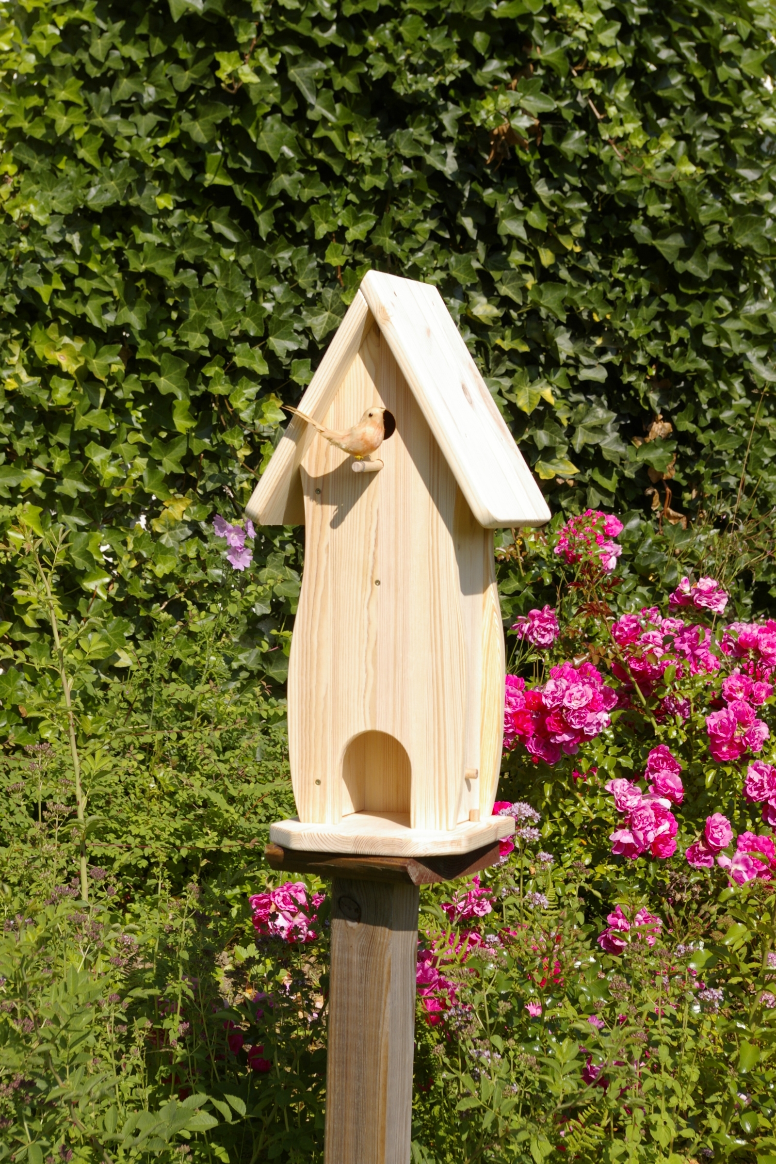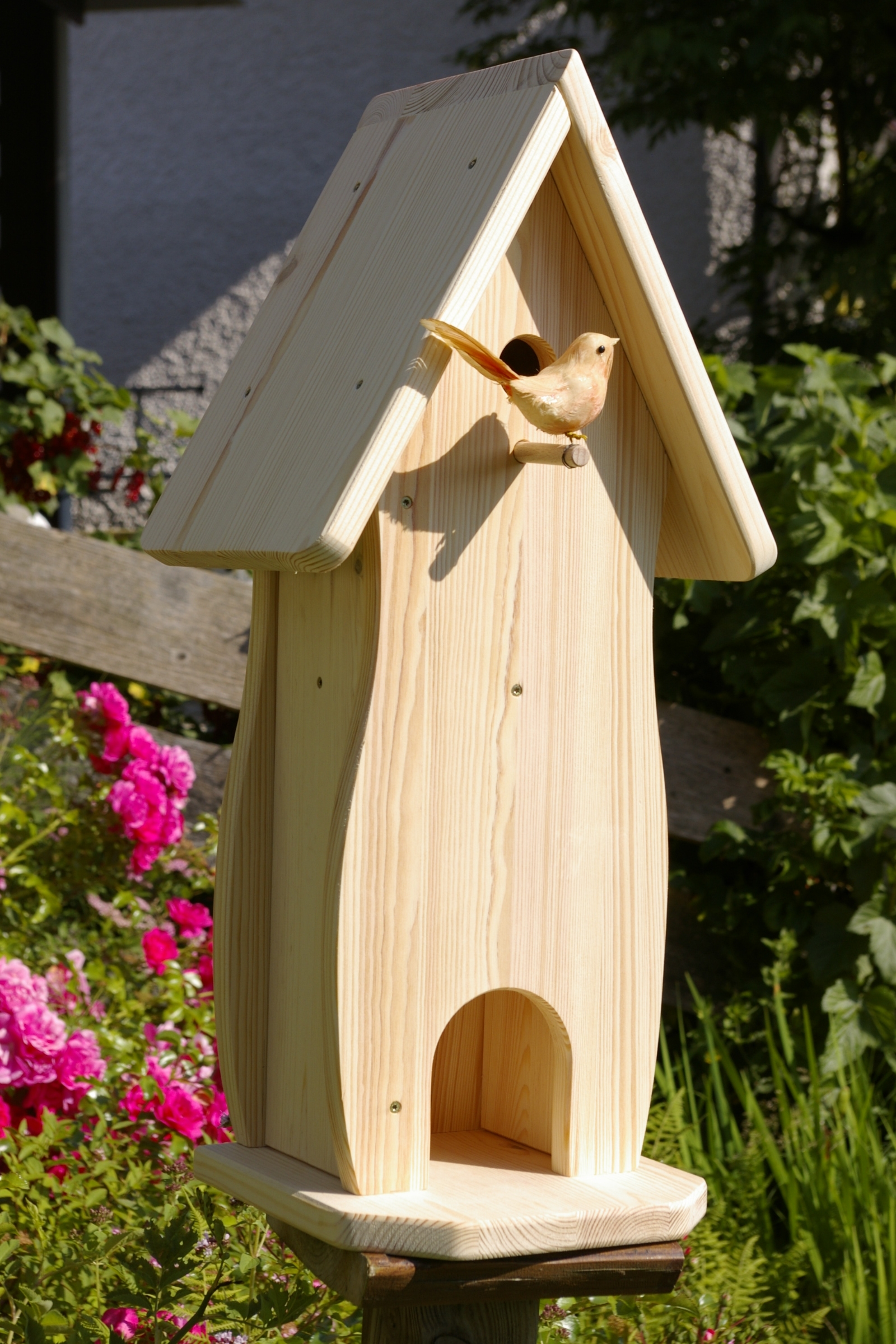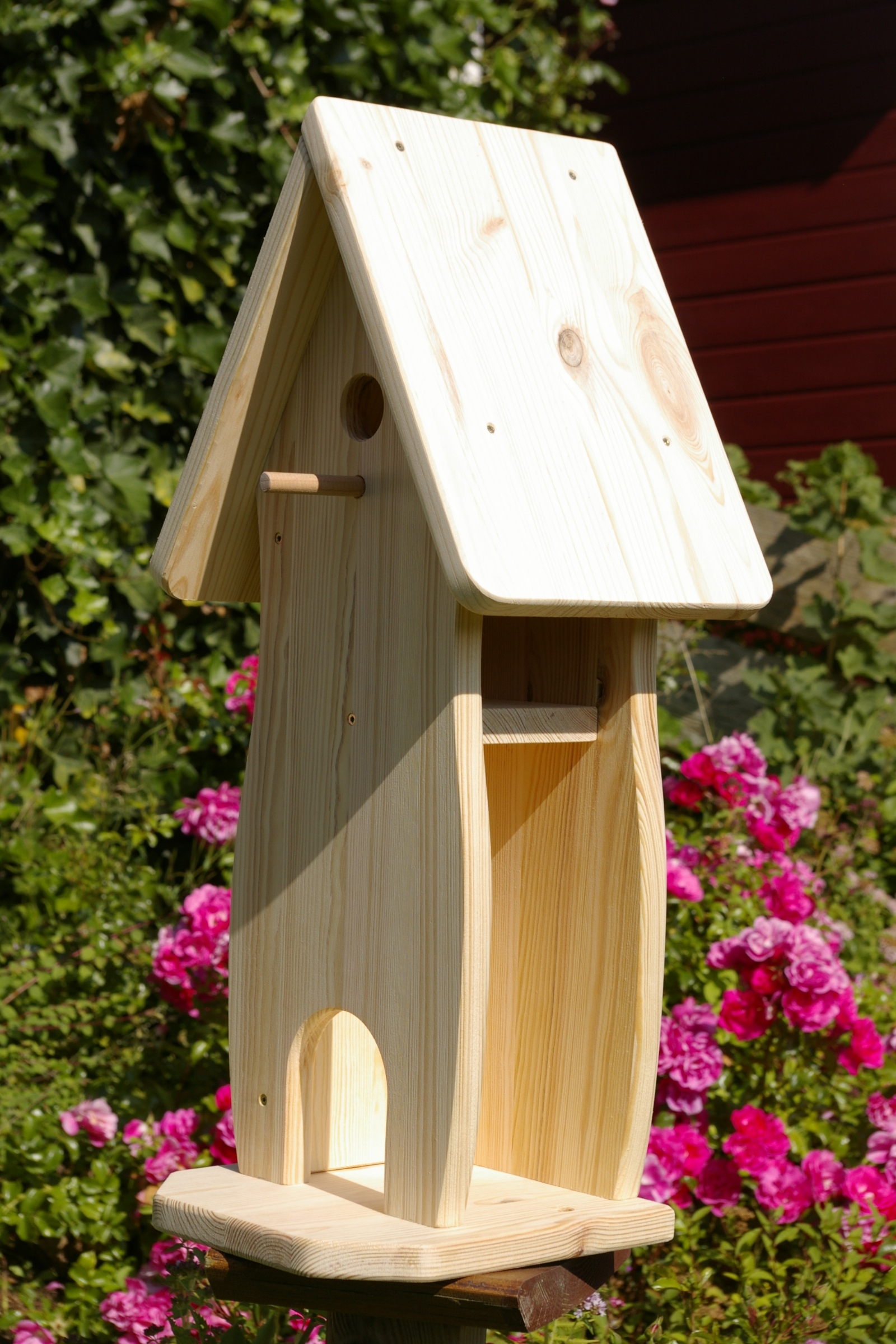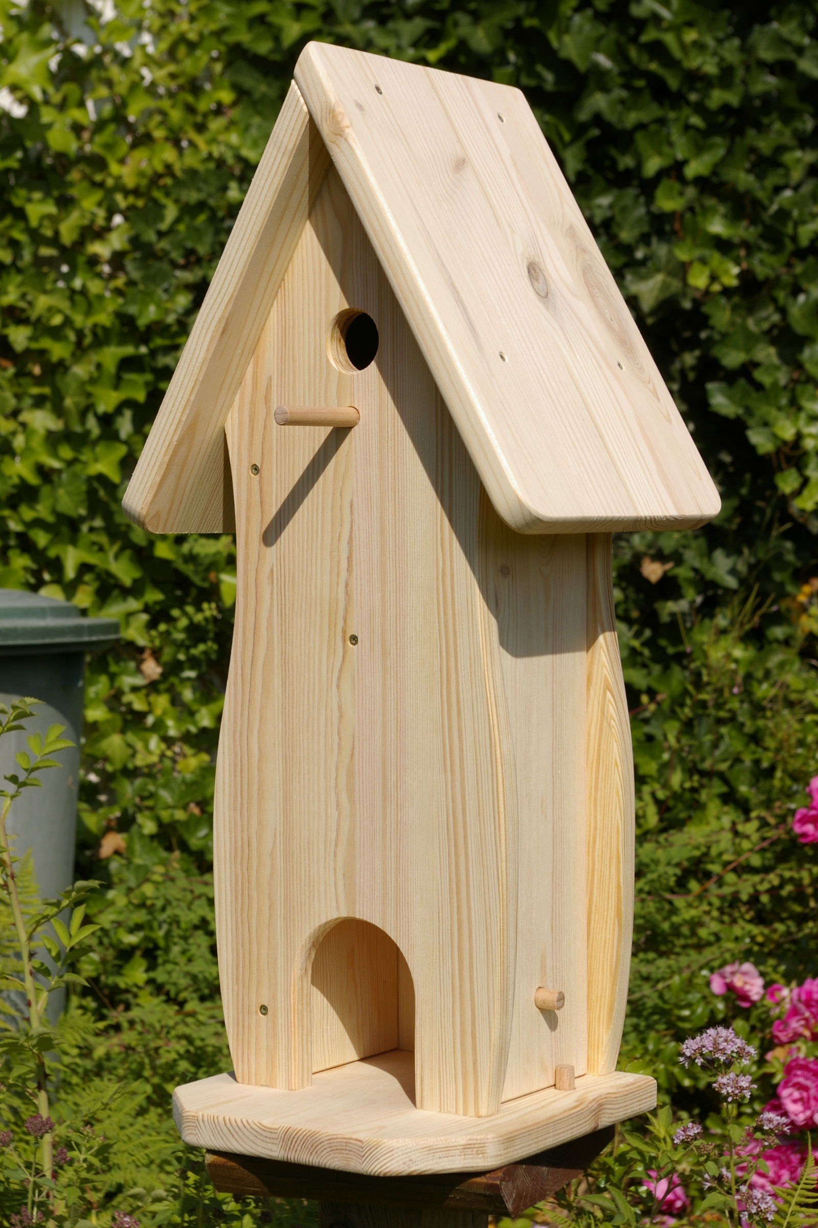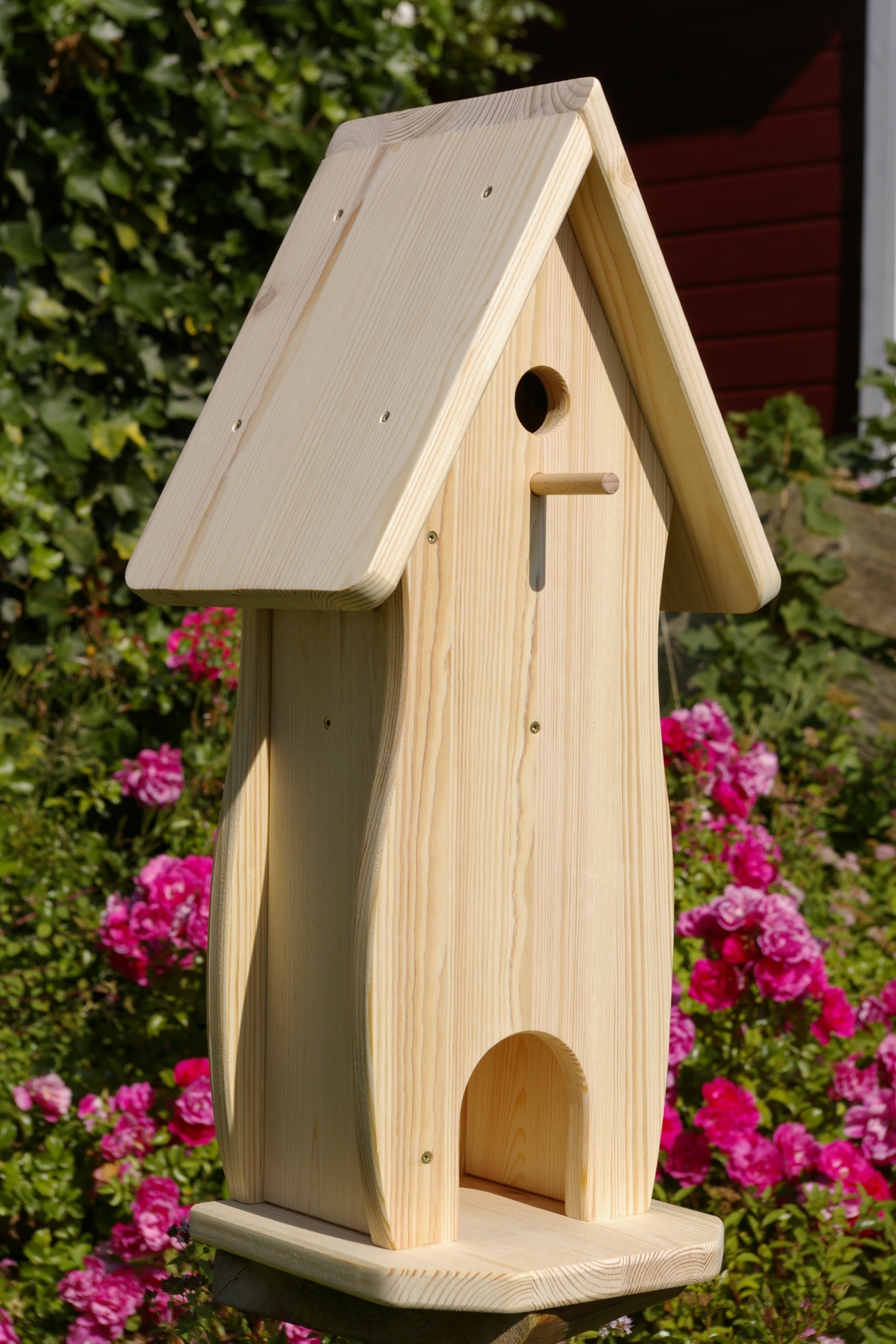 - Vogelhaus wird komplett montiert und unbemalt versendet.