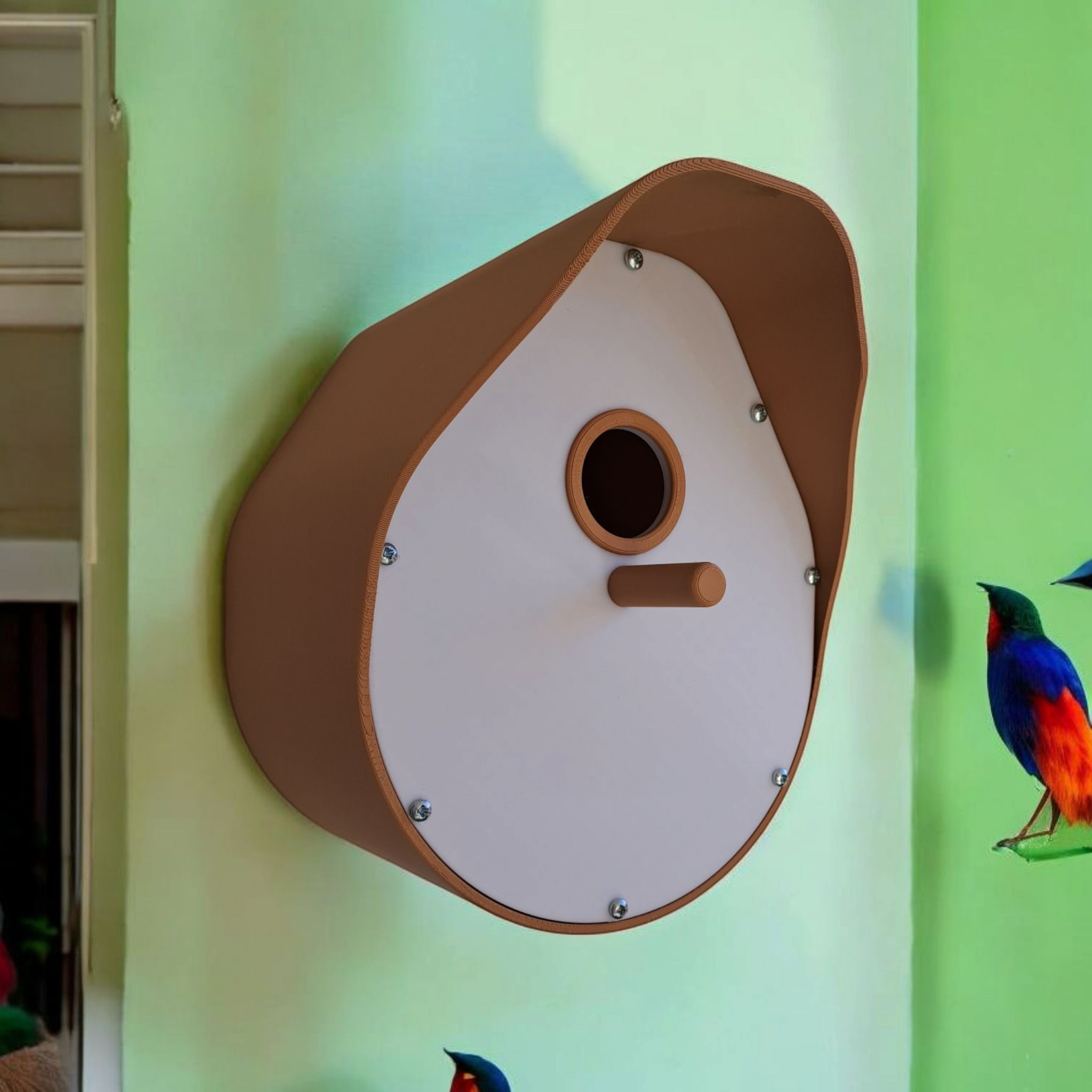 Im Frühling kommen die Vögel, und suchen sich ein geeingnetes Haus zum Brüten. Mit seinem eleganten, gebogenen Dach und der robusten Frontplatte bietet es Vögeln einen sicheren und gemütlichen Unterschlupf, egal ob sie einen Nistplatz oder einfach nur einen kühlen Rückzugsort vor dem Regen suchen. Intelligentes Entwässerungs#@$% – Hält das Nest an Regentagen trocken. Sicher und komfortabel – Ein 32 mm großes Einflugloch eignet sich für viele gängige Vogelarten, und die kleine Sitzstange bietet ihnen einen perfekten Platz zum Ausruhen unter einem kleinen Dach für zusätzlichen Schutz.