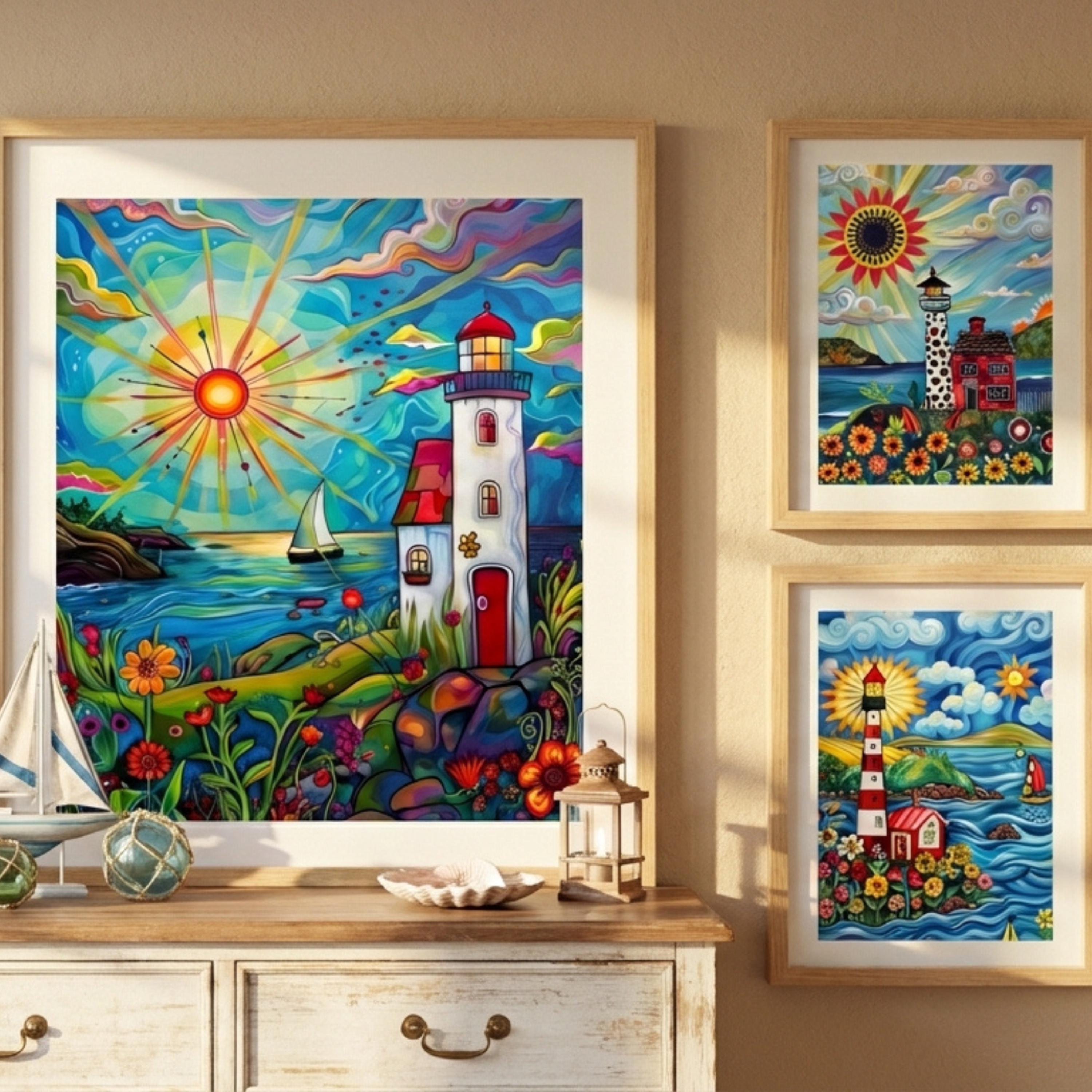 Stil & Wirkung • Maritime Wanddeko • Sommerliche Farbexplosion • Leuchtturm Kunst • Küstenliebe für dein Zuhause • Ideal für Wohnzimmer, Flur oder Ferienwohnung