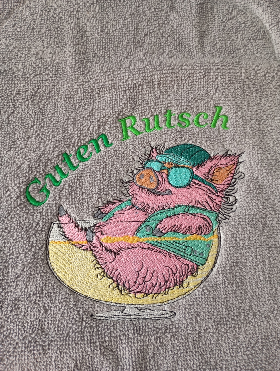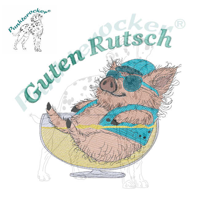 Vollstickdatei - Relax-Rudi wünscht "Guten Rutsch" - 15.26 x 14.50 cm
