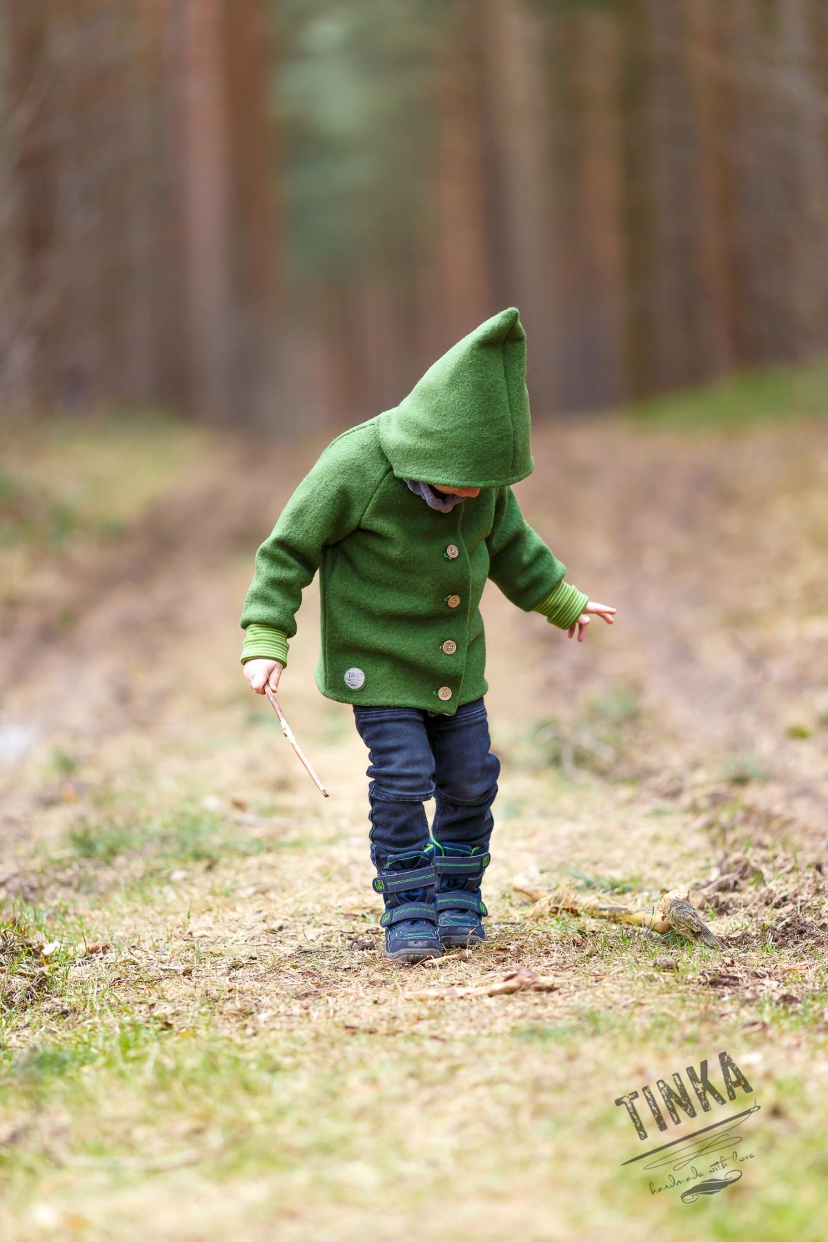 Genähte Jacke / Mantel mit Zipfelkapuze in Gr. 86/92.