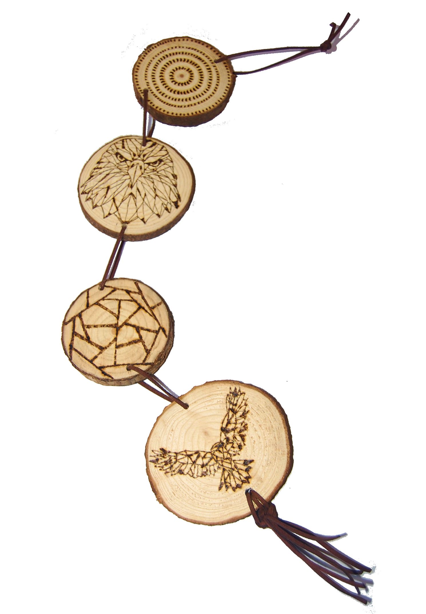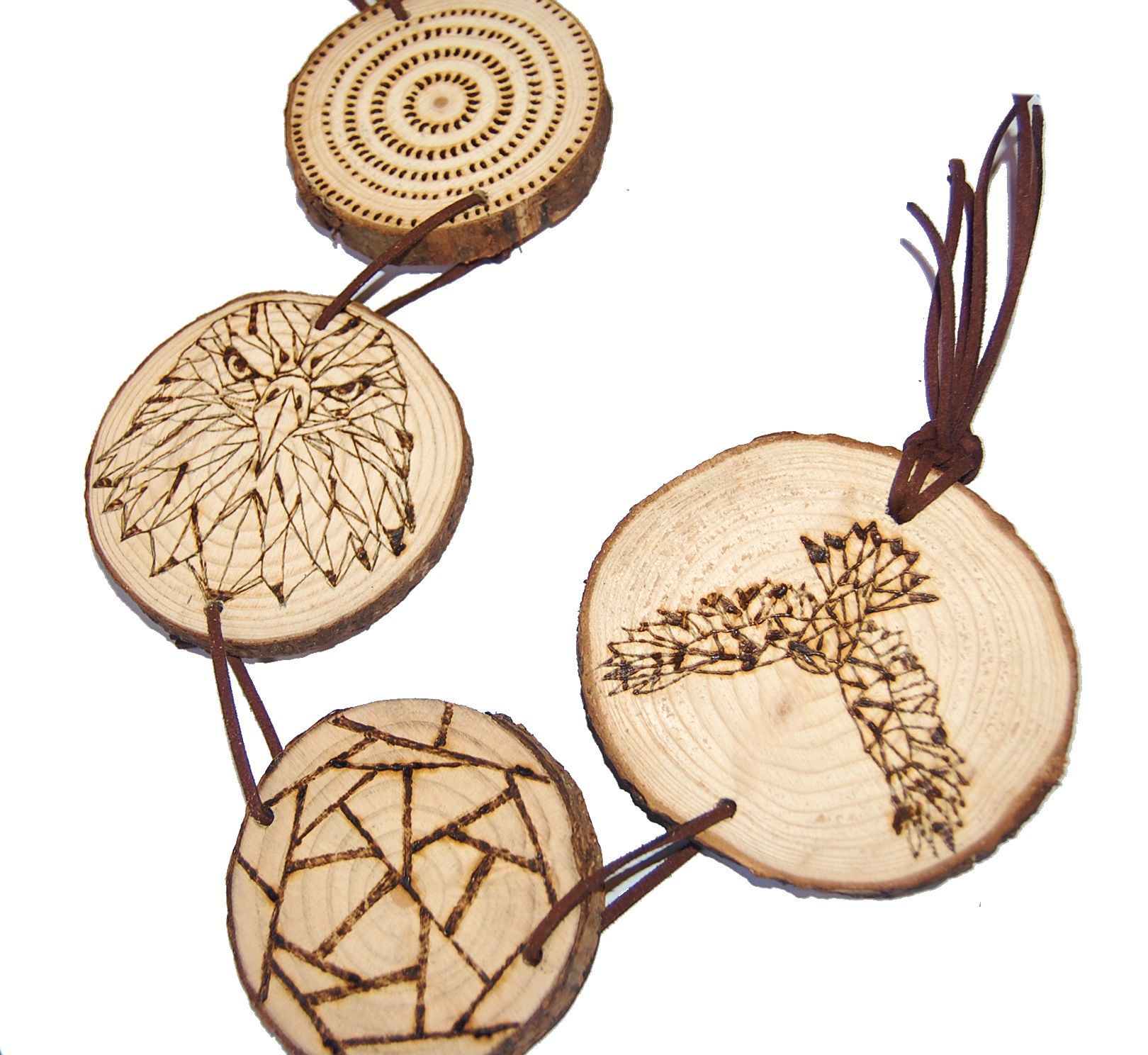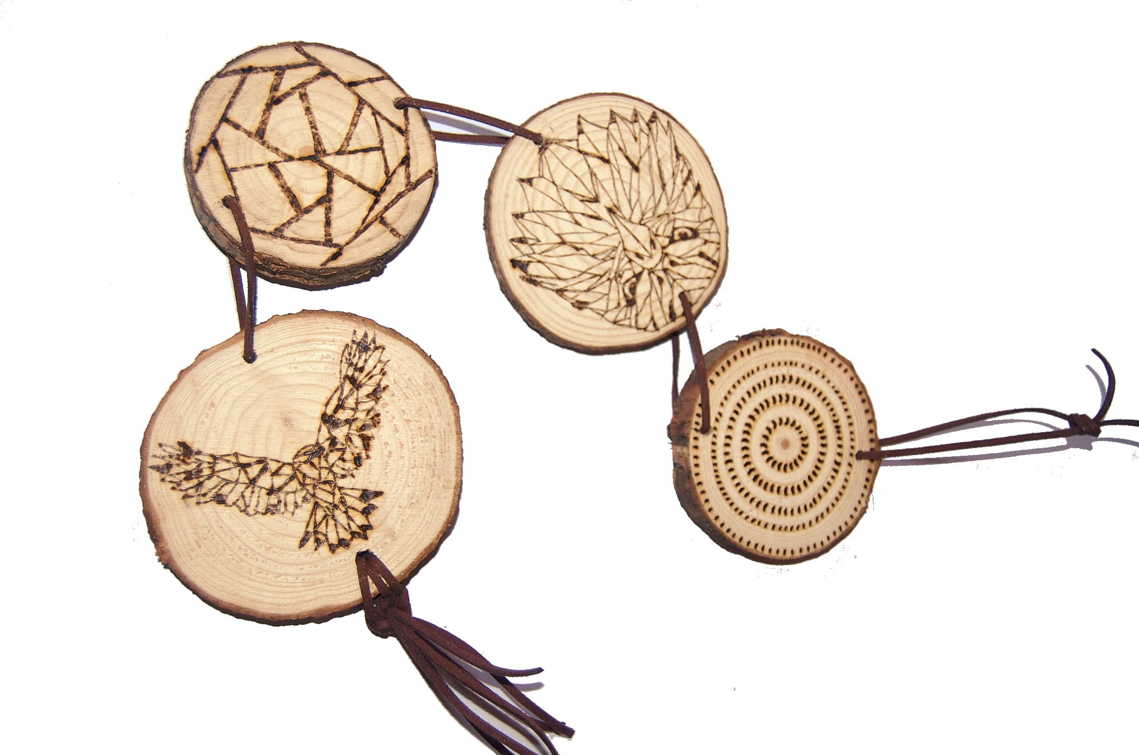 - Ein handgefertigtes Unikat, das durch Brandmalerei auf Kiefer Holz Scheiben gefertigt wurde