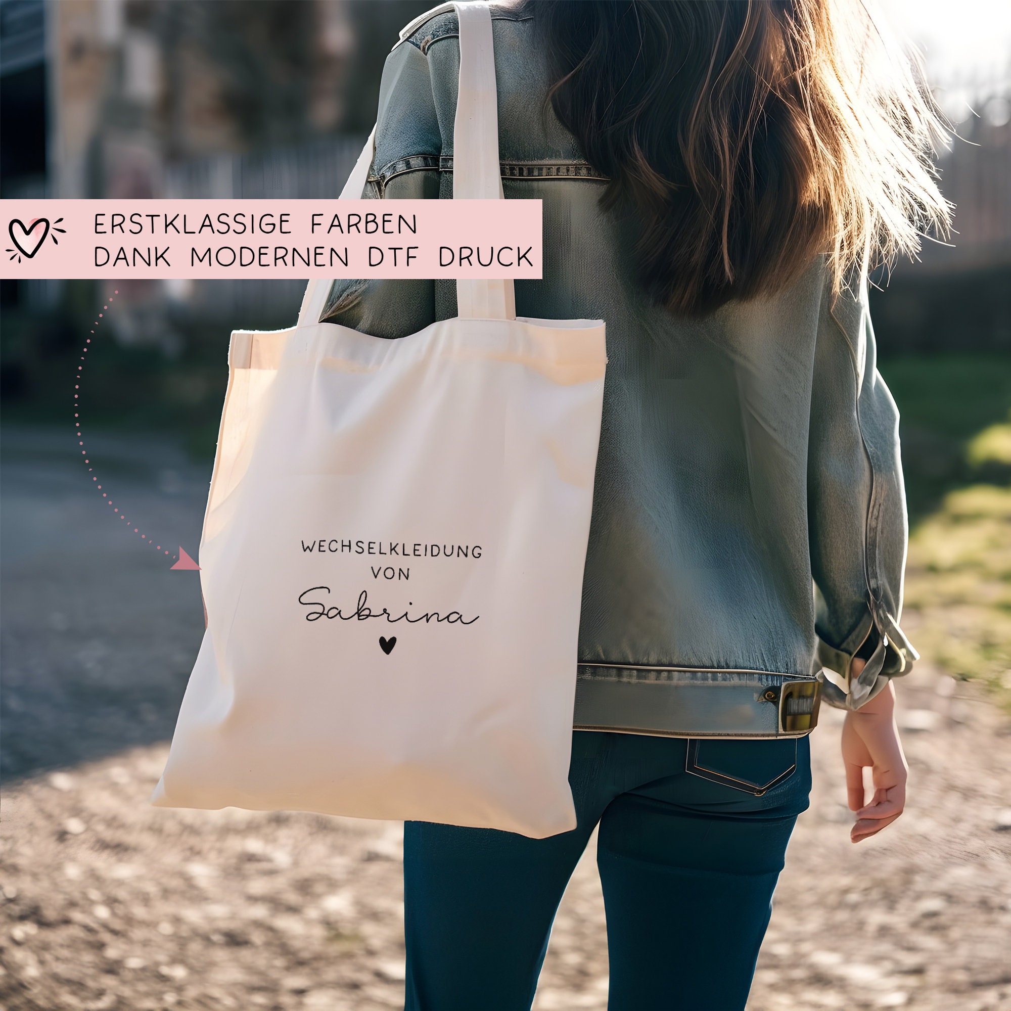 Hochwertiger Druck: Das Motiv "Wechselkleidung von" wird mittels hochwertiger DTF-Folie auf die Tasche aufgebracht. Das Resultat ist ein langlebiges, leuchtendes Design, das alle Blicke auf sich zieht.