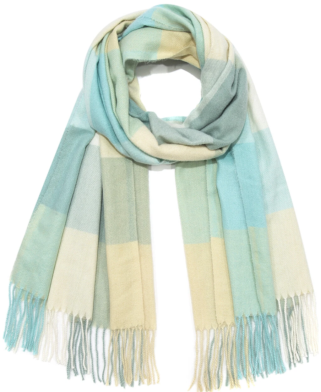 Sie kaufen 1 weichen Karo-Strick-Schal für Damen/Herren mit Fransen, neu und ungetragen in der Originalverpackung. Farbe: mint-gelb - Maß: ca 200 x 70 cm inclusive Fransen, klassischer Stil, mit Karo-Muster - ein idealer Begleiter für alle Gelegenheiten!