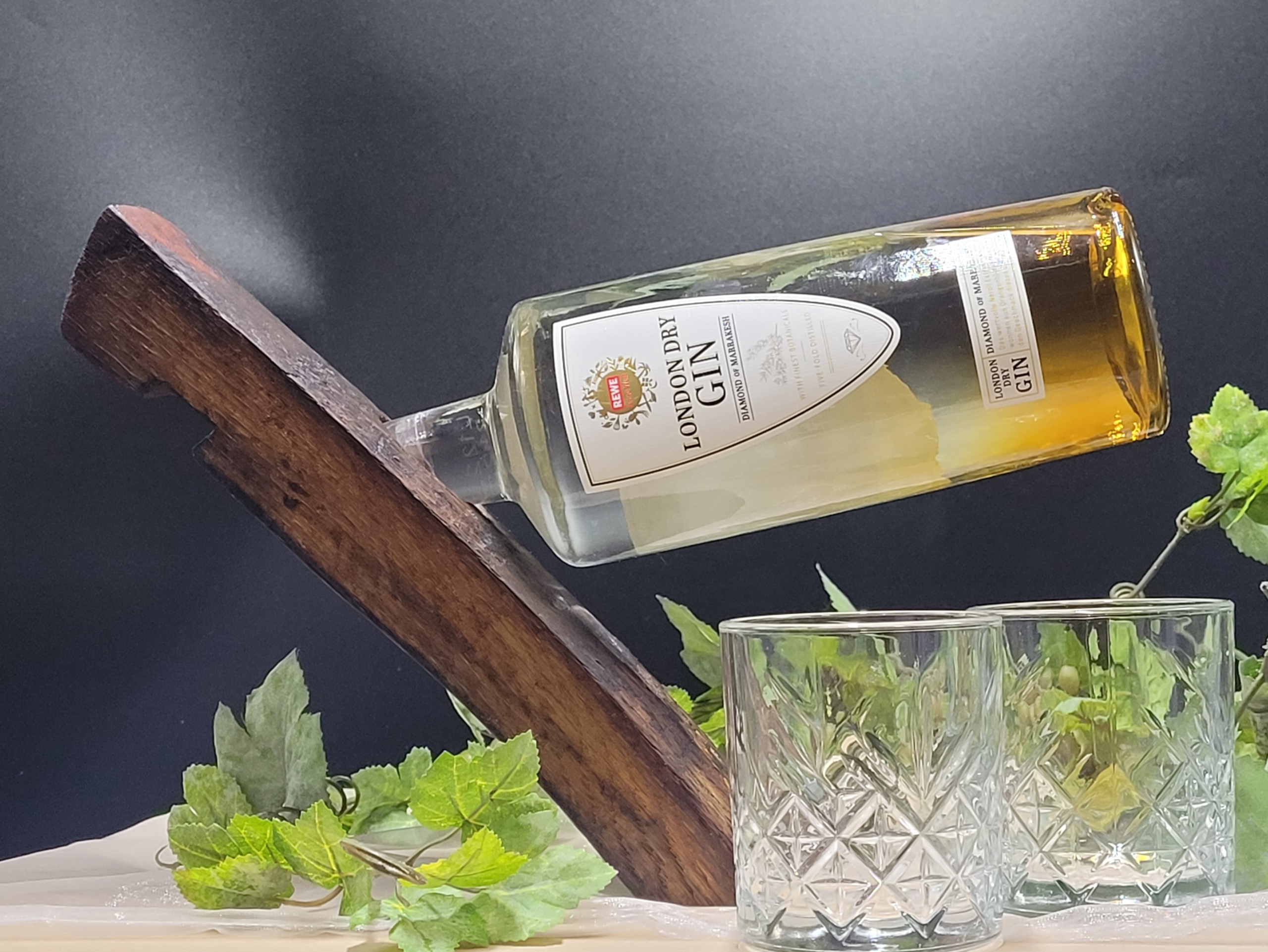 Der Halter ist perfekt für Wein-, Schnaps- oder Wiskyflaschen geeignet.