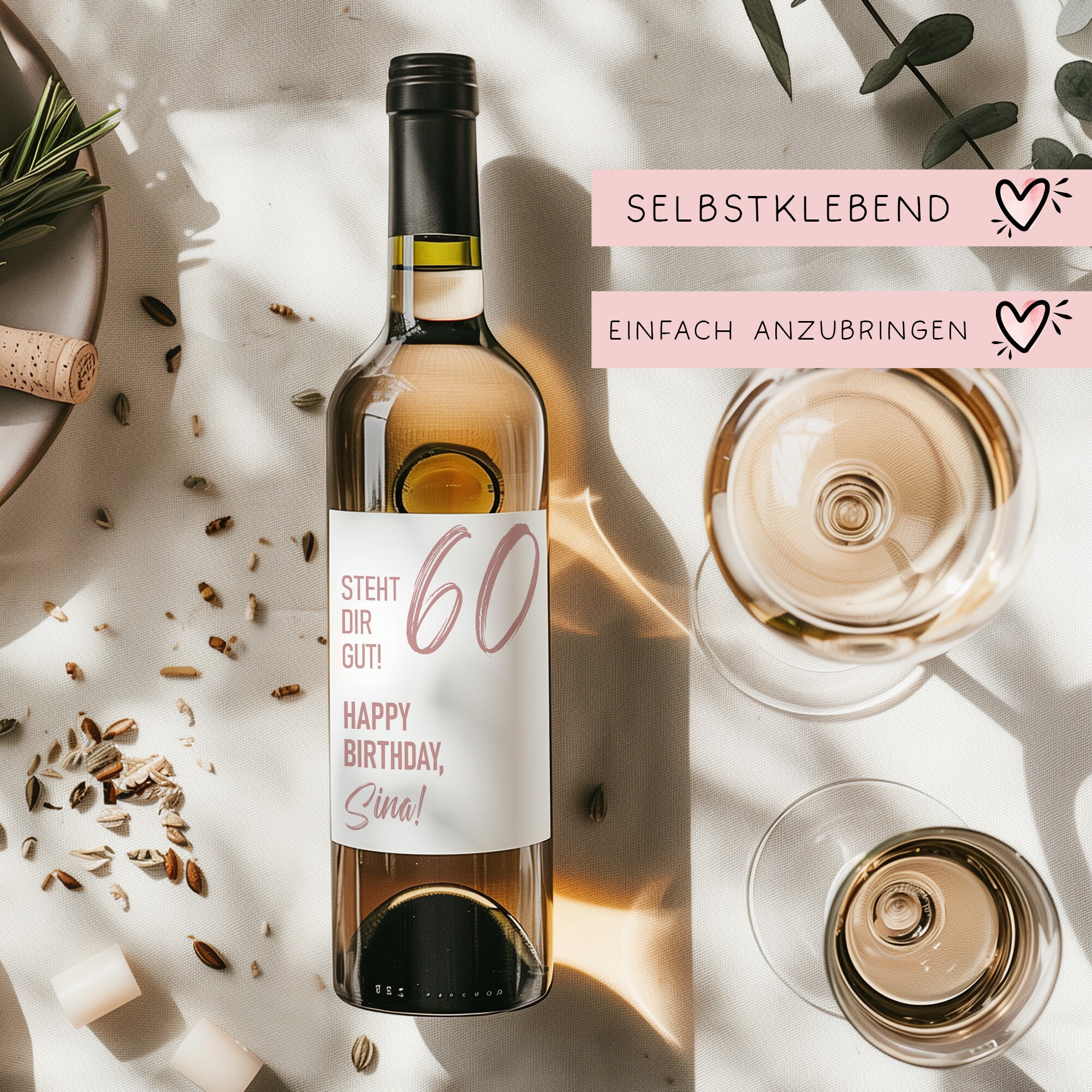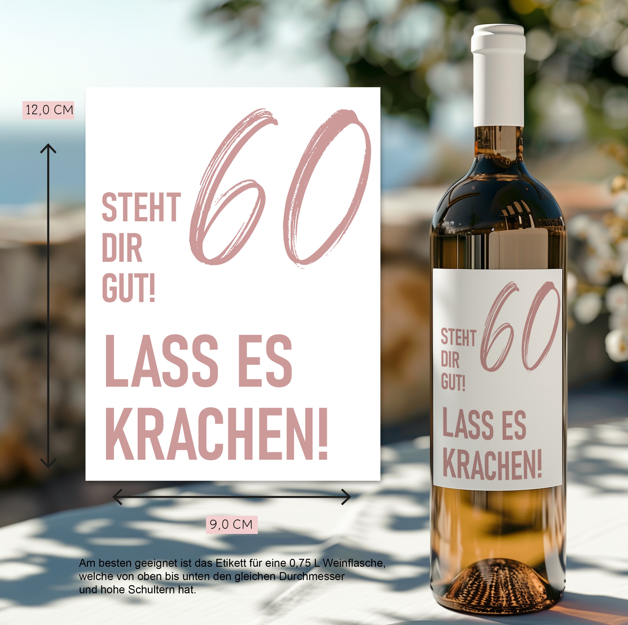 Dieses Weinetikett ist das perfekte Geschenk für runde Geburtstage wie den 20., 30., 40., 50. oder 60. Geburtstag. Hergestellt aus hochwertigem, selbstklebendem Papier, lässt sich das Etikett einfach auf jede handelsübliche Weinflasche anbringen.