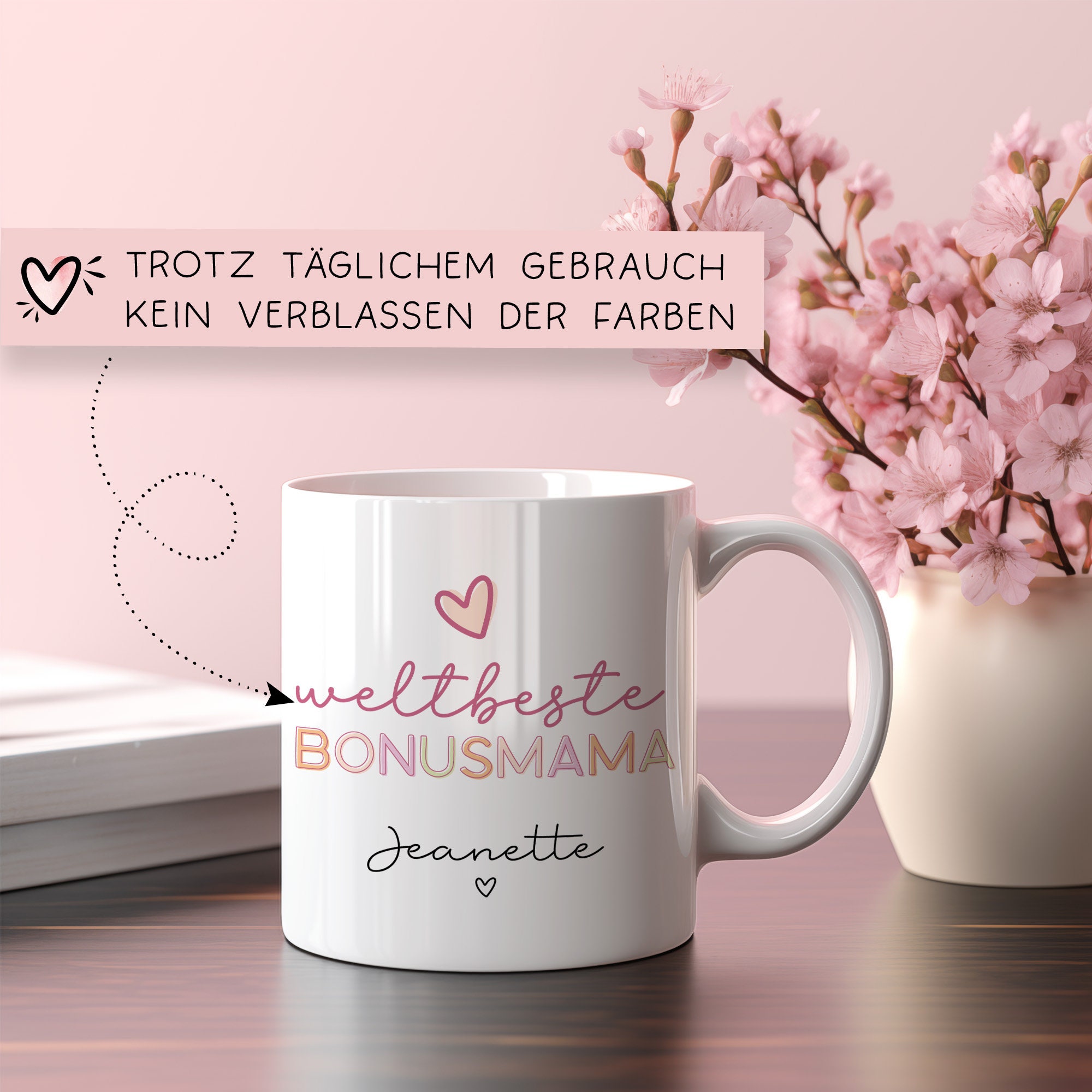 Eine personalisierte Tasse ist das ideale Geschenk für deine Weltbeste Bonusmama, Freundin, Hebamme, Mama, Oma, Schwägerin, Schwester, Tante, Trauzeugin zu ihrem Geburtstag, zu Weihnachten, zu Ostern oder Weihnachten. Warum nicht mal eine kleine Geste der Wertschätzung zeigen, anstatt wie gewohnt Blumen oder Süßigkeiten zu verschenken?