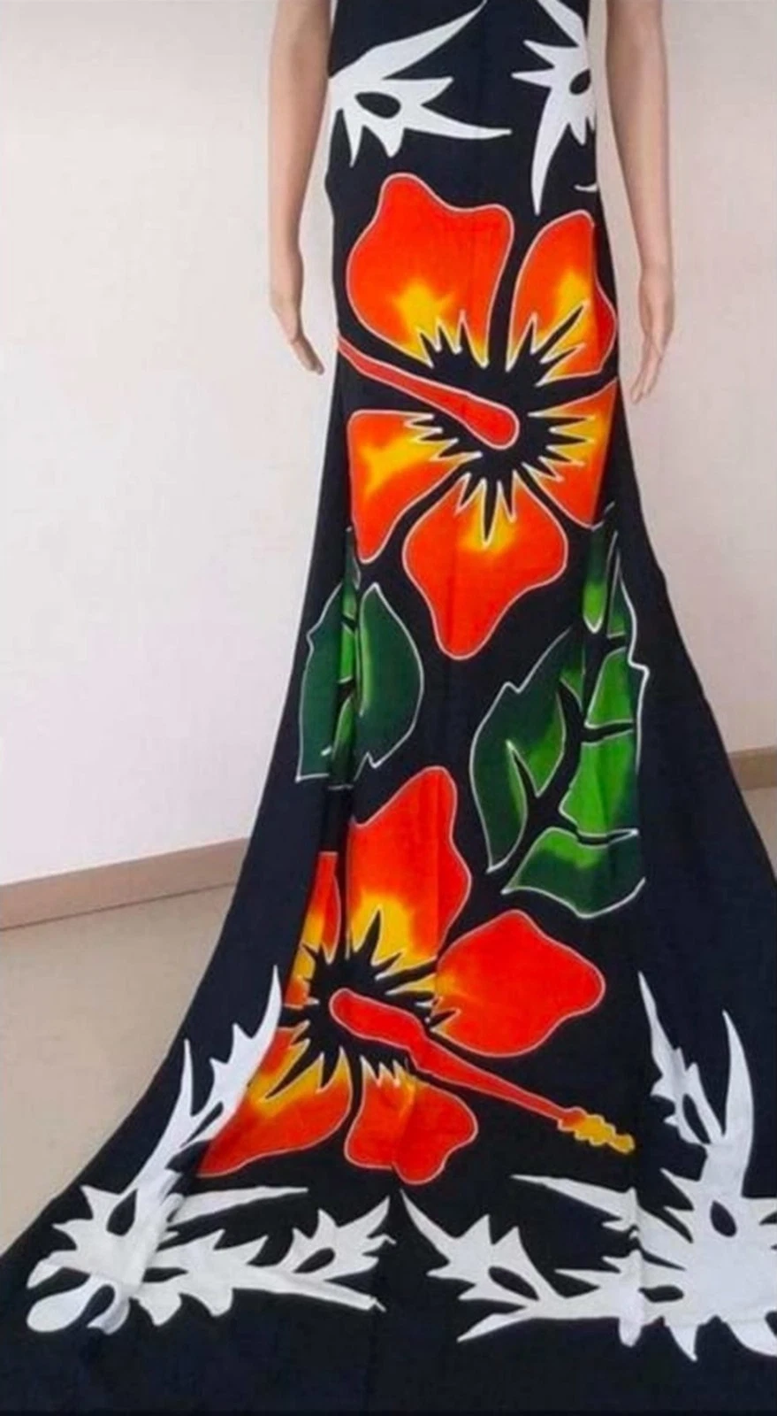 Sie kaufen 1 Damen-Wickelrock, handbemalt, mit Sarong-Schnalle zum Verschnüren, ohne Fransen, Motiv "Flower-Blumen". Farbe: schwarz mit roten Blumen. Kollektion 2026.