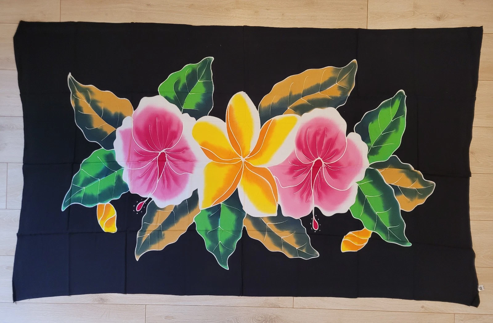 Damen-Kaftan, Handarbeit aus Bali, 110x88 cm, schwarz-bunt