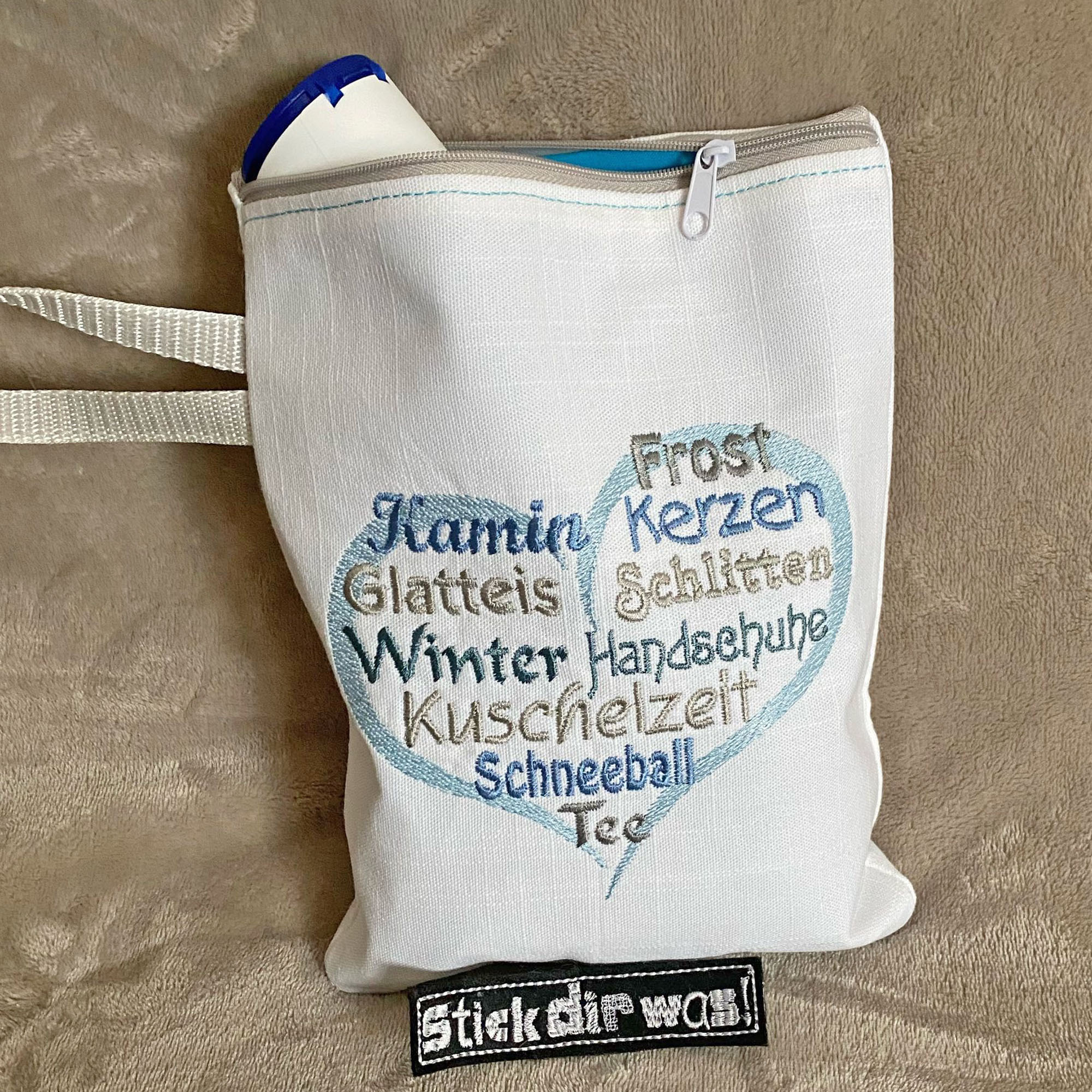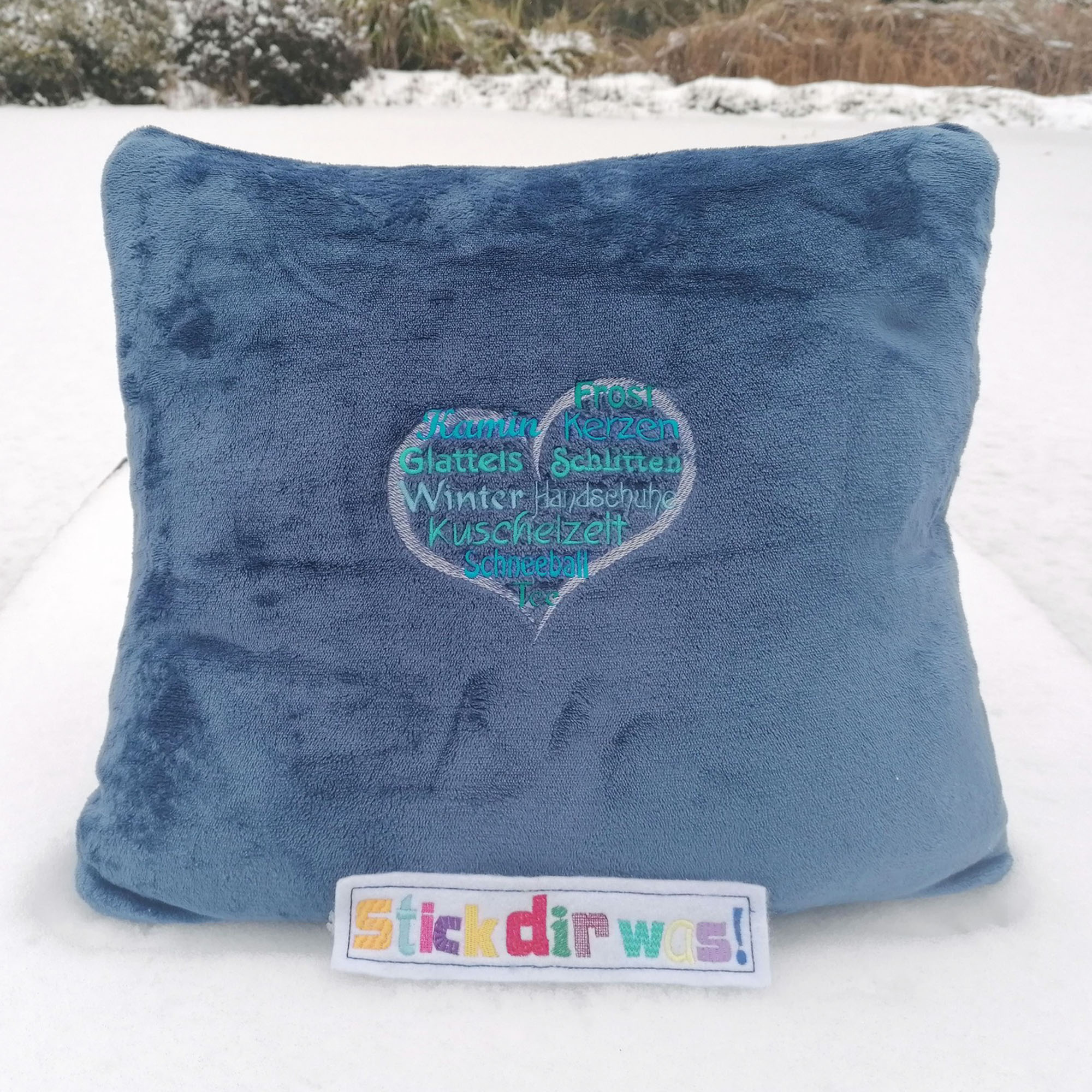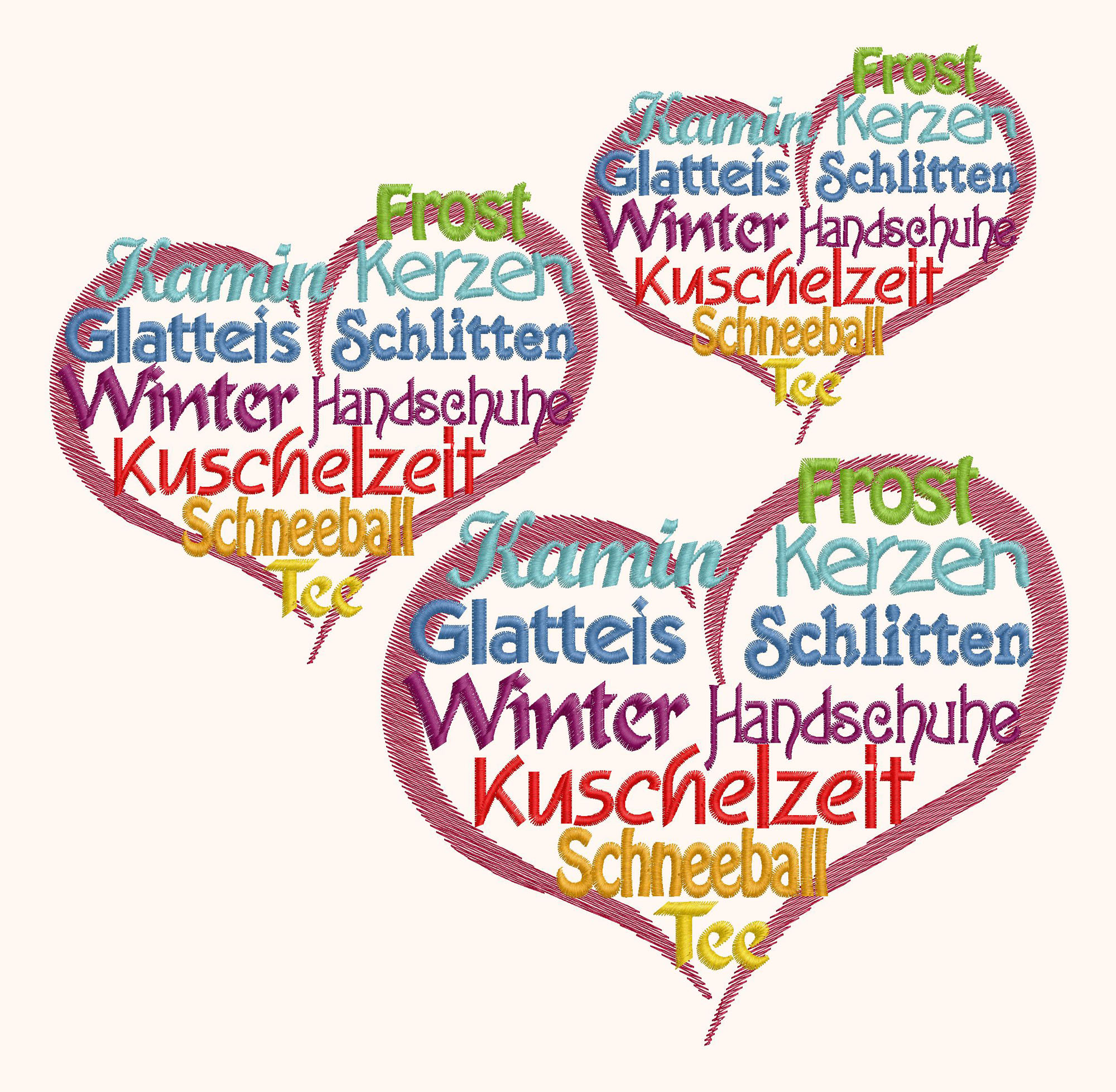 Die Wortwolke Stickdateien "Winterherz" mit verschiedenen Begriffen zur kalten Jahreszeit sind ideal für Accessoires und zum Erstellen von kleinen Geschenken zum Geburtstag, Jubiläum oder einfach mal zum Danke sagen.