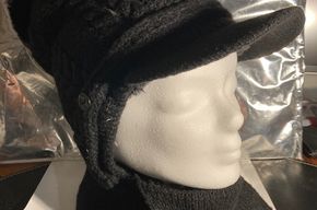 Sie kaufen 1 Damen-Winter-Mütze mit Fleecefutter + Ohrenklappen "3 in 1" - Beanie-Schal-Mützen-Set, neu. Farbe: schwarz. Material: Baumwollmischung / Fleece. Einheitsgröße: Kopfmaß 56 - 59 cm dehnbar. Handwäsche mit 30°.