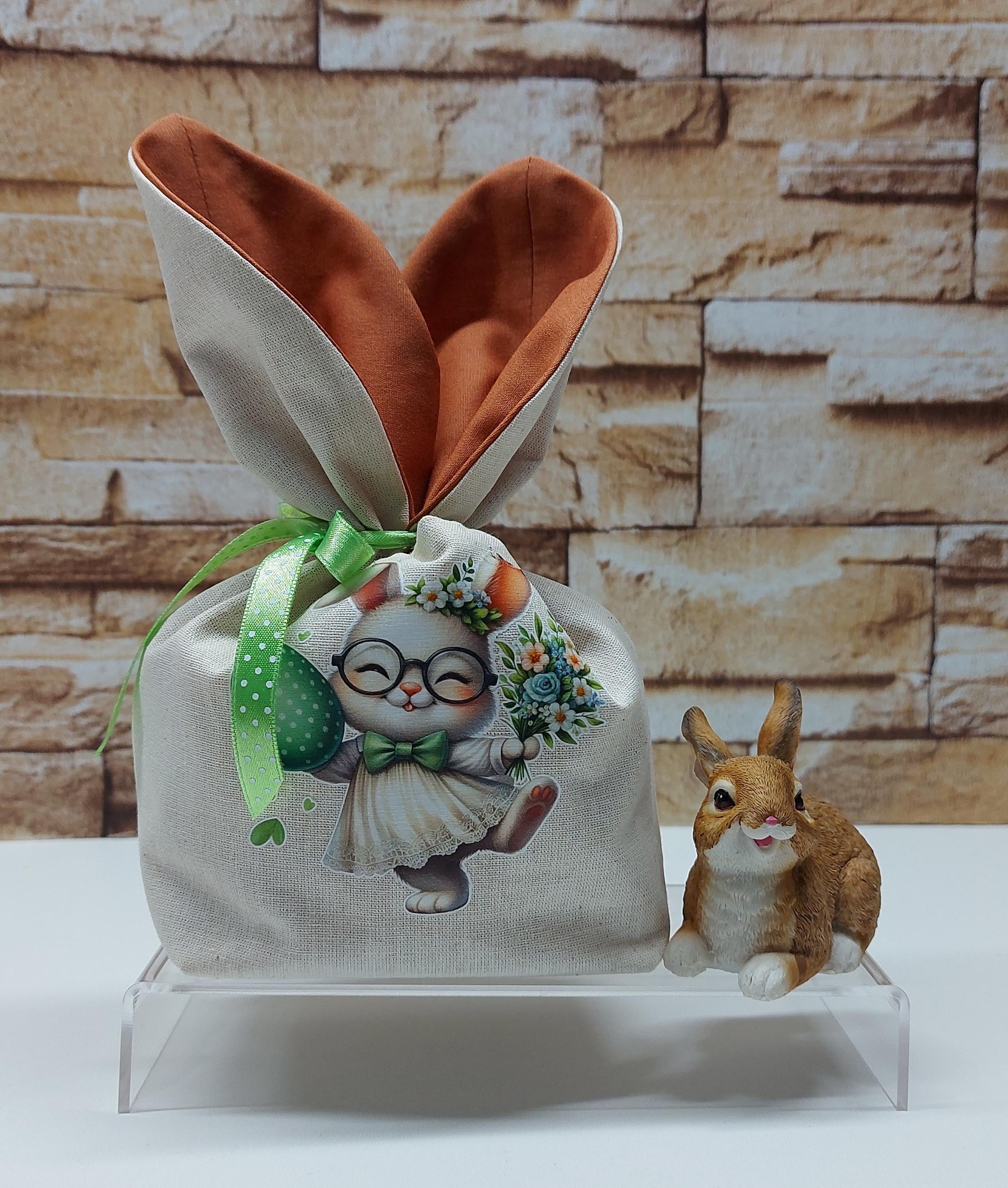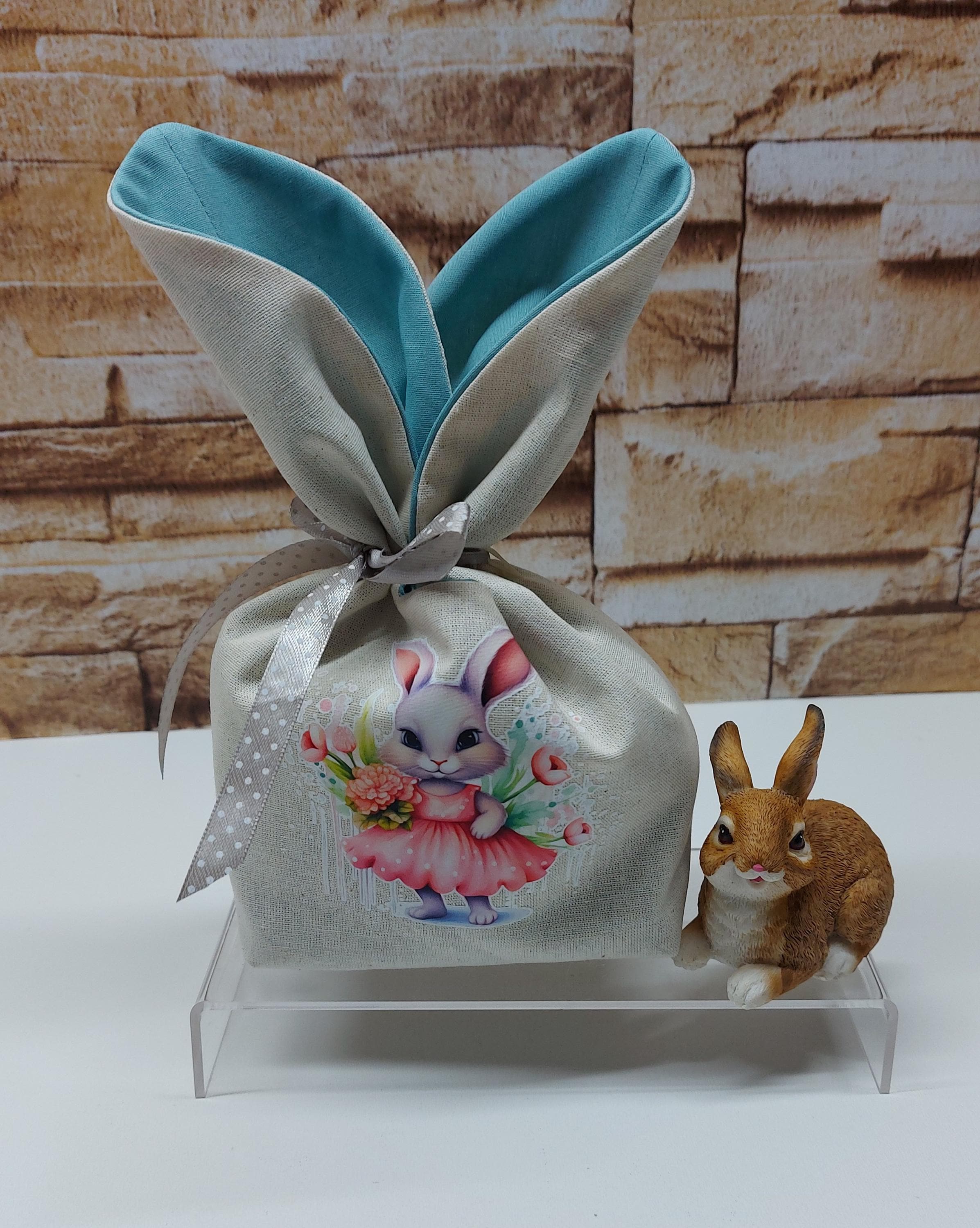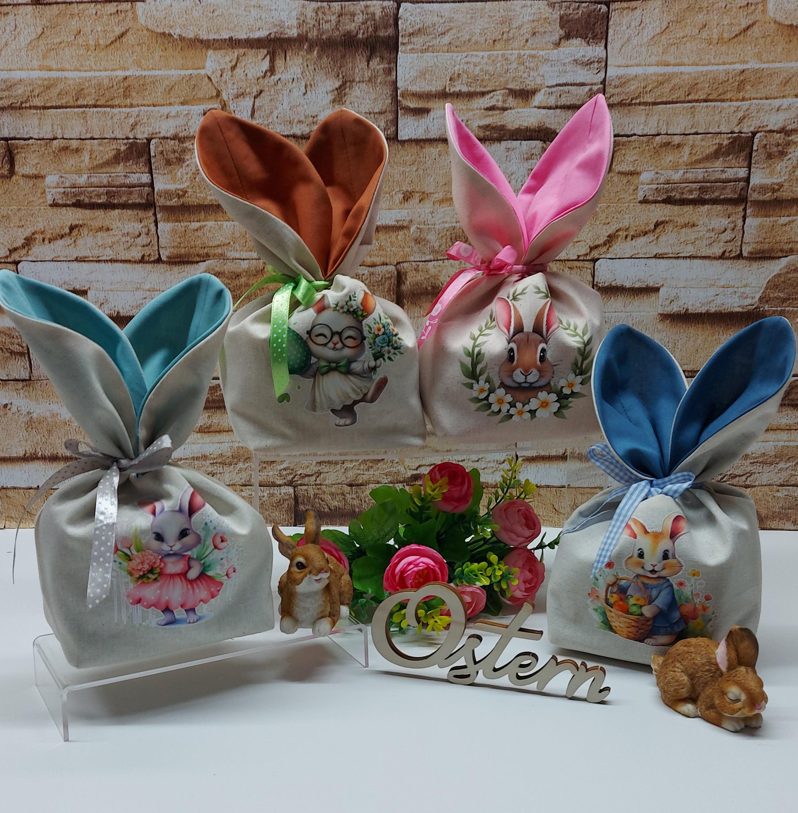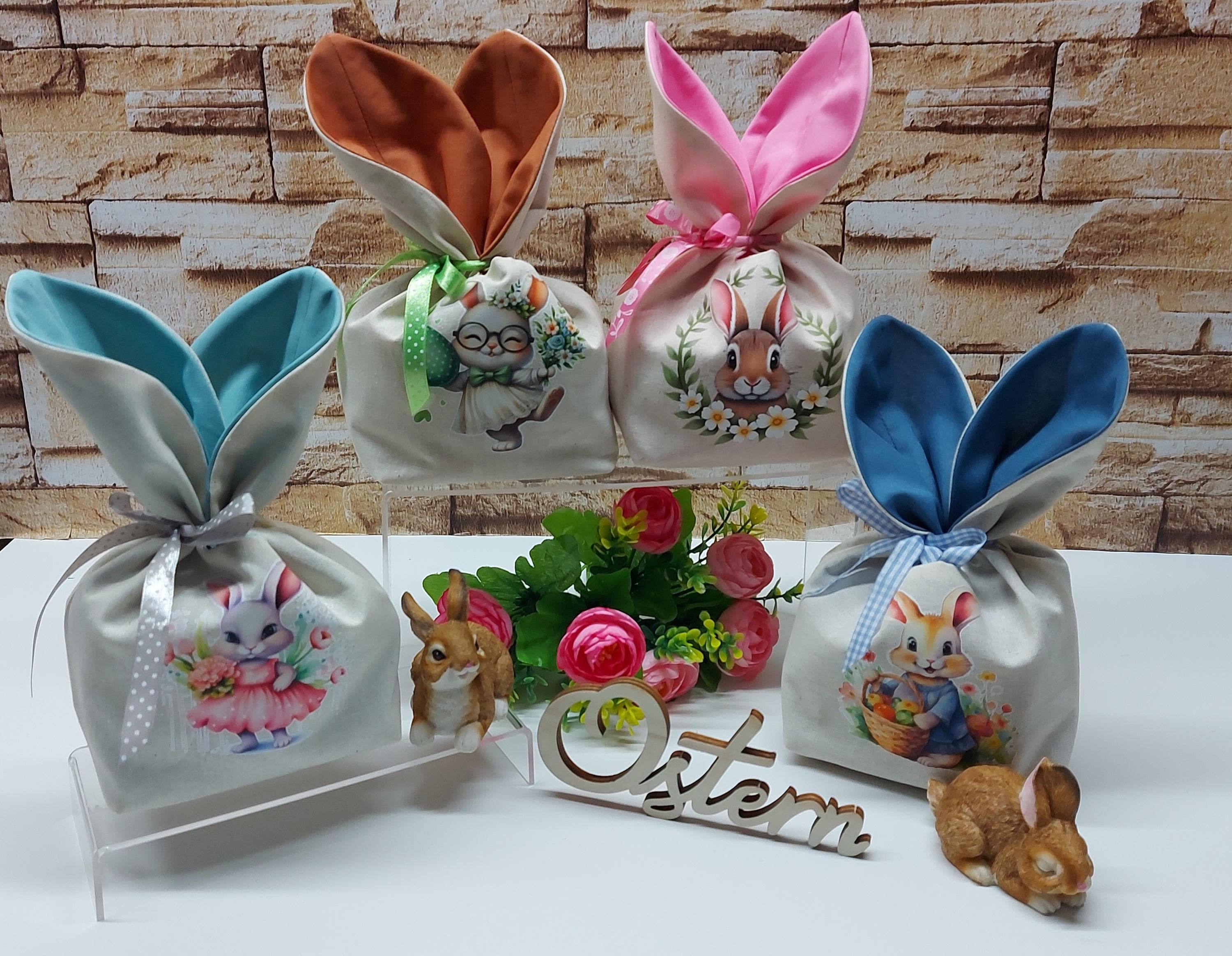 Die Ostersäckchen bestehen aus reinen Baumwollstoffen und sind auf der Vorderseite mit einem hübschen Osterbügelbild versehen.