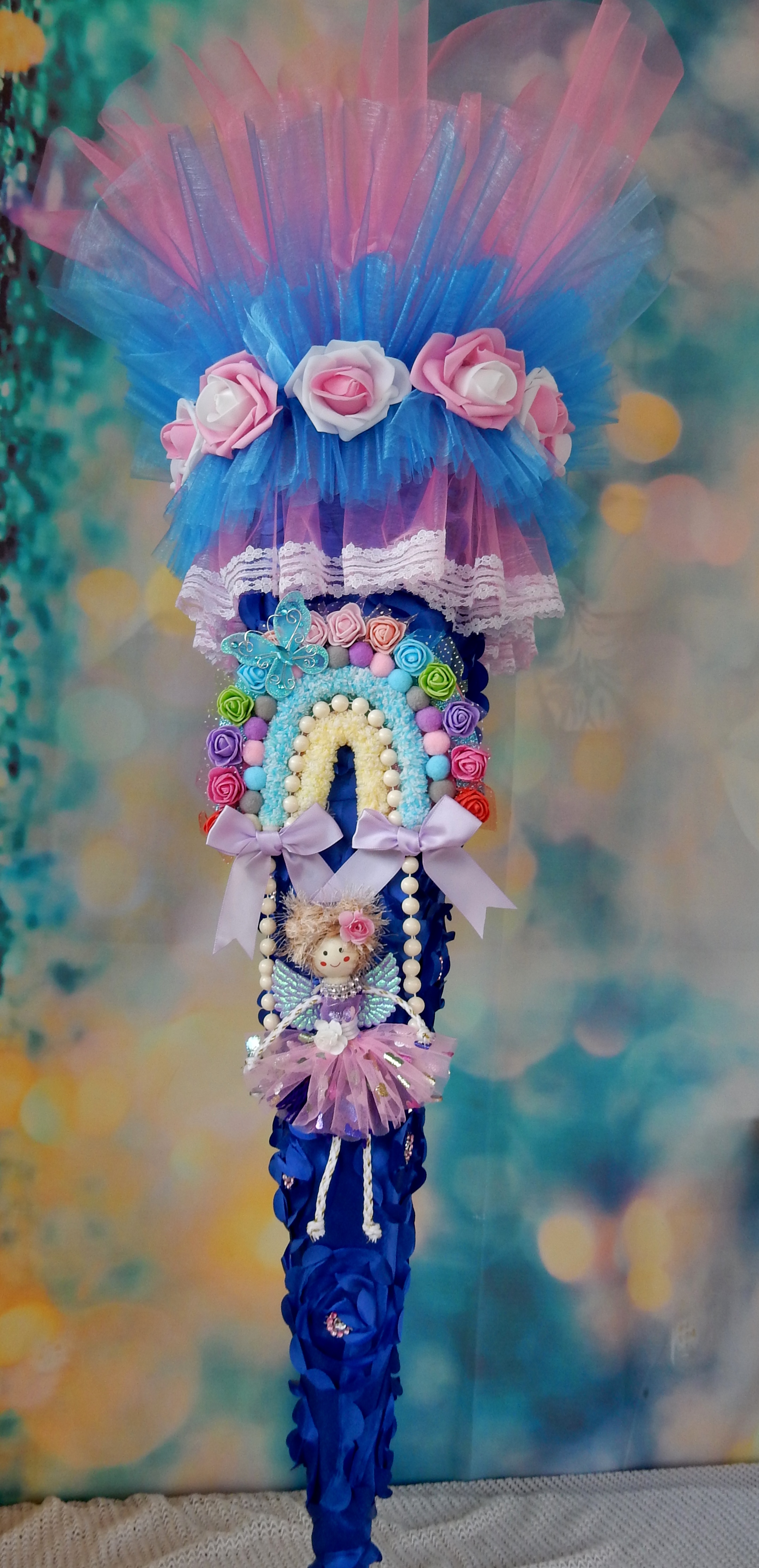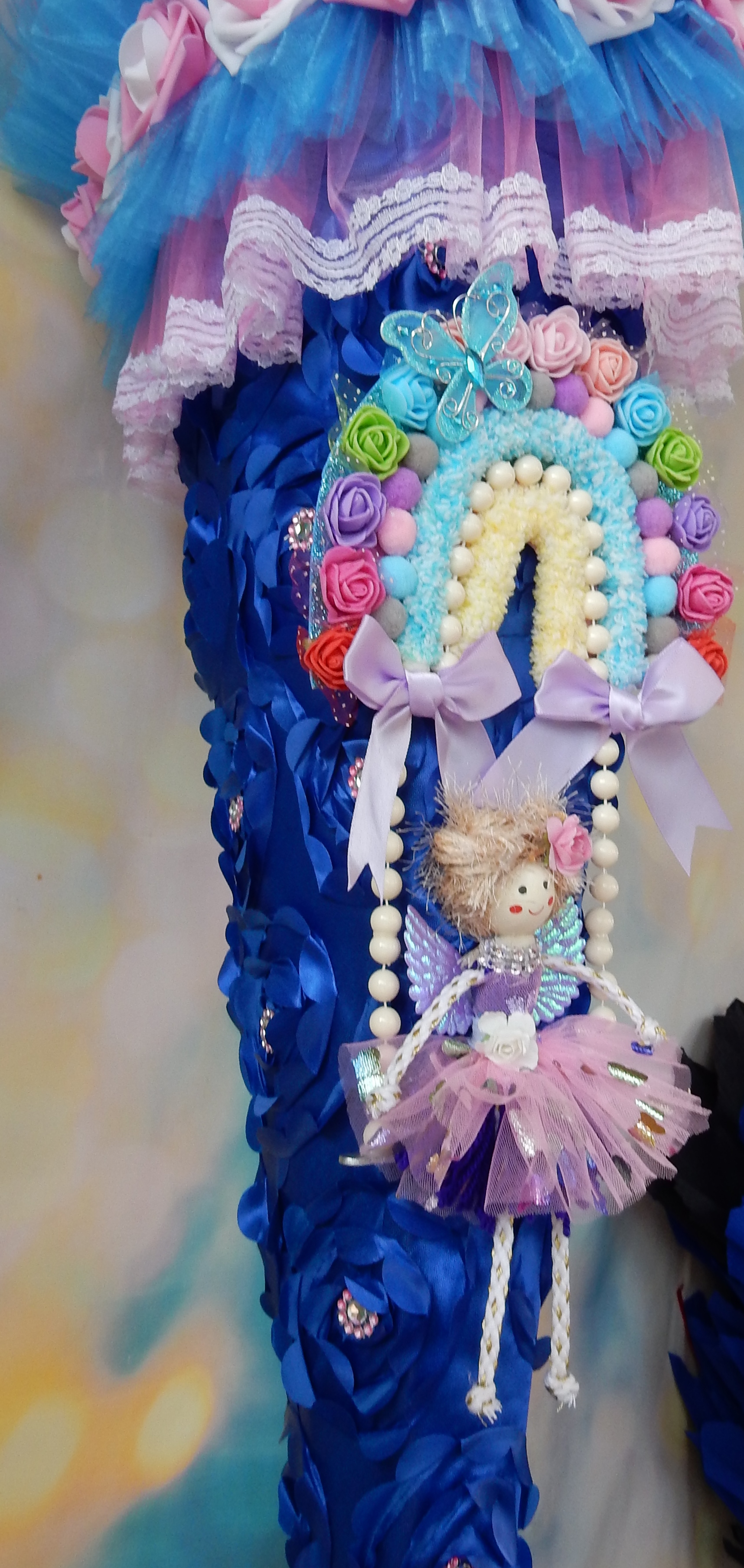 Wunderschöne, handgefertigte Schultüte mit einem Rohling von ca. 80 cm Länge, insgesamt ca. 115 cm lang. Die Schultüte ist mit Satin-Stoff fest auf dem Rohling verklebt, was für eine edle Optik und Stabilität sorgt.