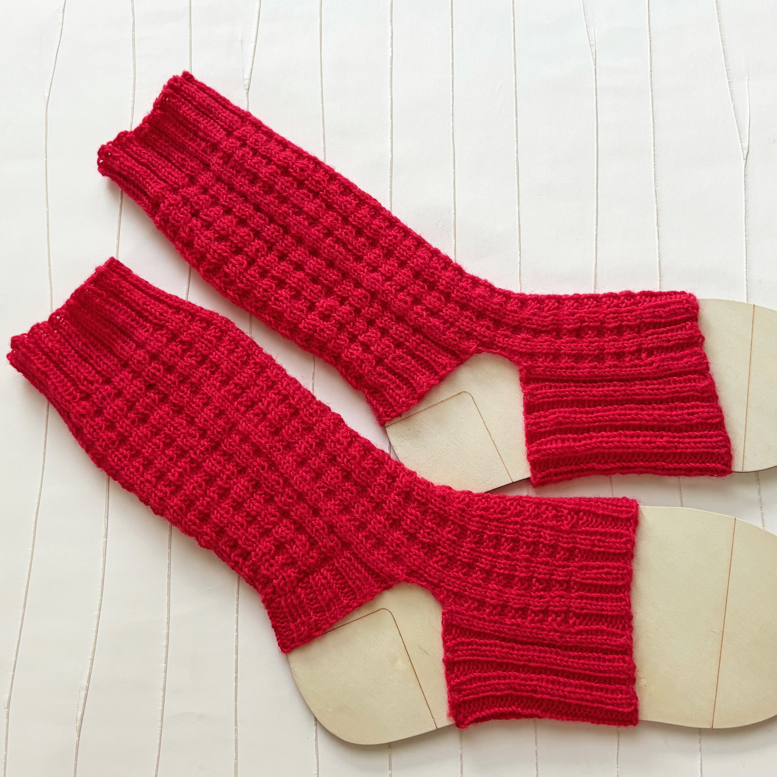 - Yogasocken ohne Ferse und Spitze in Waffelmuster handgestrickt