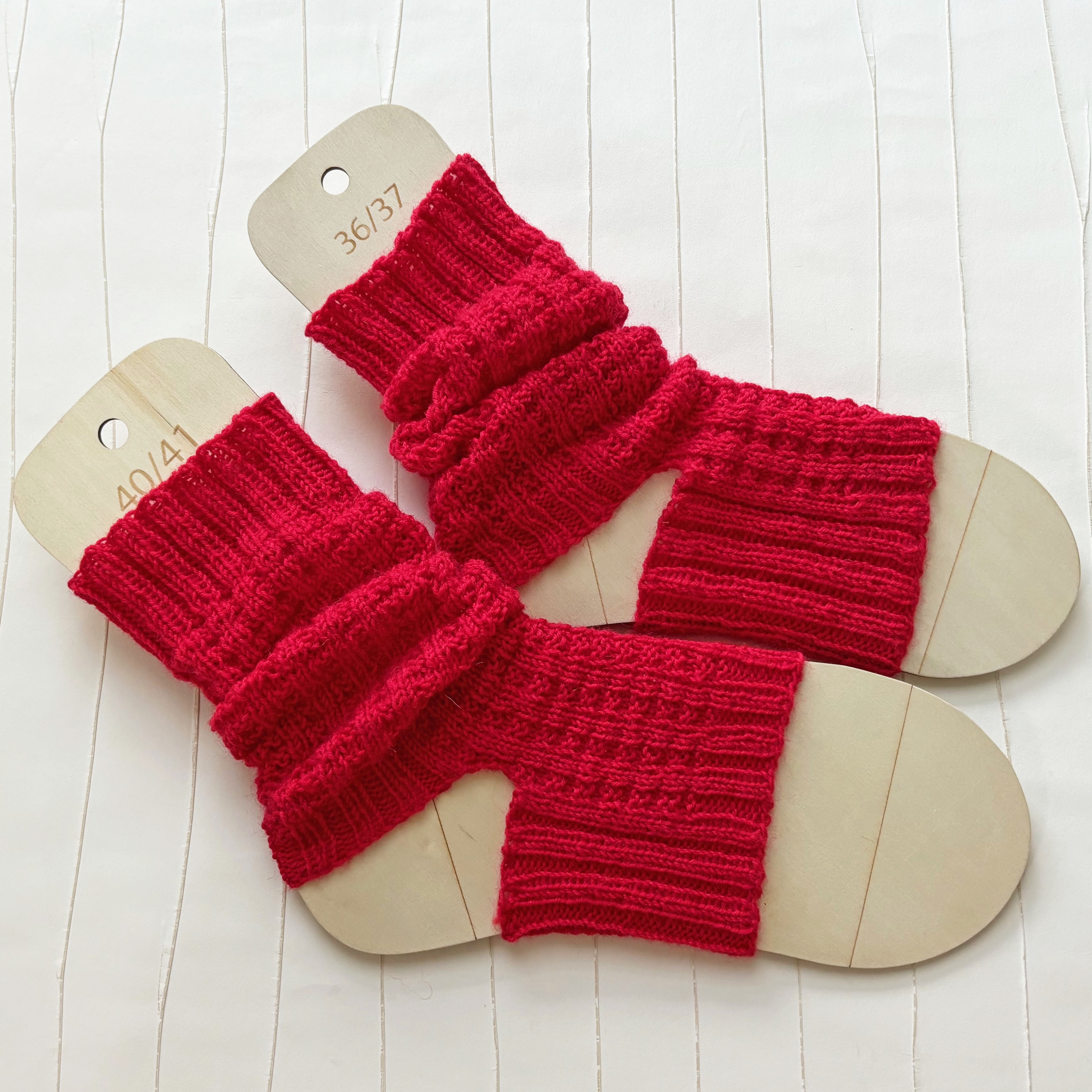 Die Socken sind vorgewaschen und gespannt.