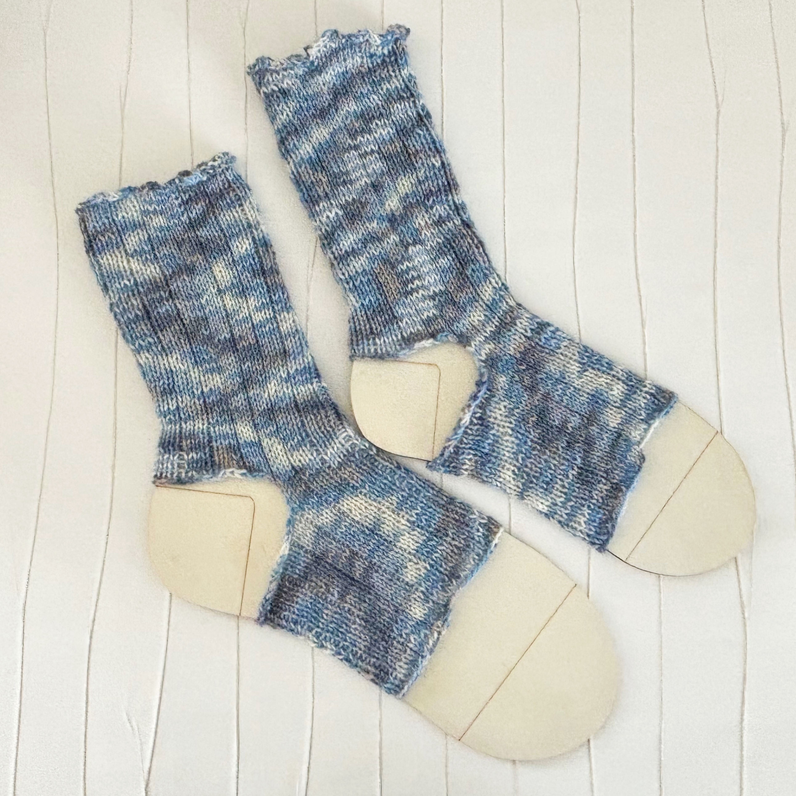 - Yogasocken fersenlose Socken in flachen Rippen mit leicht gerolltem Rand handgestrickt