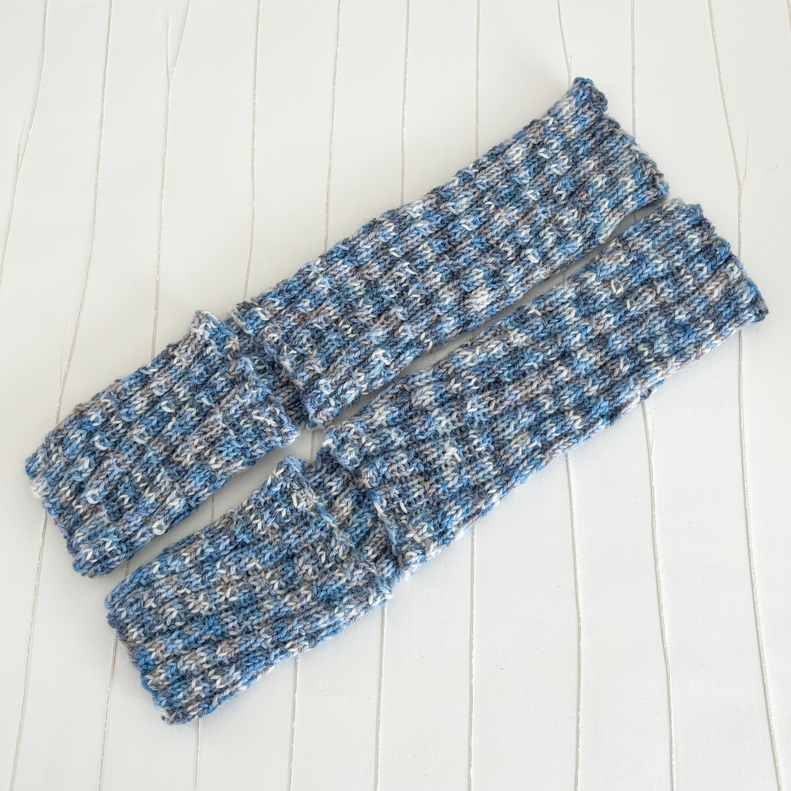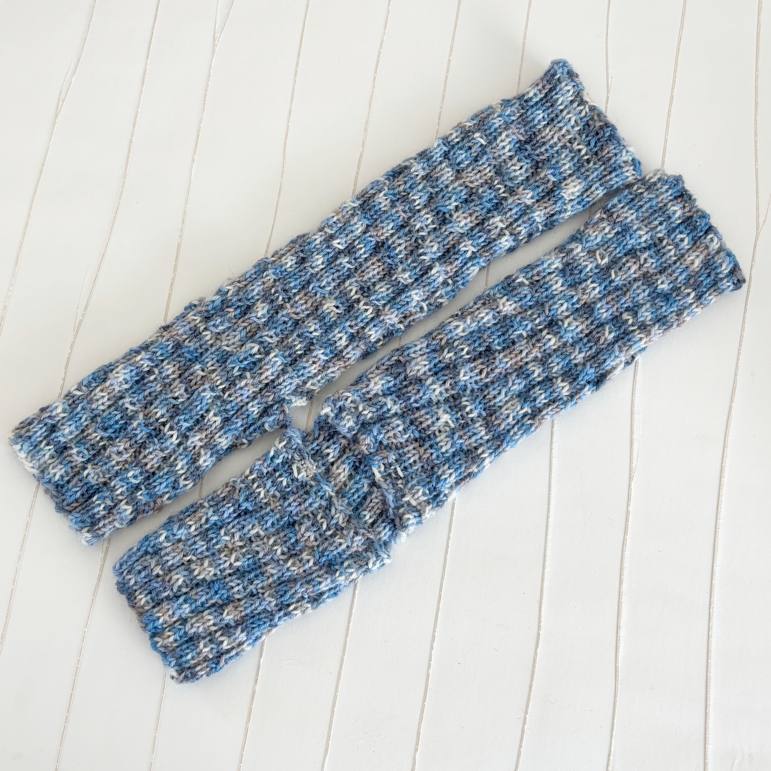 Handstulpen Blau Grau Braun gemustert schmale Form Handarbeit