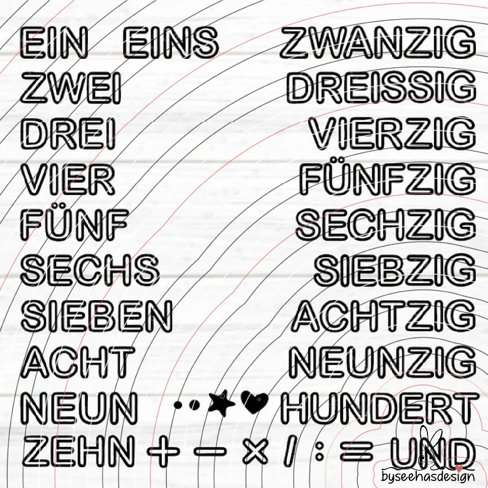 Zahlen Texte 1-100 Plotterdatei SVG DXF