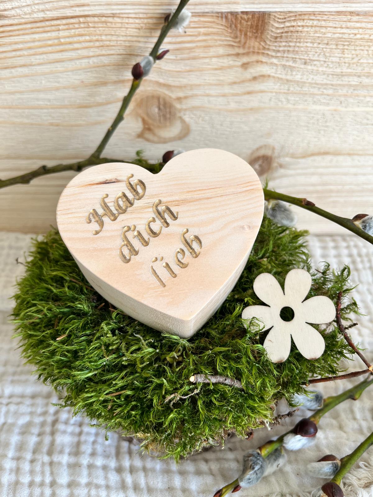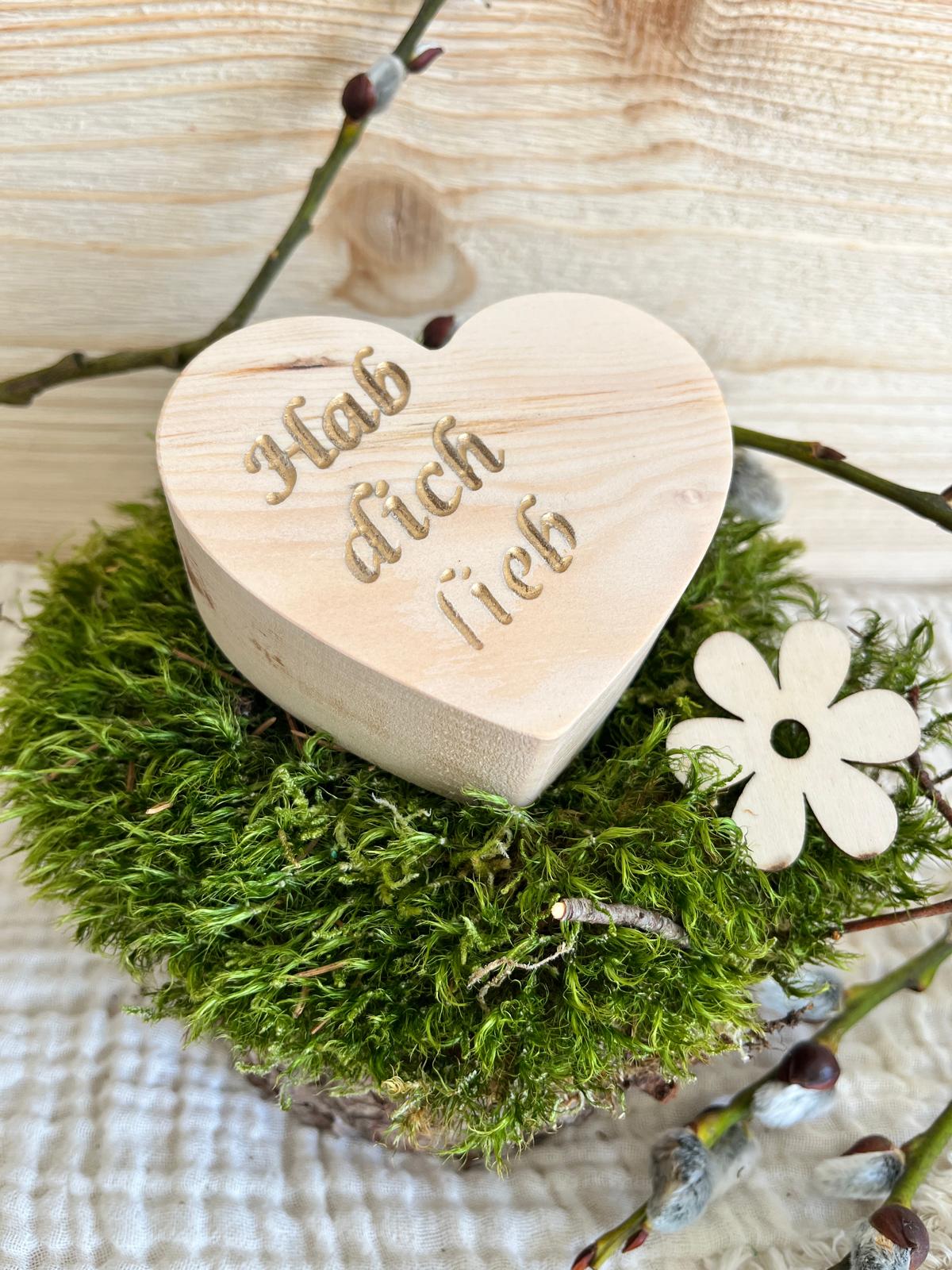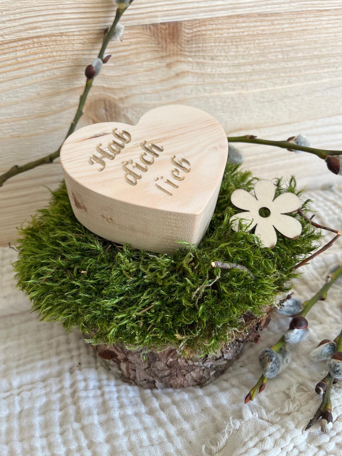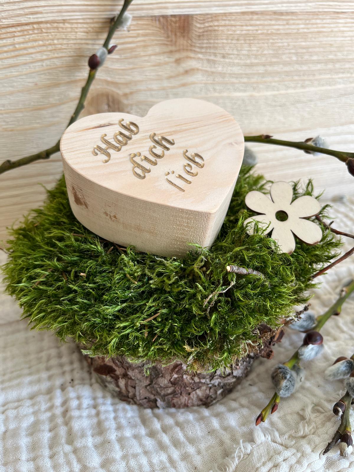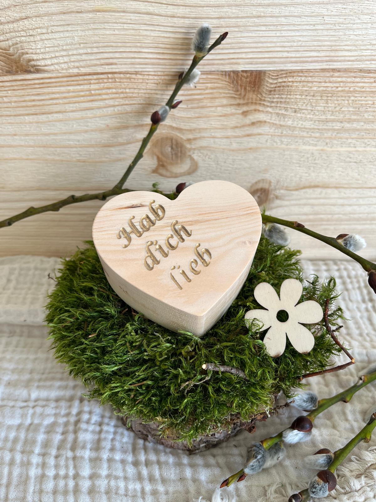 Zirben Holz Herz, Dekoration, wunderschönes Holzherz mit Botschaft "Hab dich lieb", Herz zum Hinstellen aus duftendem Zirben Holz, Tischdekoration zur Hochzeit, für sonstige Feierlichkeiten.